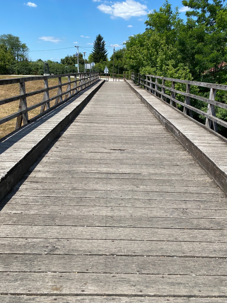 Rutu smo i na kraju malo modificirali, prelaskom Korane i obilaskom desne obale pored sportskog centra, Akvarija, stadiona i prelaskom posljednjeg mosta na ruti, starog i trošnog, drvenog, na vlastitu odgovornost, kako bismo ostavili bicikle, okrjepili se i okupali u Korani, koja je danas po riječima lokalaca bila na 26 stupnjeva Celzijusa.