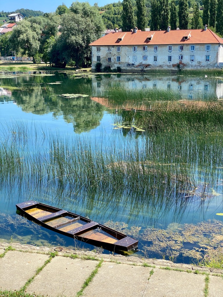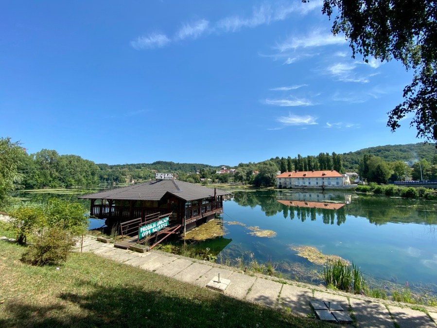 Nakon prelaska avanturističkog drvenog mosta preko Korane, nizvodno od pontonskog mosta za pješake, a ispod opisanog kupališta, prelaskom službeno petog mosta preko treće rijeke, završila je točno 44 kilometra duga ruta, sa malo više od 300 metara uspona, i bilo je vrijeme za pravu okrjepu, u našoj bazi, u restoranu hotela Lana Korana. Sve pohvale kuharicama i svom osoblju, koje su uglavnom žene i znaju što rade. Tatjana je danas odabrala fish&chips, na koranski način, miks pohanih filea riječnih riba i domaći mladi krumpir, a ja sam odabrao malu platu, ručno rađenih (uključujući pecivo) hamburgera. Sve savršeno i za svaku preporuku.