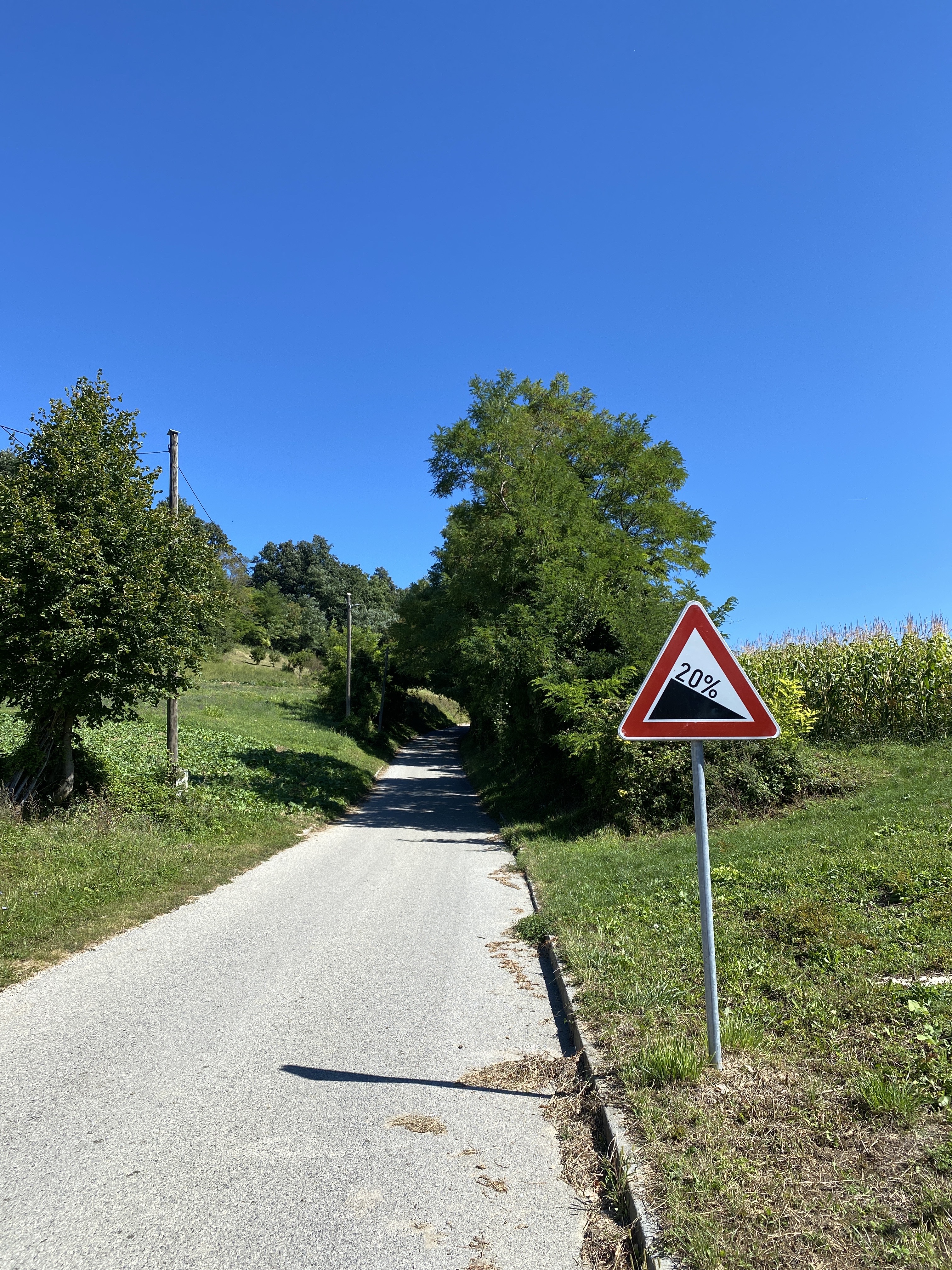 Na 8. kilometru smo napokon dosegli i vrh naše rute, nakon bezbroj uzbrdica, 425 m/nm, nakon jedinstvene table koja je označavala uspon od svega 20%!!