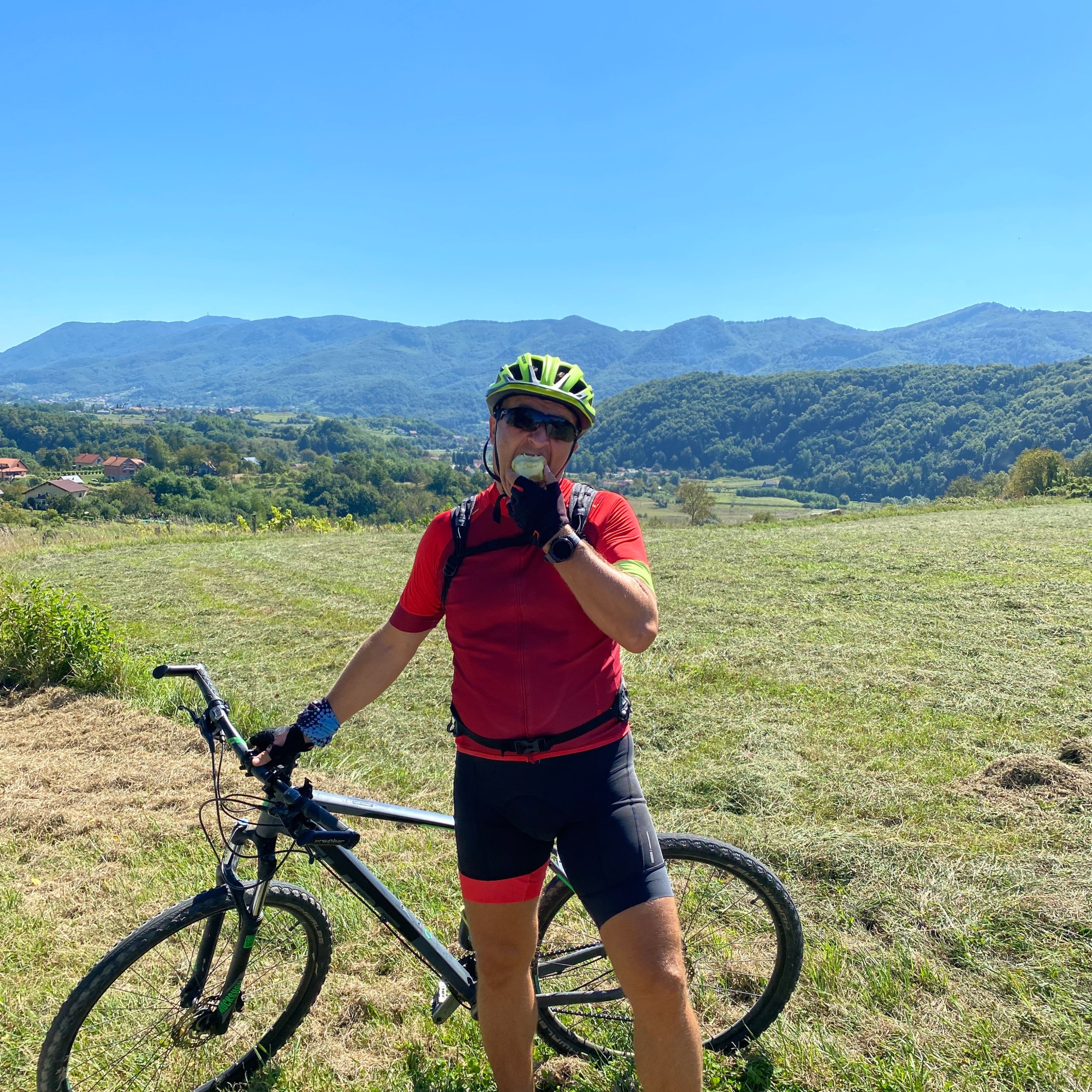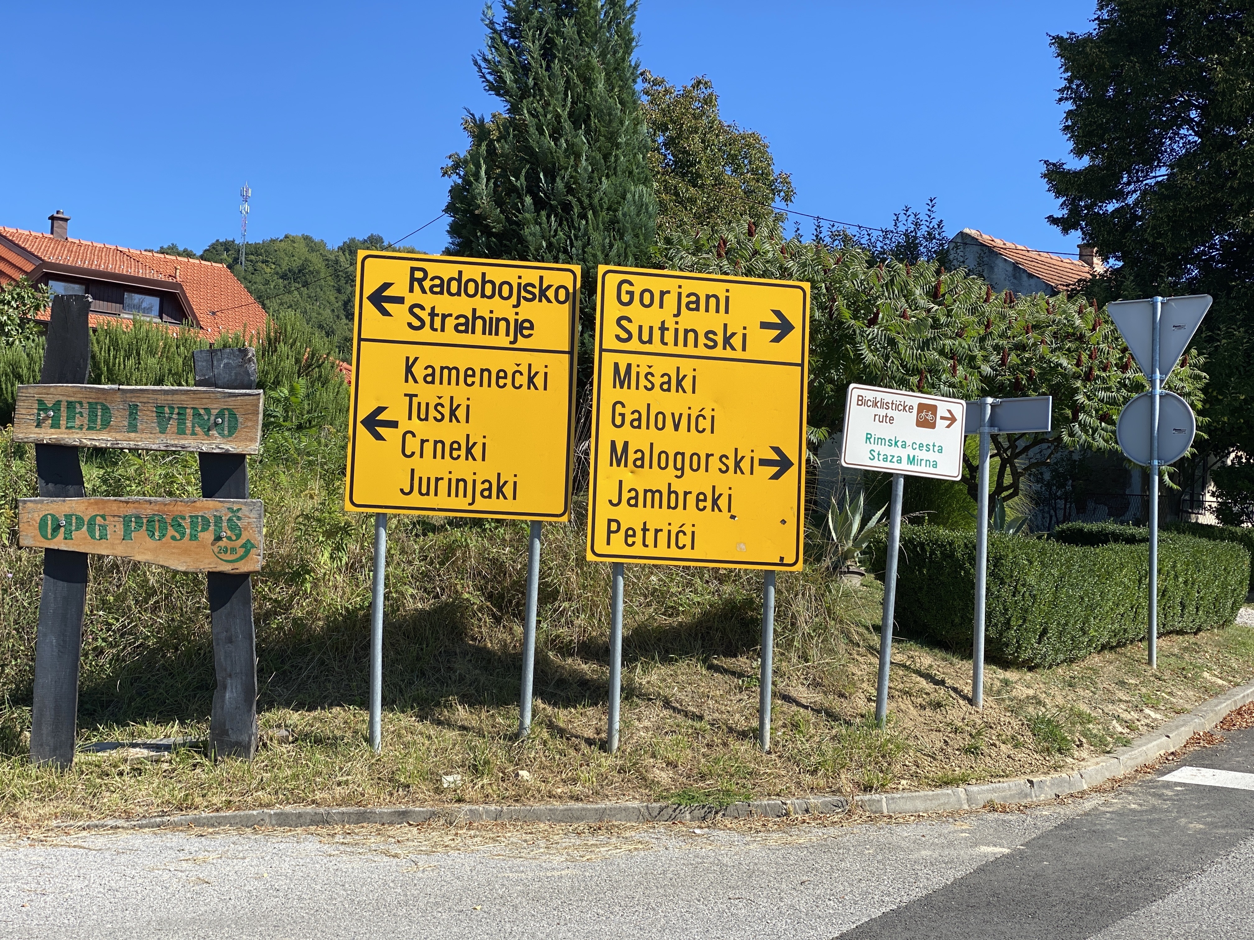 Uslijedio je relativno brži povratak na preostalih 20 kilometara, uspon preko Velikog i Malog Goreneca, sa vrhom u Gornjem Jesenju, gdje je završilo preko 700 metara jučerašnjeg uspona. Tamo smo “maznuli” po krafnu, jer je bilo već oko 14:30 i davno prošlo vrijeme ručka. Uslijedilo je gotovo 10 kilometara zasluženog spusta i pravca ravnicom uz poznati i već spomenuti muzej naših predaka u Krapini do mjesta gdje smo ostavili naš bike carrier, koji nas toliko vjerno služi godinama.