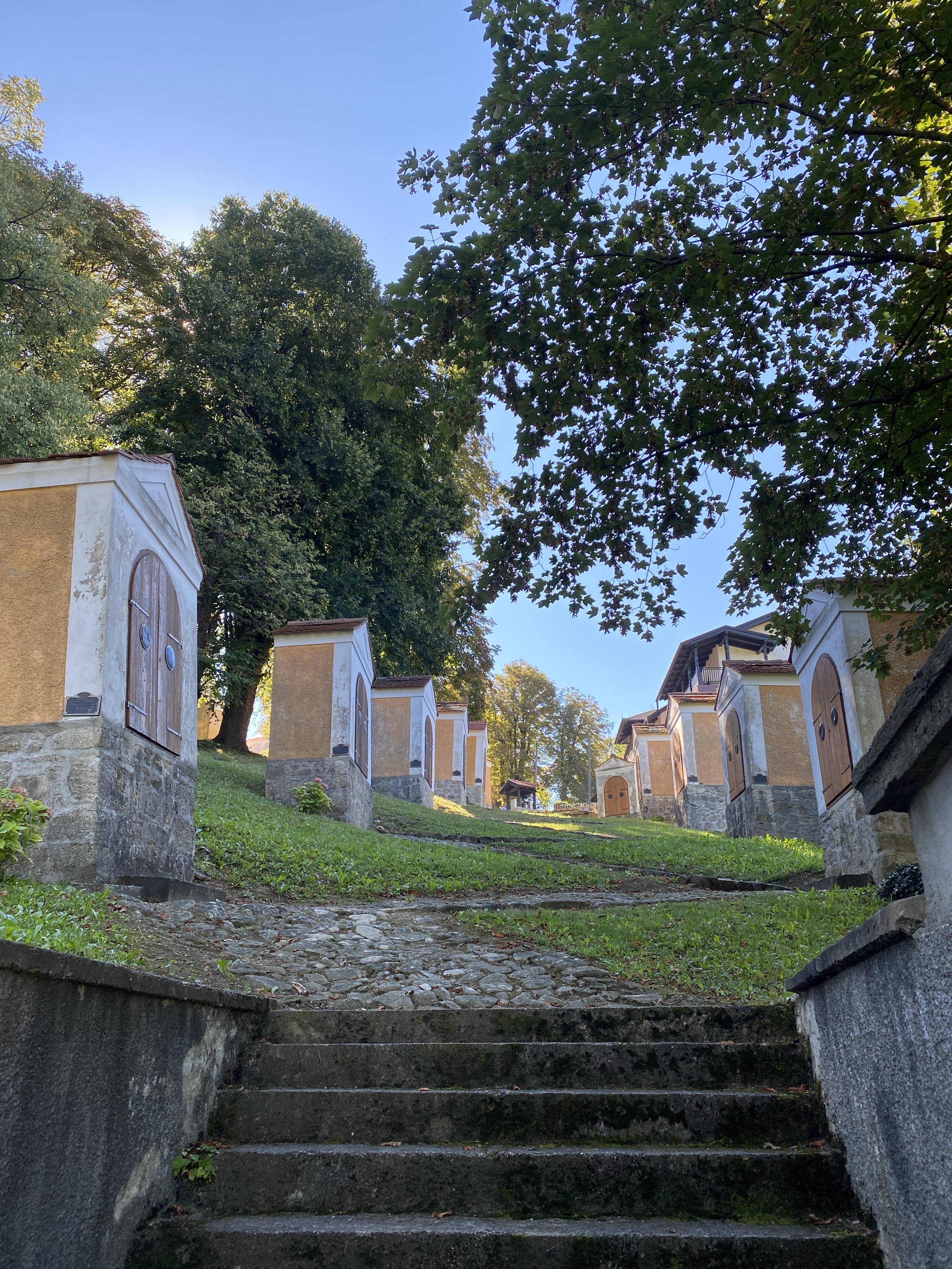 Ovdje je rođen i Ljudevit Gaj, otac hrvatskog narodnog preporoda, a krapinskim su ulicama koračali i August Šenoa, Marija Jurić Zagorka, Janko Leskovar, Ivo Andrić…Iako je zagrljaj prošlosti jak i sveprisutan, Krapina danas nudi ponešto za svakoga. Kao što sam rekao, nakon parkiranja kod jednog polupraznog skladišta namještaja nedaleko centra grada, startali smo jako i uzbrdo! Kroz centralni park, pa pored Gradskog groblja Krapina, sa preko 10% uspona ravno na Trški vrh, gdje smo već na 275 m/nm, a tek smo bili na 2. kilometru. Inače od početka ove rute pratili su nas znakovi za hodočasnike koji ovim putem mogu doći do Marije Bistrice, kao i table za biciklistički rimski put. A na samom vrhu je i prekrasna crkva sa pravim križnim putem sa 14 malih kapelica.