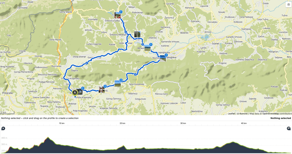 Cilj je bio napraviti neku rutu kojom ćemo sa zagorske strane dohvatiti i varaždinsku županiju, koja nam je u planu obilaska gotovo svih županija lijepe naše u našoj borbi protiv corone i antistresnom programu koji sam zamislio. Tako smo lagano otišli jučer ujutro do Krapine sa ciljem obilaska Strahinjščice sa južne strane u odlasku prema Lepoglavi te povratak preko Bednje, Trakošćana, sa sjeverne strane, iza ove jedinstvene, srednje visoke planine (najviši vrh Sušec, 846 m/nm).