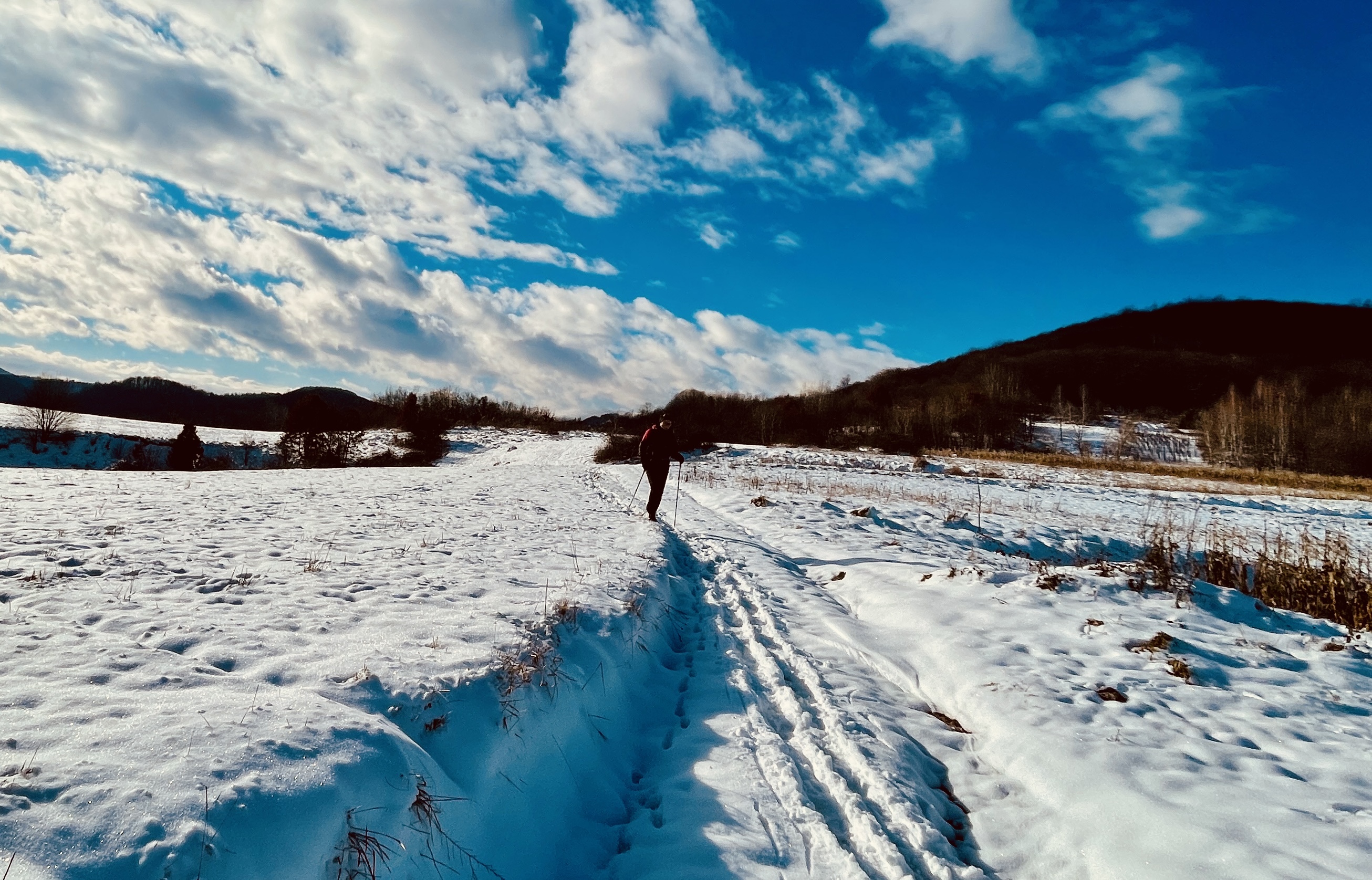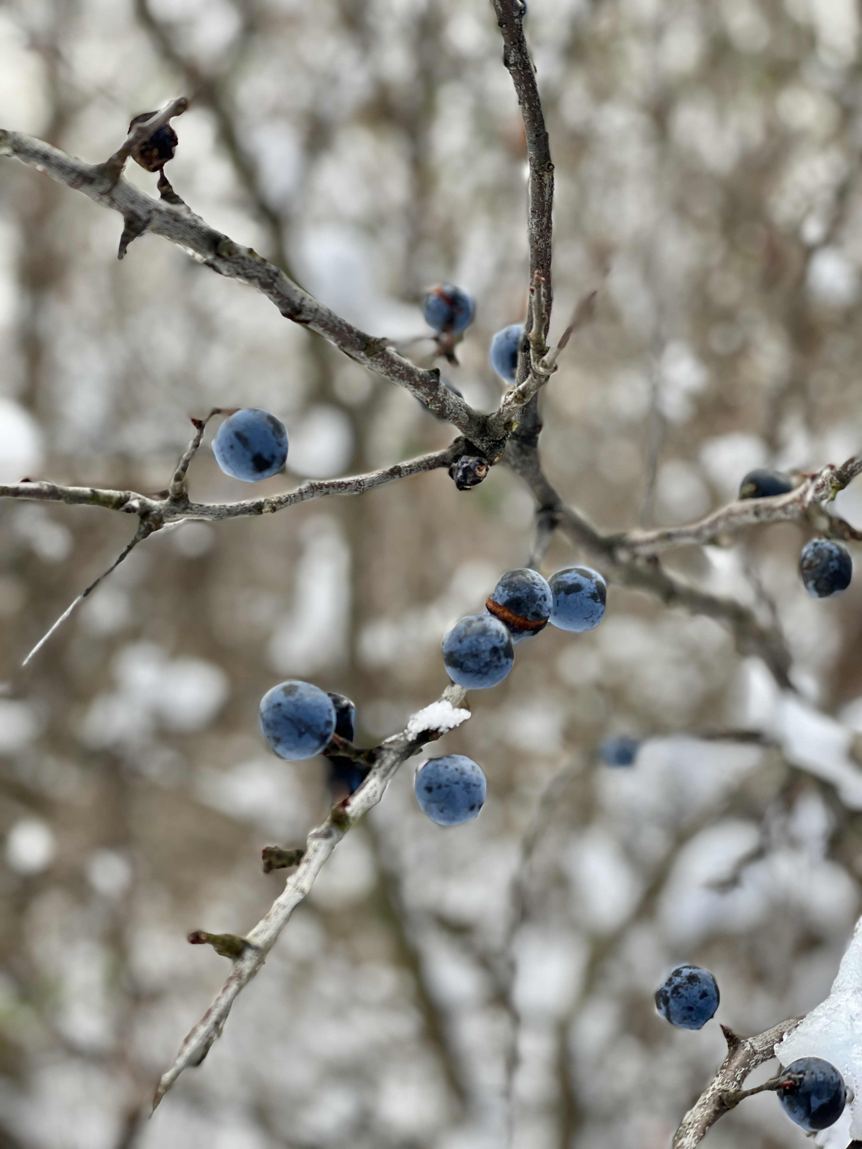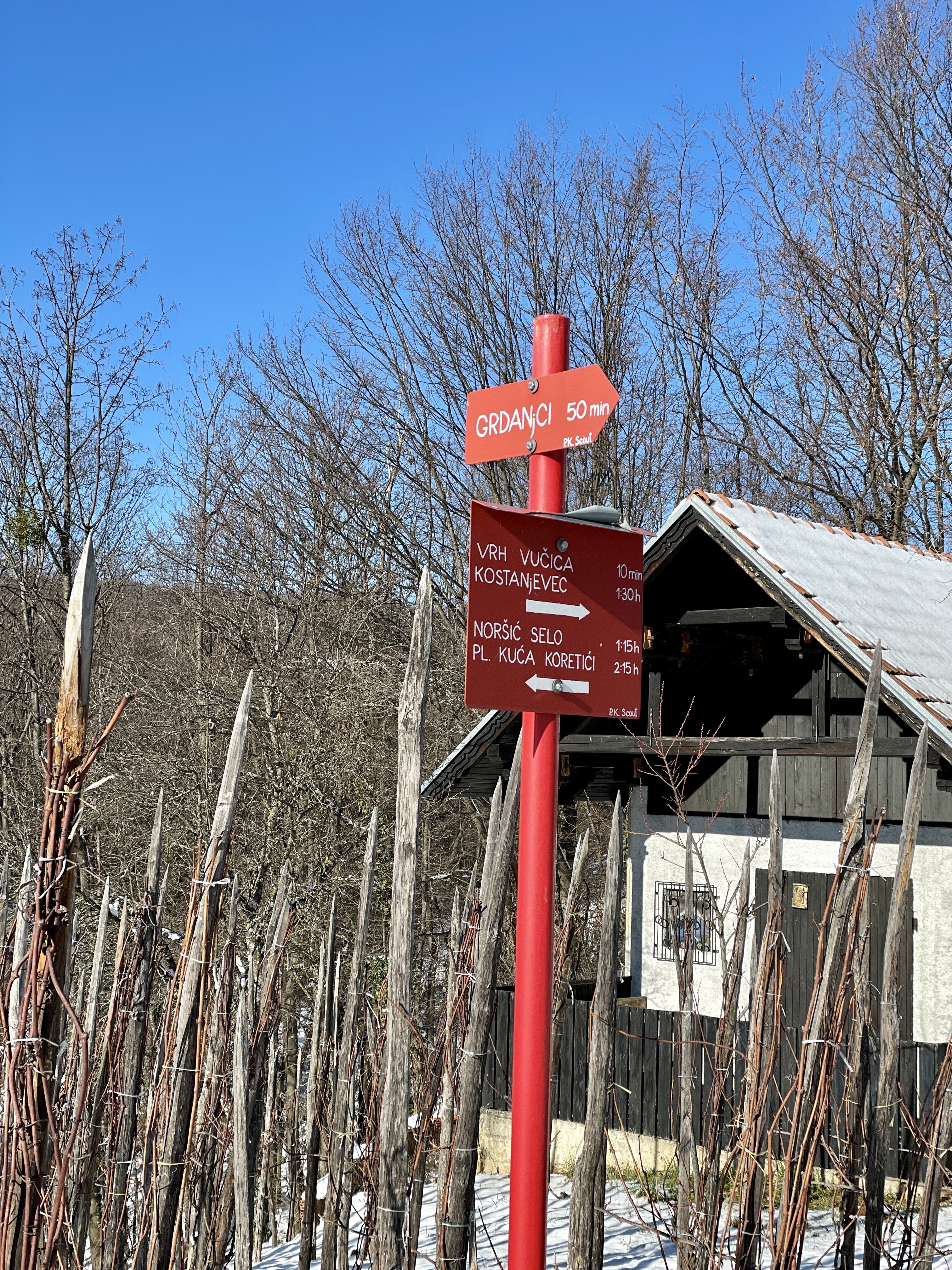 Krenuli smo uzbrdo, cestom koja vodi do sela Beder, koje je planirano iza polovine naše rute u povratku. Nekoliko stotina metara prije ulaska u Beder, skrenuli smo oštro desno u livade, koje su sa svježe napadanim snijegom bile odlična podloga za nove La Sportiva zimske hodalice. Ubrzo smo stigli do raskrižja prema vrhu Vučica, Travnom vrhu, te nešto udaljenijim Kostanjevcu i Stojdragi. Travni vrh je visok 566 m/nm i predstavlja ga metalni stup. Nakon oštrog lijevog zaokreta, uz obilje neobranih kupina i šipaka, naišli smo na visoki grm trnine, pun plodova, koji skupljaju usta kada ih zagrizete, osvježavajuće svakako, uz rakijicu na nekih 0 stupnjeva celzijevaca. Trnina (crni trn, trnula, lat. Prunus spinosa) ponekad nazivana i trnjina, trnula, trnavka, trn, crni trn, divlja šljiva mačja šljiva) je vrsta roda Prunus (Maloideae, Rosaceae). Raste uglavno po pašnjacima ili rubovma šuma ili ponekad kao gusto razgranat grm s trnovitim ograncima. Raste u gotovo cijeloj Europi i dijelovima sjeverne Afrike. Stablo ima vijek do oko 40 godina. Visine je izmedu jednog do pet metara, a u rijetkim slučajevima, i do 6 m visine. Plodovi trnine počinju dozrijevati u kolovozu i tada postaju plavkasto crno okrugla koštunica promjera izmedu 1 do 1,5 centimetara. Divlje šljive su vrlo kisele i gorke – sve dok ih ne “opari” prvi mraz. Nakon mraza postaju ukusnije. U prosincu su najukusnije. Trn se smatra pretkom šljiva. Pripisuju joj se brojna ljekovita svojstva.
