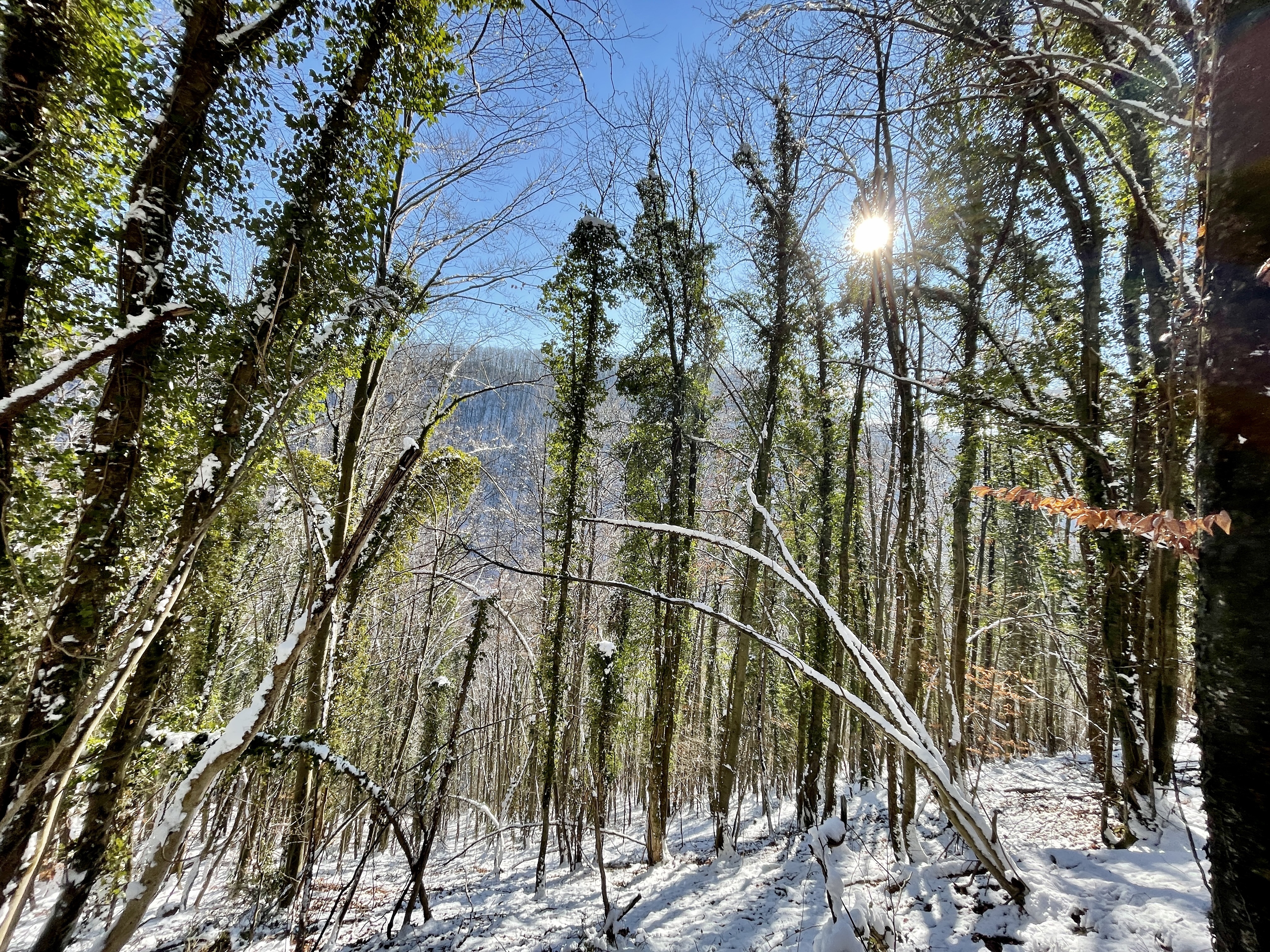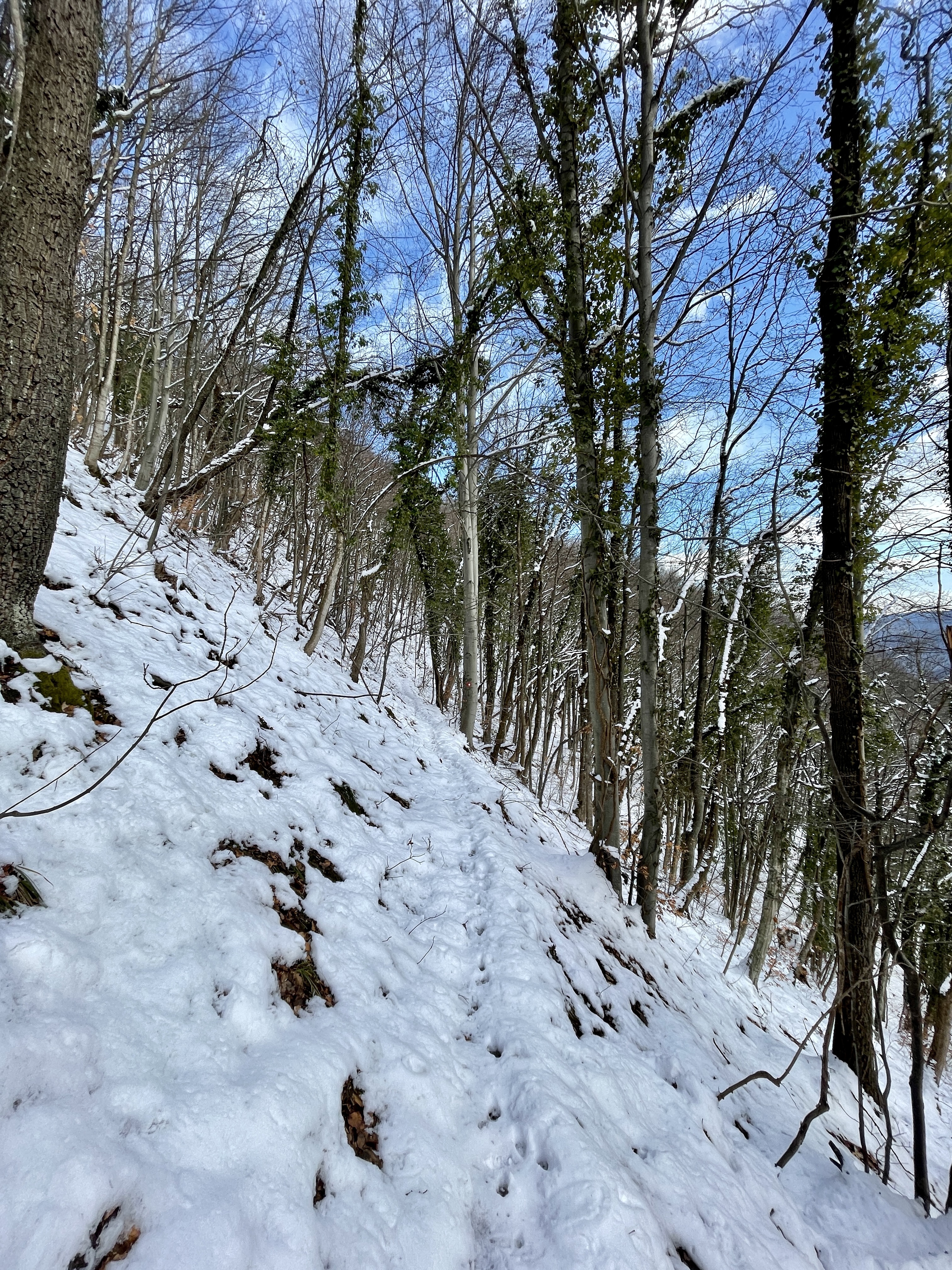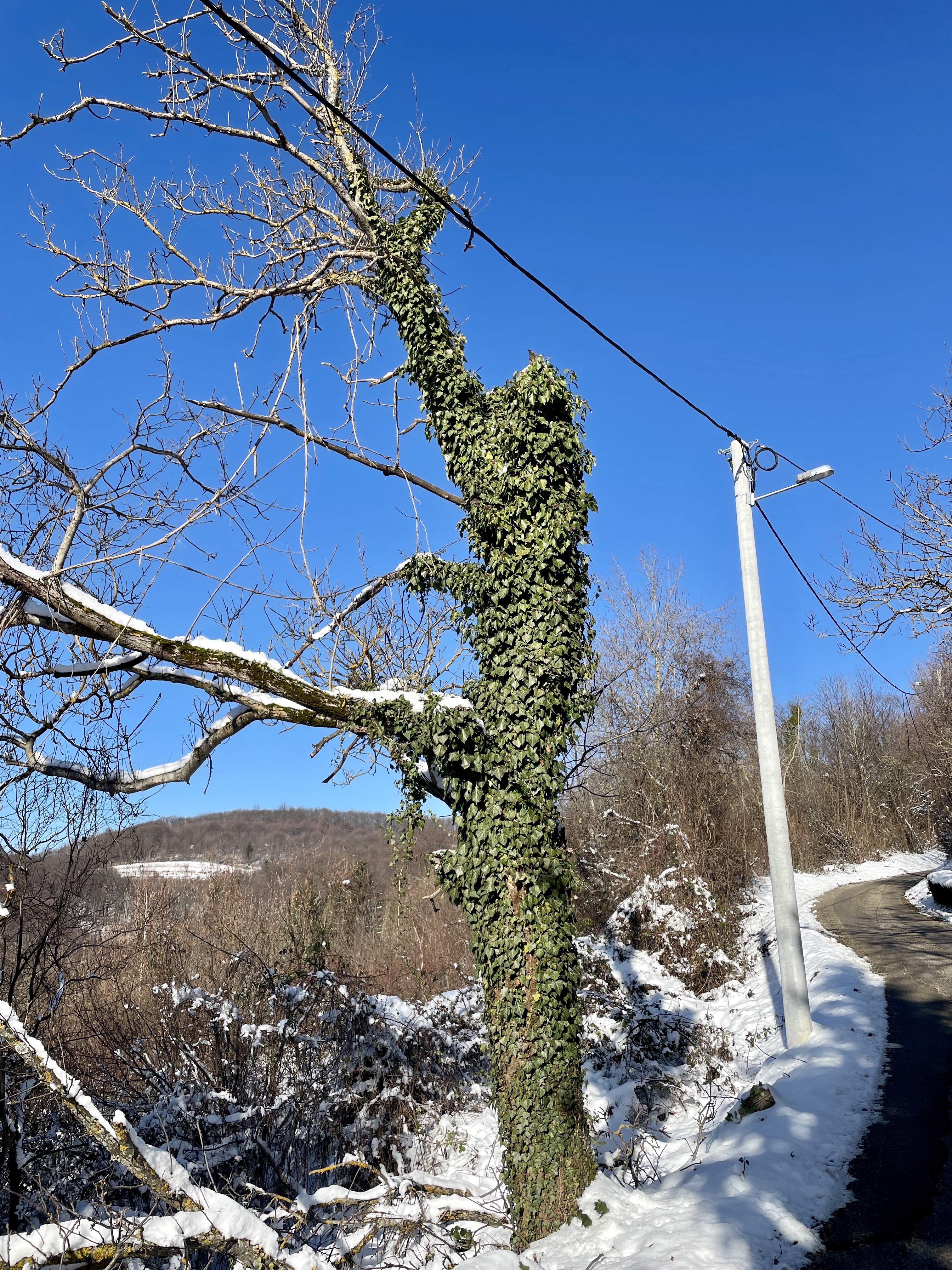 Krenuli smo uzbrdo, cestom koja vodi do sela Beder, koje je planirano iza polovine naše rute u povratku. Nekoliko stotina metara prije ulaska u Beder, skrenuli smo oštro desno u livade, koje su sa svježe napadanim snijegom bile odlična podloga za nove La Sportiva zimske hodalice. Ubrzo smo stigli do raskrižja prema vrhu Vučica, Travnom vrhu, te nešto udaljenijim Kostanjevcu i Stojdragi. Travni vrh je visok 566 m/nm i predstavlja ga metalni stup. Nakon oštrog lijevog zaokreta, uz obilje neobranih kupina i šipaka, naišli smo na visoki grm trnine, pun plodova, koji skupljaju usta kada ih zagrizete, osvježavajuće svakako, uz rakijicu na nekih 0 stupnjeva celzijevaca. Trnina (crni trn, trnula, lat. Prunus spinosa) ponekad nazivana i trnjina, trnula, trnavka, trn, crni trn, divlja šljiva mačja šljiva) je vrsta roda Prunus (Maloideae, Rosaceae). Raste uglavno po pašnjacima ili rubovma šuma ili ponekad kao gusto razgranat grm s trnovitim ograncima. Raste u gotovo cijeloj Europi i dijelovima sjeverne Afrike. Stablo ima vijek do oko 40 godina. Visine je izmedu jednog do pet metara, a u rijetkim slučajevima, i do 6 m visine. Plodovi trnine počinju dozrijevati u kolovozu i tada postaju plavkasto crno okrugla koštunica promjera izmedu 1 do 1,5 centimetara. Divlje šljive su vrlo kisele i gorke – sve dok ih ne “opari” prvi mraz. Nakon mraza postaju ukusnije. U prosincu su najukusnije. Trn se smatra pretkom šljiva. Pripisuju joj se brojna ljekovita svojstva.