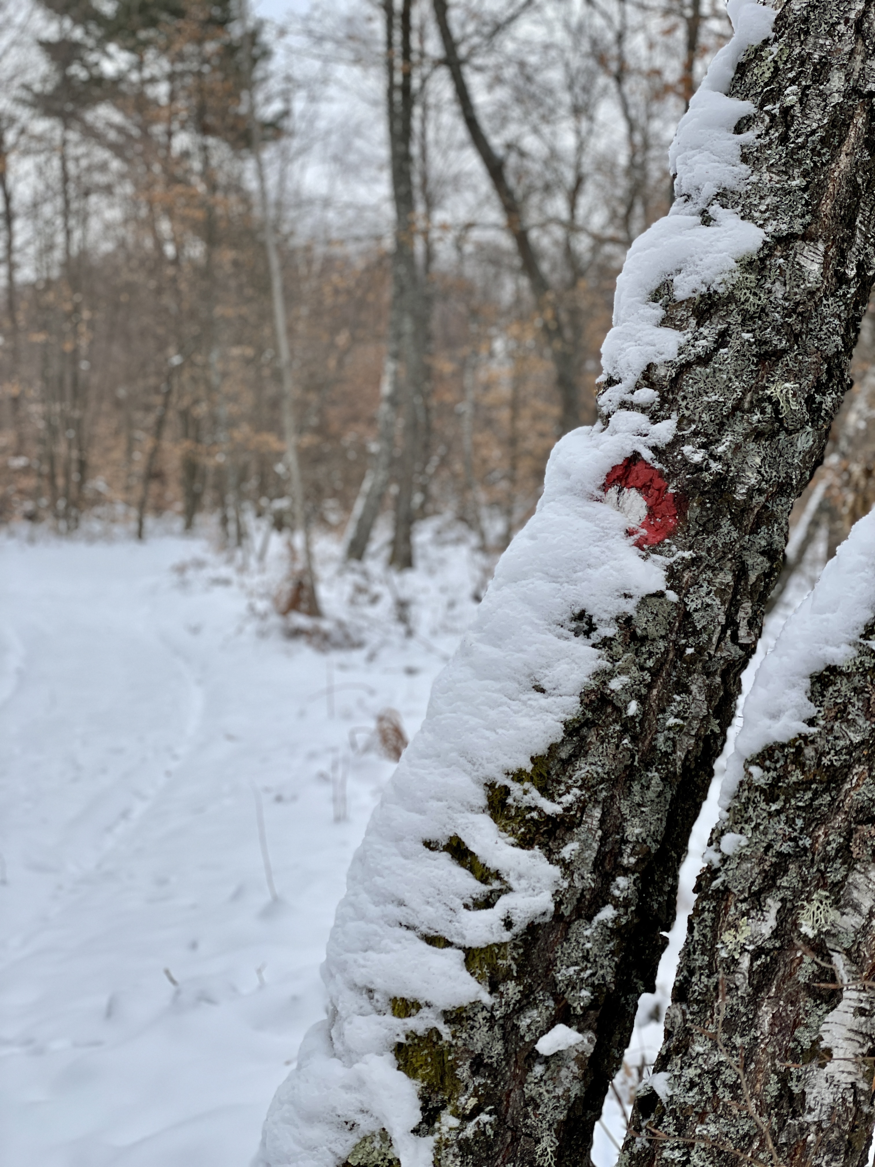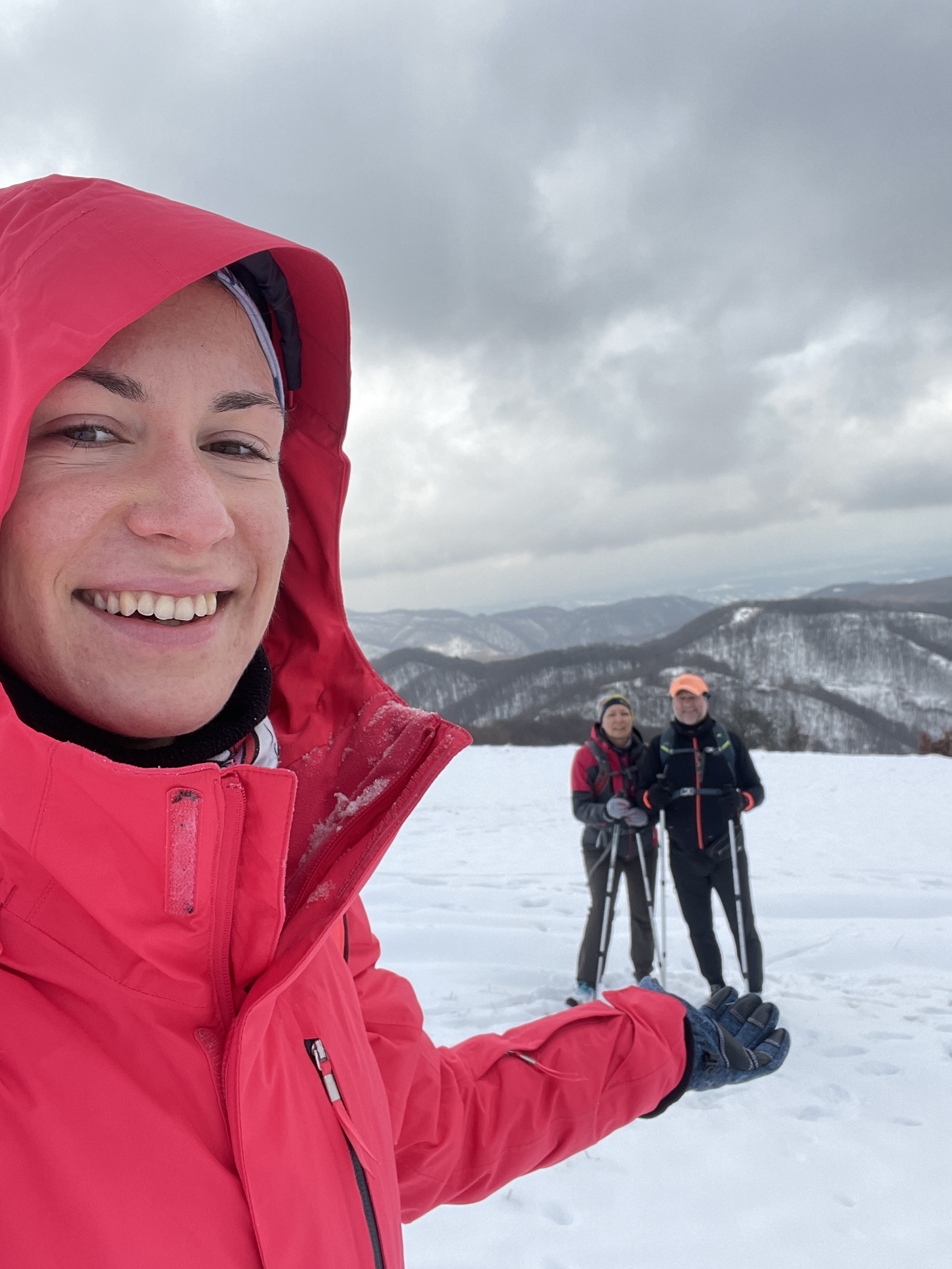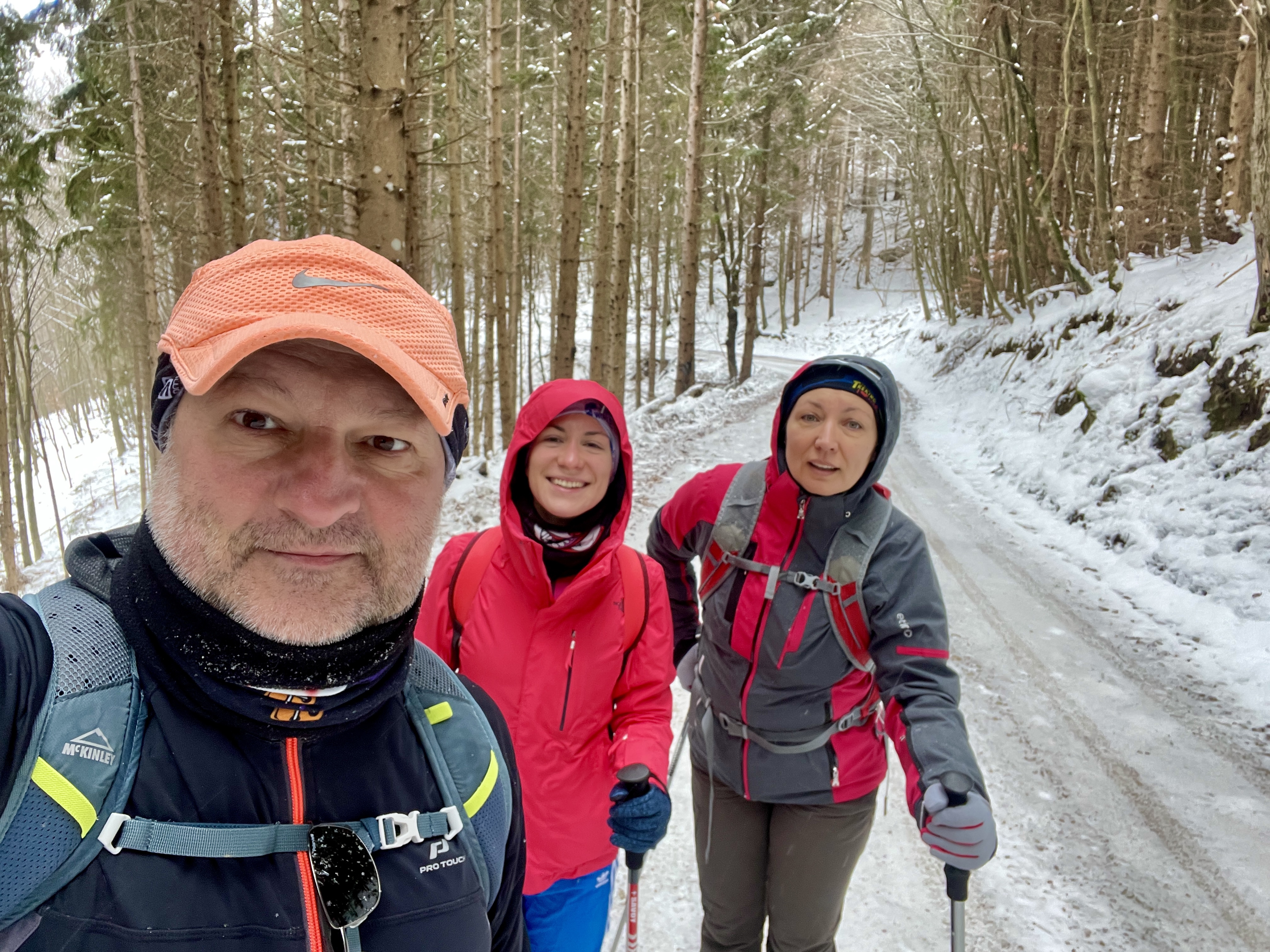Iz Pećna nas je ruta vodila uzbrdo, dok nismo sa ceste skrenuli udesno Jaskanskim planinarskim putem, put Zečaka, do kojeg je od te table bilo točno sat uspona. Danas je tamo bilo desetak centimetara sipkog, suhog snijega, koji nije pomagao u usponu. U nešto više od dva kilometra, trebalo je savladati nekih 300 metara uspona. Prije samog “vrha”, koji to baš i nije, jer je na rubu jedne oranice, pružaju se prekrasni vidici na Samoborsko gorje i šampiona Japetića, koji je danas bio u oblaku. Protrčali smo kroz ciljnu ravninu uspona za danas, tih 795 metara koliko je Zečak nad morem i odmah krenuli dalje, sjevernom padinom, prema selu Pavkovići. Zečak je osamljen travnat vrh u istočnom dijelu žumberka i ujedno jedan od najljepših žumberačkih vidikovaca. Vrh je prostrana zaravan s koje se pružaju vidici na sve strane. Hrbat Zečaka, koji se nastavlja na jug prema Slavetiću, predstavlja razvodnicu između Save i Kupe.