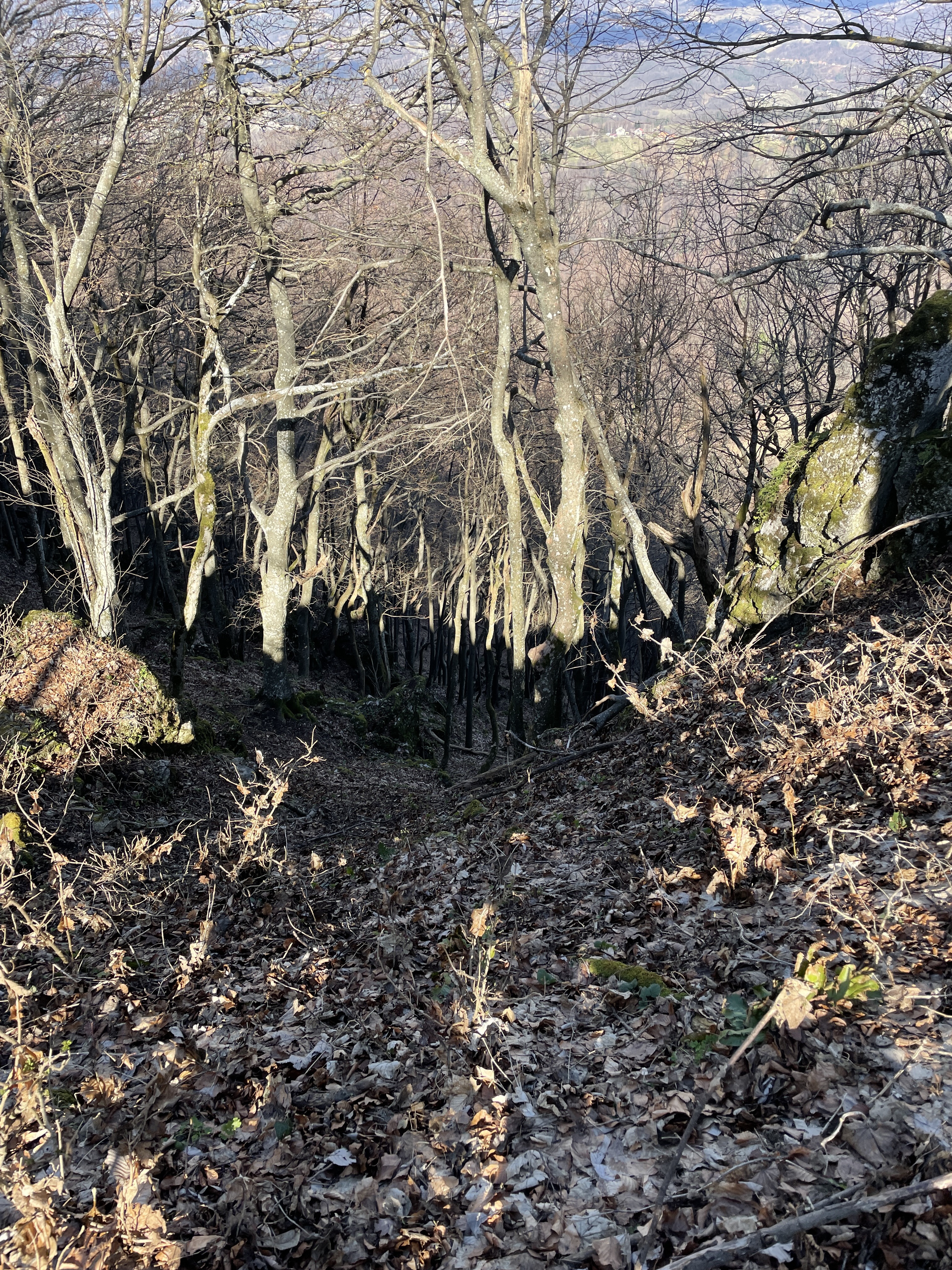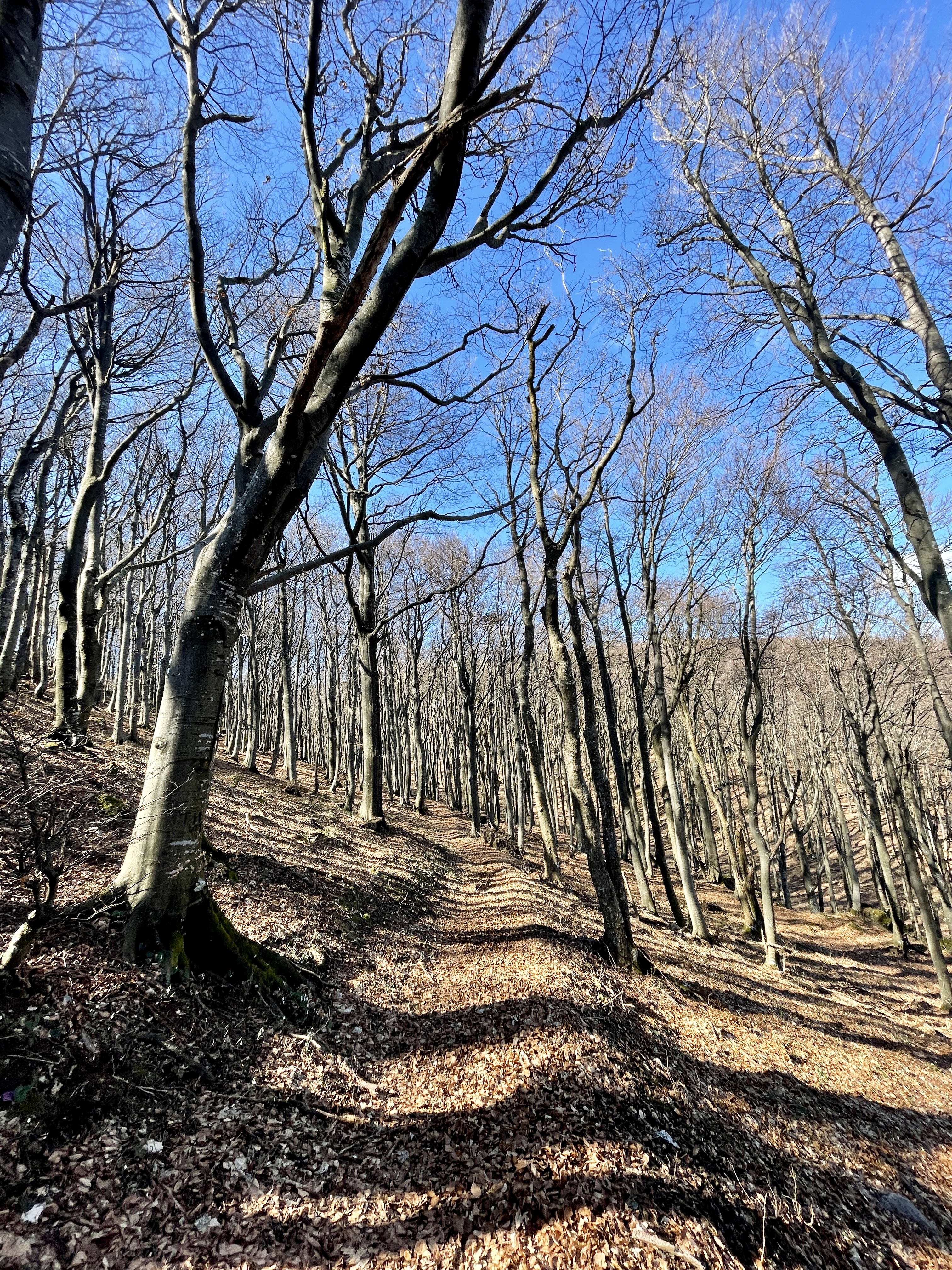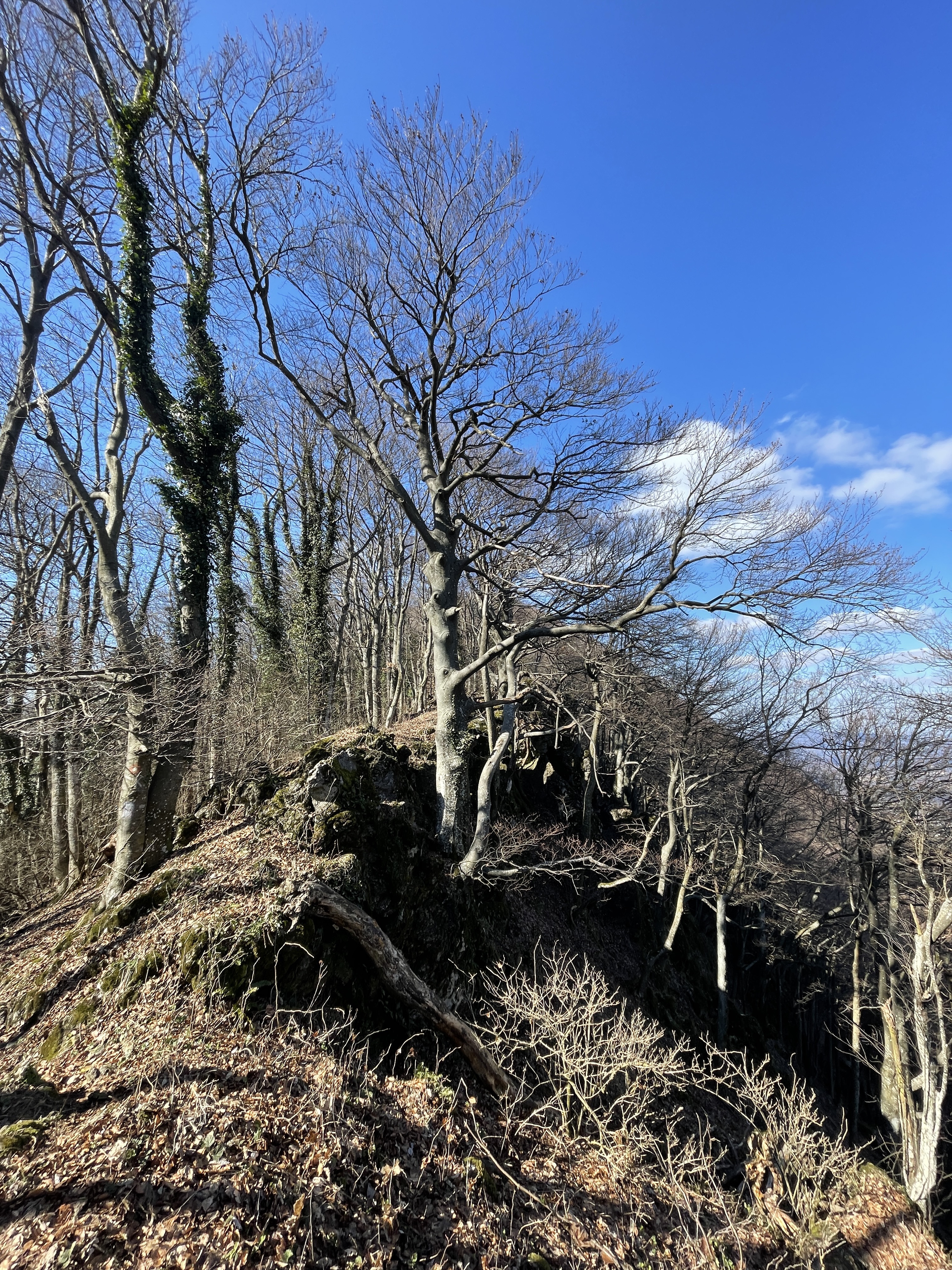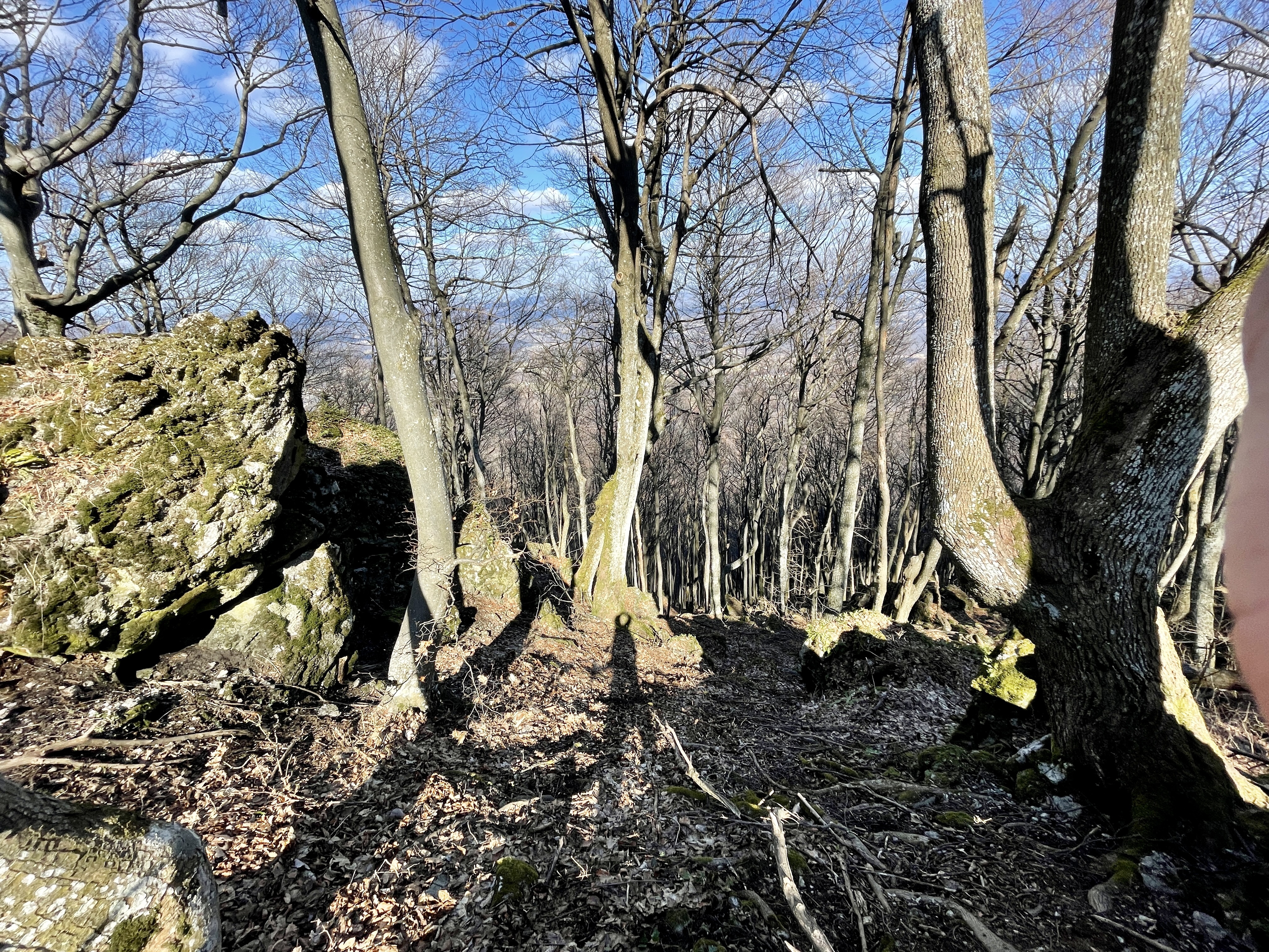 I dok smo za sobom ostavljali Sekolje, najstrmijim dijelom rute smo prelazili preko prekrasnih grebena, koji su nas malo podsjetili na greben Bjelolasice, koji nam je još u friškom sjećanju od studenog prošle godine. Prelaskom još jednog neimenovanog vrha i laganim spuštanjem u dolinu slomljenih stabala nekom višom silom od sjekire, malim trekerskim off roadom prišli smo bukvama koje označavaju sam vrh Sušec, vrh Strahinjčice, 846 m/nm, gotovo na samoj sredini planine, nedaleko popularnog okupljališta planinara pod imenom Dedek i samog PD Strahinjčica, koji nažalost nije bio otvoren niti za prodaju pića, kao što su otvoreni domovi u našem gorju.
