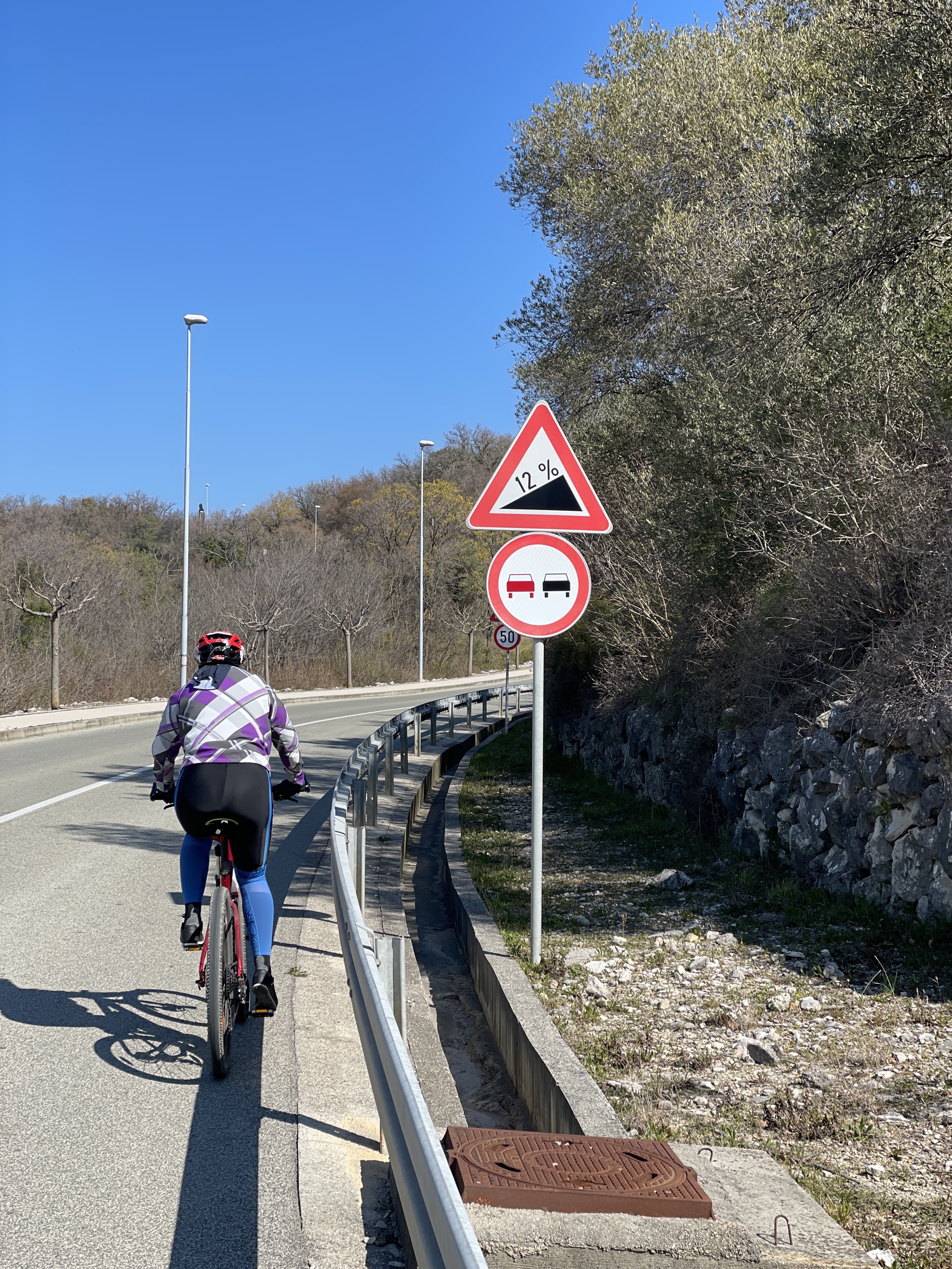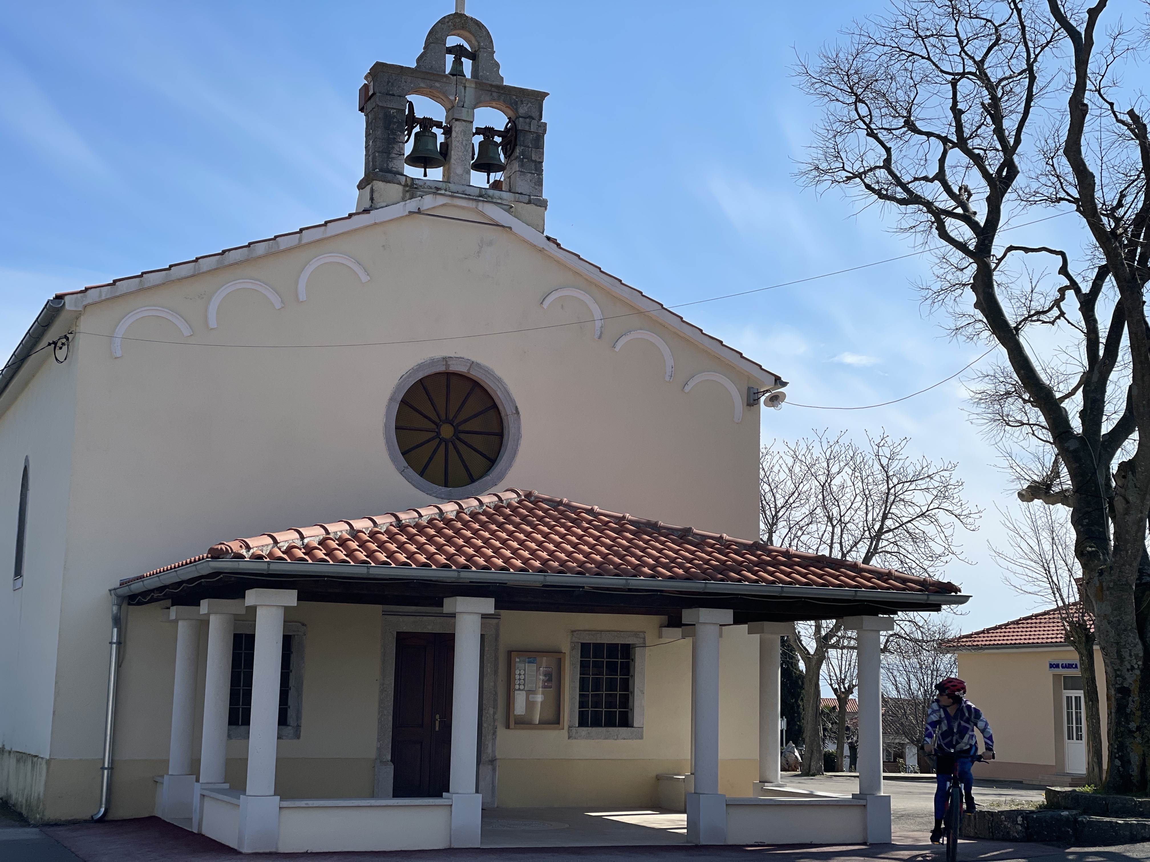 Upravo grad koji smo posjetili i u prošla dva dolaska na otok Krk, odabrao sam za polazište i ishodište posljednje biciklističke ture za ovaj tjedan na otoku, jučer, u petak. Lokalnom cestom smo krenuli prema Svetom Vidu Dobrinjskom, malom mjestu na cesti prema Vrbniku, koju sam spomenuo i sa hodanja prethodnog dana. Smjenjivala su se lagana brdašca, pa spustevi, da bi uslijedio lijep spust, u prvom dijelu rute, od 8 kilometara, kroz Gostinjac, sve do raskršća u nizini punoj vinograda, koji već pripadaju općini Vrbnik, gdje je i Risika.