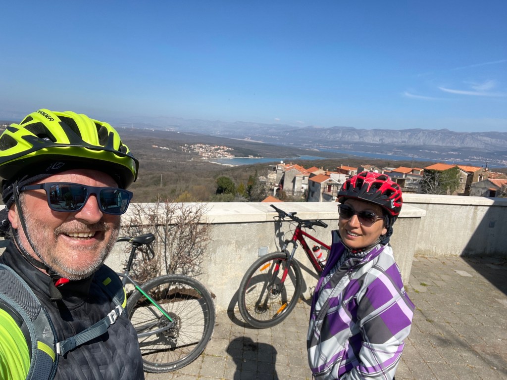 Nakon poziranja iza župne crkve Svetog Stjepana, drugom dužom gradskom ulicom, prošli smo između pustih kuća i dvorišta do našeg vozila i vratili se na okrjepu u Krk, u našu Olivu, dakako. Krug od 17,80 kilometara sa 285 metara visinske.