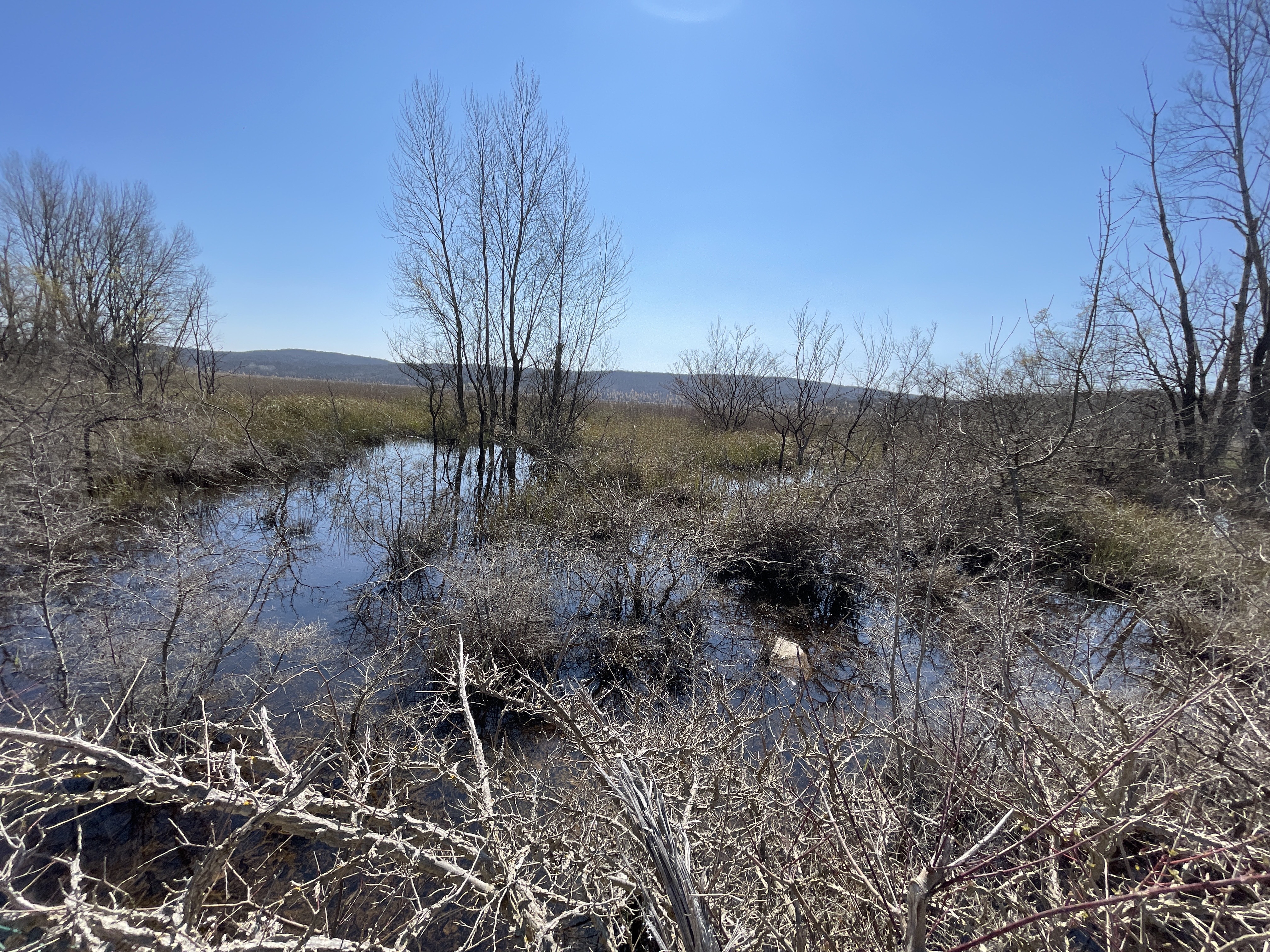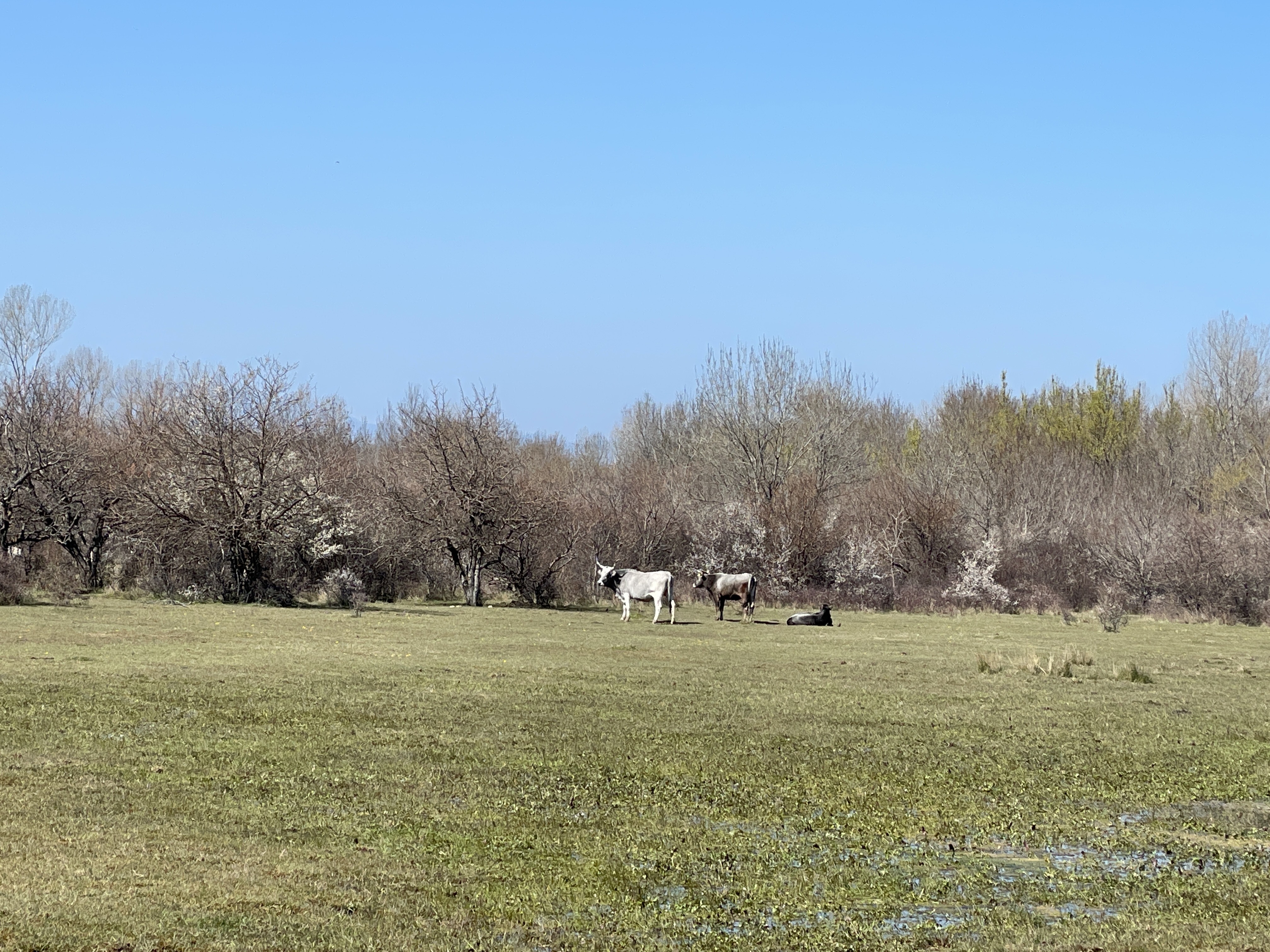 Sljedeća tri kilometra smo mirno i bez prometa klizili nizbrdo, starim, ispucalim asfaltom, između šikara i suhozida sa obje strane, sve do odvajanja prema makadamu dužine 3,5 kilometara kroz, s jedne strane pašnjake, a sa druge strane močvare, sve kontrolirano i odvojeno sustavom ustava i navodnjavanja, ali iz nekog drugog vremena, jer očito više nije u funkciji, no pašnjaci jesu. Gen boškarina čuva se i na Krku!