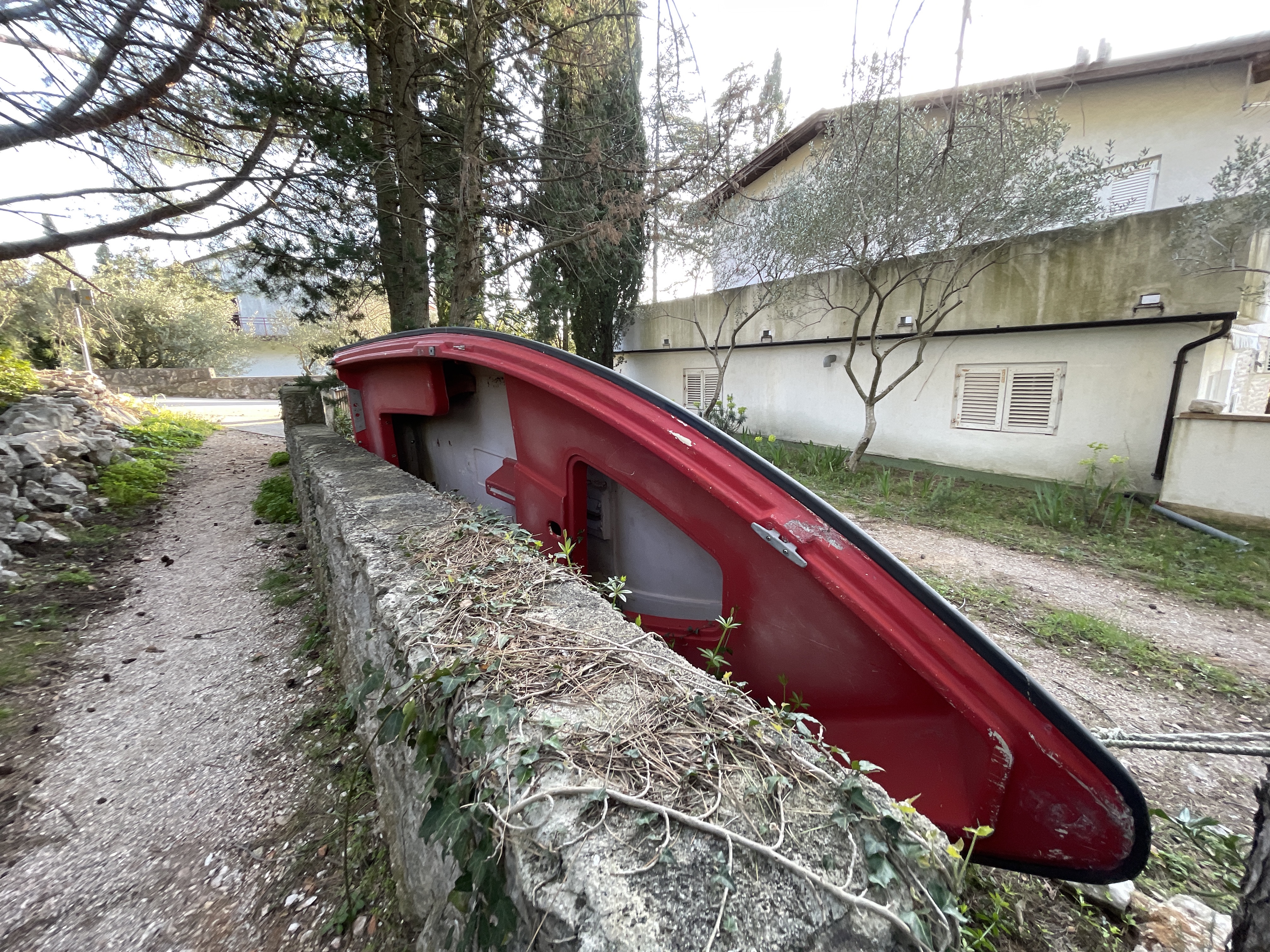 Gotovo kao pravilo, kružili smo prvo rivom, gotovo dva kilometra uz prekrasane i prepune starih stabala, Kampove Pila i Maslinik. Zaokruživši kroz iste, počeli smo sa lagainim usponom kroz redove ulica pod pravim kutom, sa prekrasnim kućama za odmor i velebnim vilama, ispred kojih su djelom bili parkirani automobili registracija susjedne nam zapadne dežele. Kažu domaći da će veliki broj njih doći za Uskrs na otok, pa tako i u Punat. No, mi to nećemo vidjeti, jer smo danass, u subotu napustili ovu oazu stvorenu za hodanje, planinarenje i bicikliranje. Ovdje smo se uspeli do svih 50 metara iznad mora i gornje ceste, koja inače vodi do obližnje Stare Baške, koju jedinu nismo ovoga puta uključili u naše aktivnosti, drugi puta. Djelom cestom, a djelom kroz ogromnu, barem za moje pojmove, Marinu Punat, sa stotinama skupocjenih jahti na suhom vezu u obližnjoj suhoj marini Brodica, stigli smo brzo do kraja samo 5,23 kilometra duge šetnje sa 62 metra uspona. Inače spomenuta marina prima brodove do 40 metara dužine i za iste ima čak 14 gatova, kao i stotine manjih za one nešto manje brodice.
