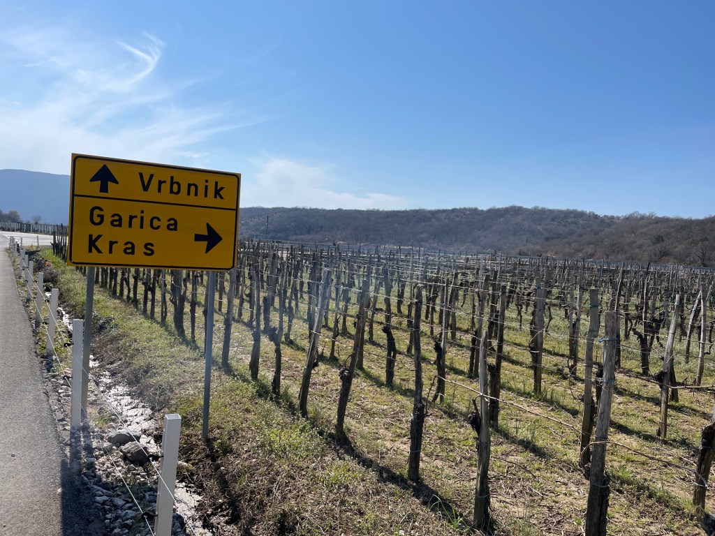 Danas je najpoznatiji proizvod Vrbničkog polja i Vrbnika uopće zlatnožuto vino- Žlahtina; postalo je glasovito i u širim hrvatskim razmjerima. Prema pričanju starijih mještana, prije nego što je vino steklo slavu, u polju su se uzgajale žitarice za prehranu obitelji koje su imale više članova, nego današnje. U takvim su uvjetima lozu uzgajali uz rubove polja jer nije bilo tržišta i vino se proizvodilo samo za vlastite potrebe. Od parkinga smo krenuli glavnom izlaznom, jednosmjernom cestom iz grada, no ubrzo smo krenuli uzbrdo, okomito i našli se na 100+ metara nad morem u svega 1000 metara hodanja. Prošli smo neke zaista impozantne vile, bez stanovnika naravno, i ubrzo se spojili na cestu kojom ćemo proći dan kasnije, u petak, na posljednjoj biciklističkoj ruti iz Dobrinja, preko Risike, prema Vrbniku. Istom smo nastavili do raskršća sa cestom 5183, koja spaja Punat sa Vrbnikom. Nastavili smo uz Hotel Gospoja, novoasfaltiranom prometnicom do odvojka prema sjeverozapadu, gdje smo ušli na makadam i obilje smilja i borovice.