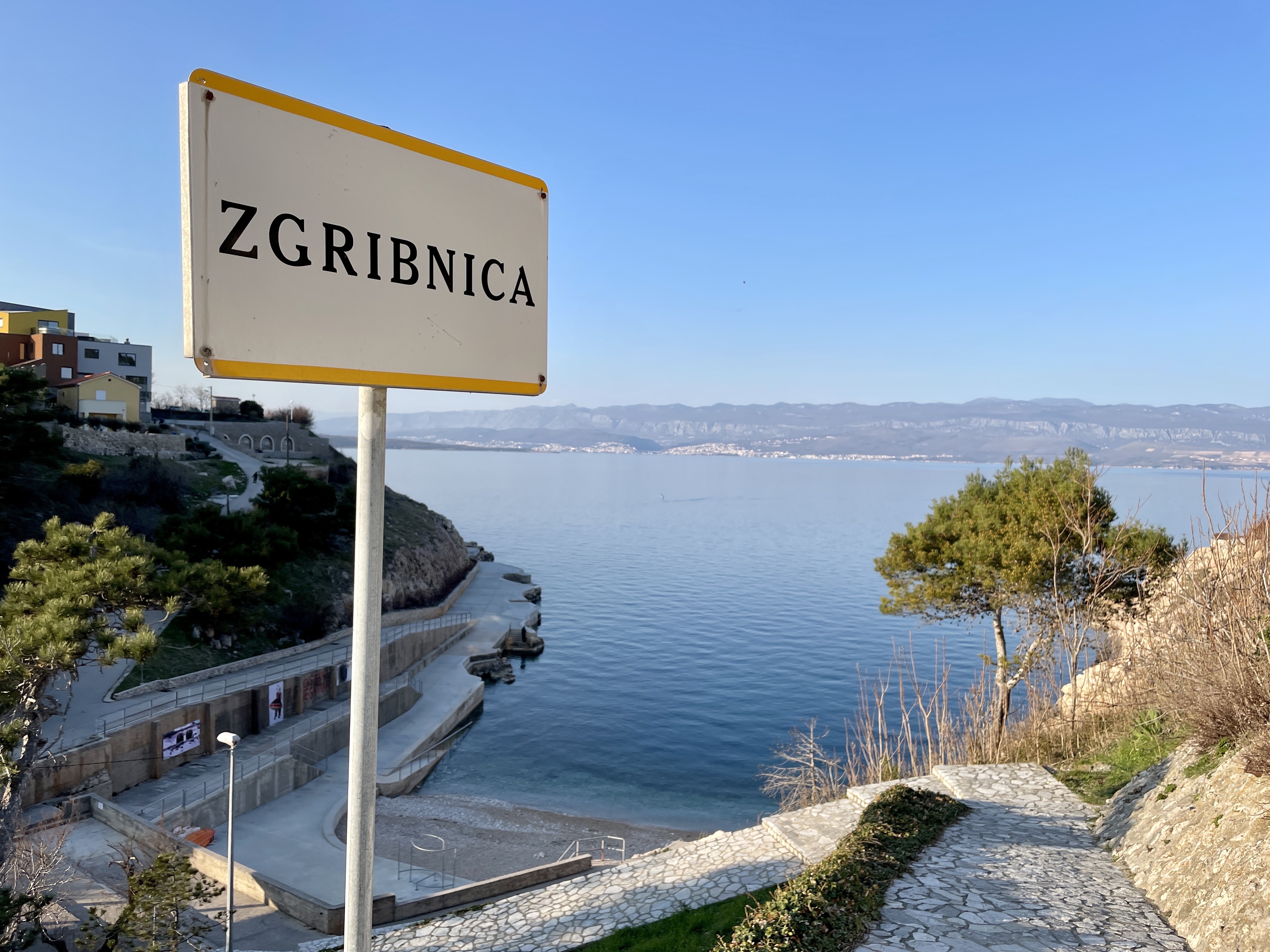 Nakon djelomičnog trekinga, traila i čistog hikinga preko kamenja i suhozida, vratili smo se među lokane kuće, koje su tu od starine, ali i ponekom novinom, sa 6,10 ili 12 apartmana, koje zjape prazne no znate koji su kapaciteti po obilježenim, praznim parkinzima ispred istih. opet smo se nakon “osvajanja” vrha Čerenec na 119 m/nm, spustili do nule, u uvalu Zgribnica, koja je bila jedna od rijetkih plaža koje smo vidjeli u Vrbniku, odnosno uopće mjesta za kupanje ljeti.