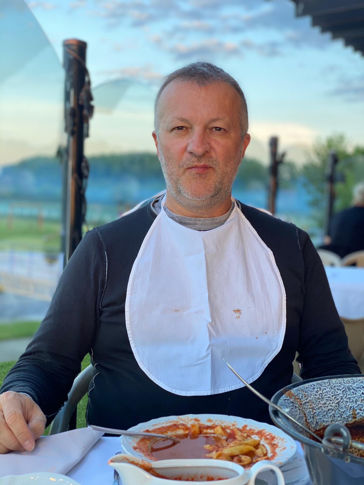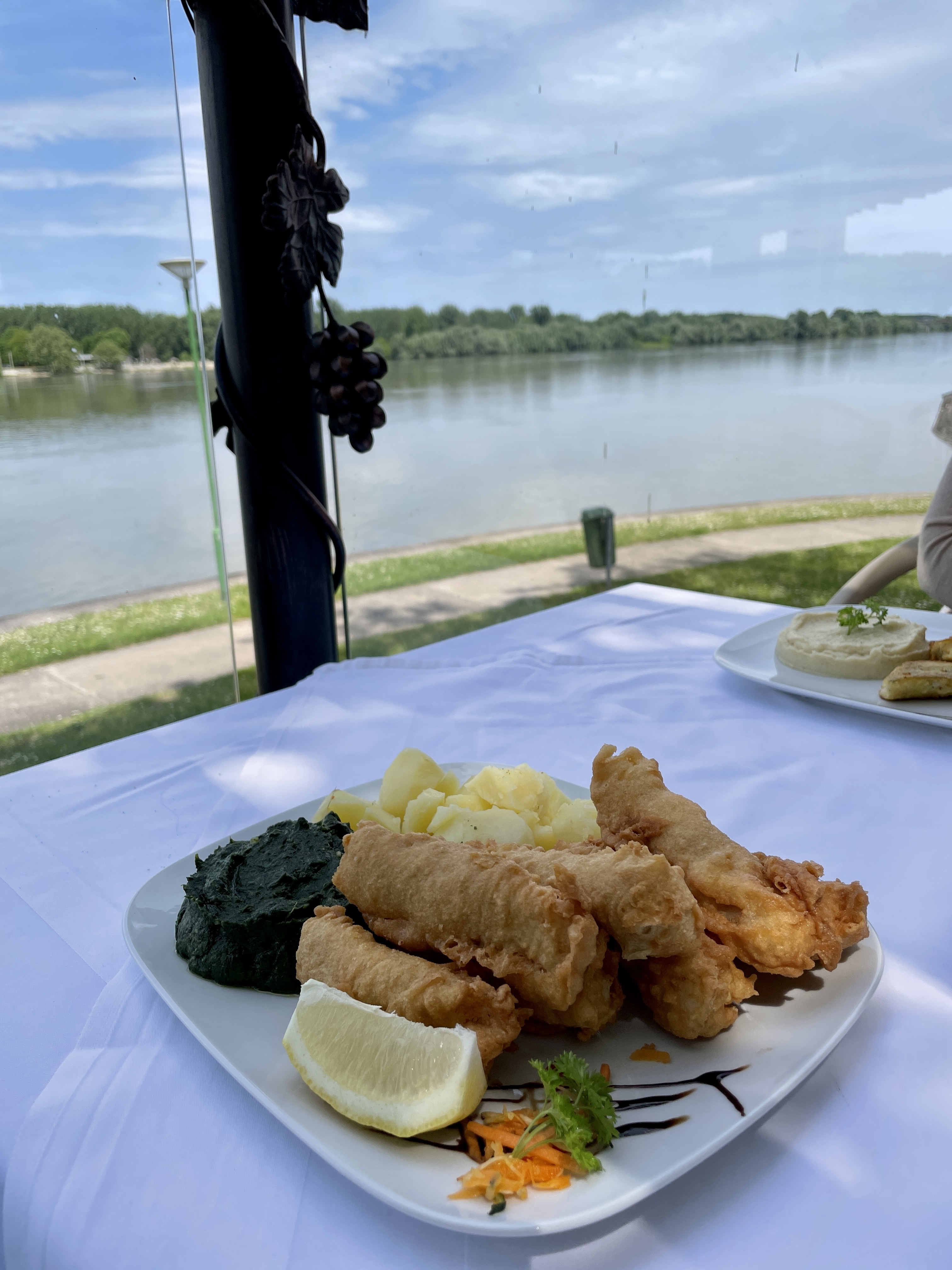 Kako nas ništa ne bi iznenadilo u projektu koji vodim za prijatelja Zvonka Madunu Makija, koji će prehodati lijepu našu između najistaknutijih točaka, već jučer, tri dana prije starta, logistički dio tima je stigao u Ilok. Da ništa ne prepustimo slučaju, smjestili smo se u Hotel Dunav nasuprot kojeg stoji oznaka koju naš Maki treba dotaknuti, odstatirati za koju fotografiju i krenuti na svoj dugohodački put. O hotelu možemo potvrditi sve što je na služenoj stranici: “Njegova atmosfera je magična, u isto vrijeme privlači putoholičare, ali i lokalce koji rado navraćaju na kavu i čaj. Od 2005., kada je otvoren, postao je jedan od najatraktivnijih hotela Srijema i Slavonije, vole ga sve generacije, ugostio je putnike sa svih strana svijeta, omiljeno je odredište individualaca i poslovnjaka, obitelji s djecom i parova, biciklista, strastvenih gurmana i ljubitelja srijemskih vina…” Da ništa ne bude samo na službenoj recenziji uzeli smo ribu za brzi ručak, a polagano uživanje uz fiš sa ribom bez kostiju za večeru…i domaća graševina, da lakše klizi.