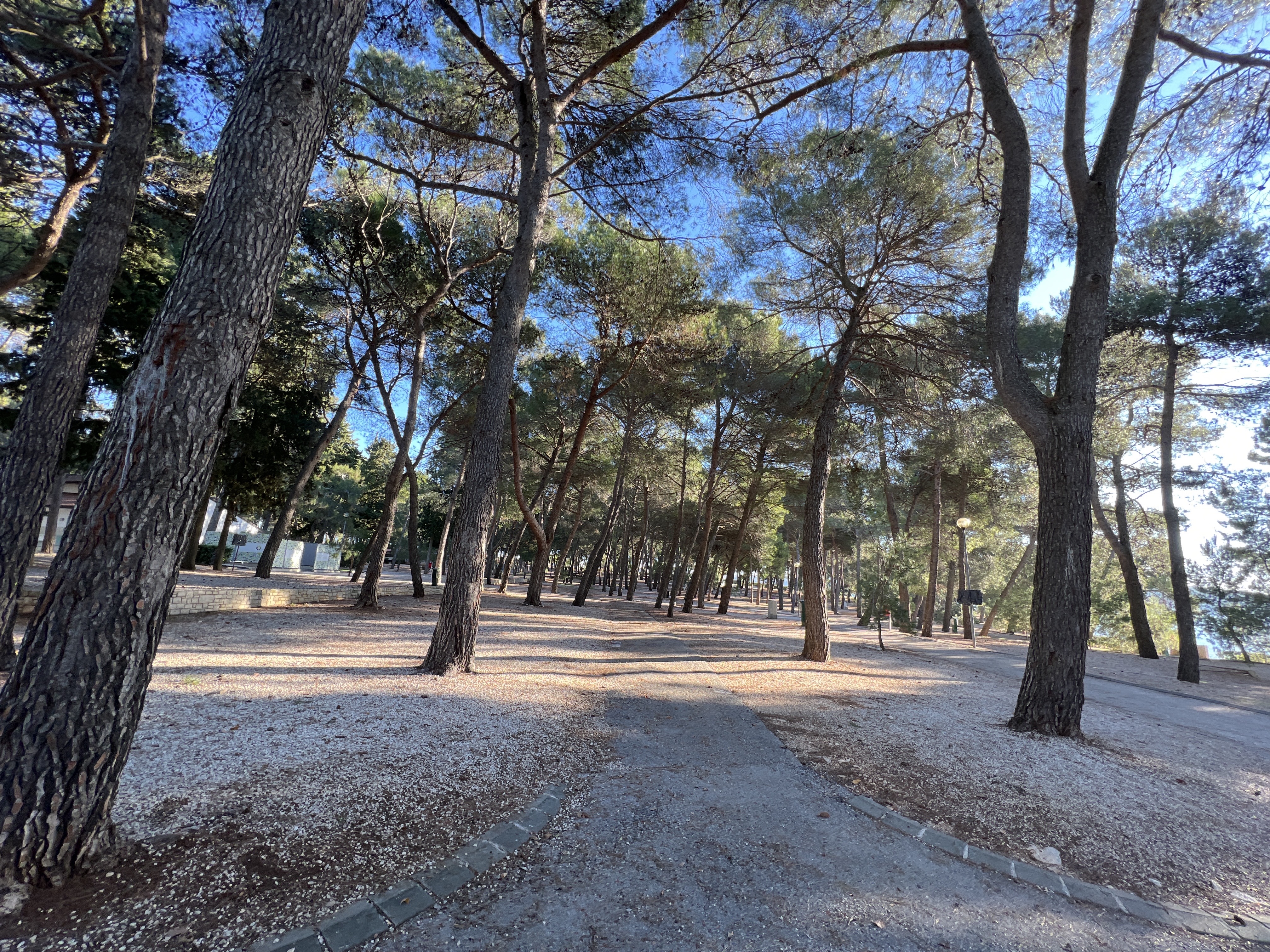 Prolaskom kroz predivnu šumu koja pripada kampu, prošli smo pored sportskog centra koji je vidio i bolje dane, no svakako ima kapacitet. Žalosno je samo što su zemljani teniski tereni potpuno zapušteni. Nakon trećeg kilometra, napustili smo na kratko vrijeme more i digli se do glavne ceste, jer nema drugog načina za zaobići kamenolom Antenal, na ulazu u Novigrad, koji nikako ne obogaćuje turističku ponudu mjesta, naprotiv! Prošavši kroz Stanciu Rosello, započeli smo spust prema moru, koje je sa tri strane, lijevo, desno i ispred.