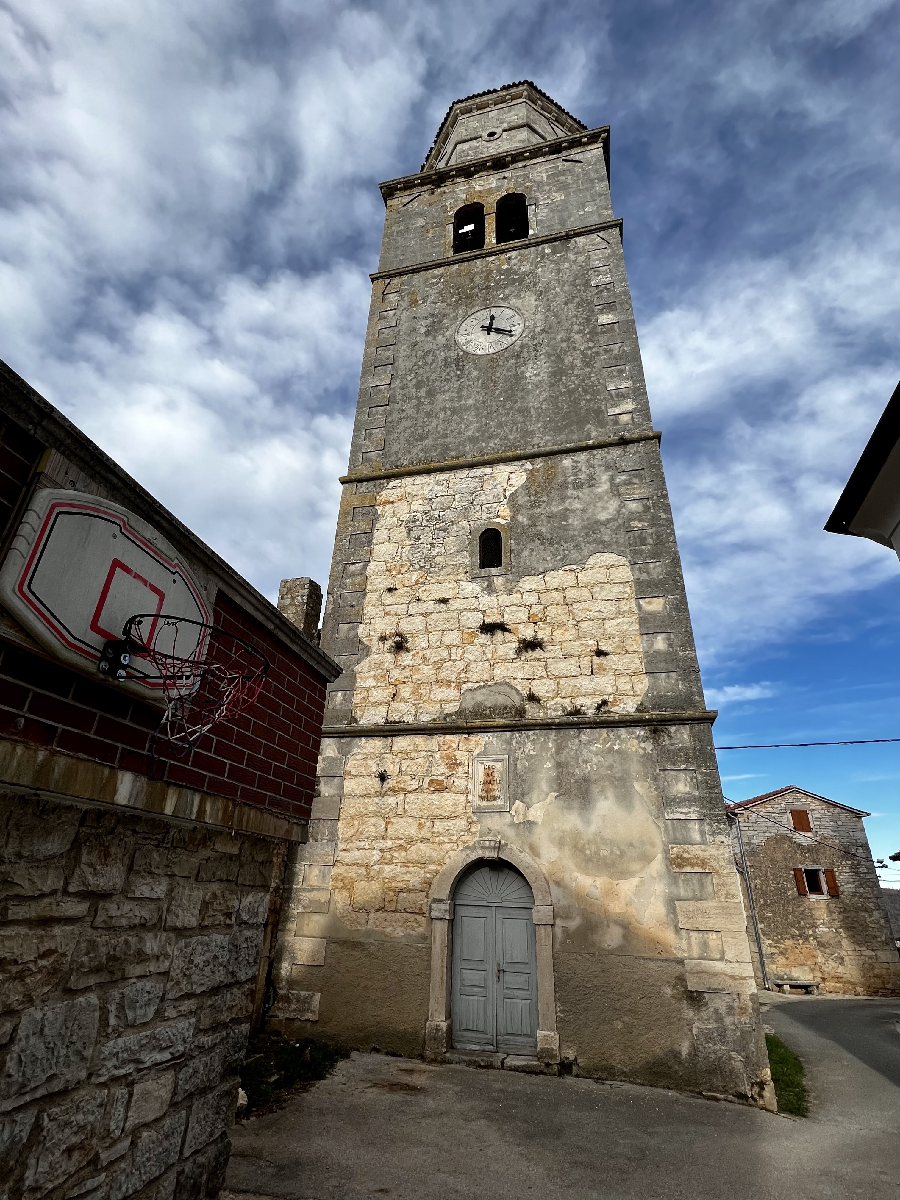 Prije dolaska na naše odredište, u malom selu pored Višnjana, zvanom San Marco, ili Markovac, o čemu ću nešto napisati u sredini teksta, odlučili smo nakon prolaska autoceste, silaska na obilaznicu Rijeke na Grobniku, proći kroz Tunel Učka i voziti istarskim ipsilonom do iza Pazina, kada smo se uključili na lokalne ceste do Tinjana. Tamo smo obišli centar mjesta sa poznatim Županskim stolom, kućom pršuta, crkvom Sv. Šimuna i Jude Tadeja i drugim znamenitostima.