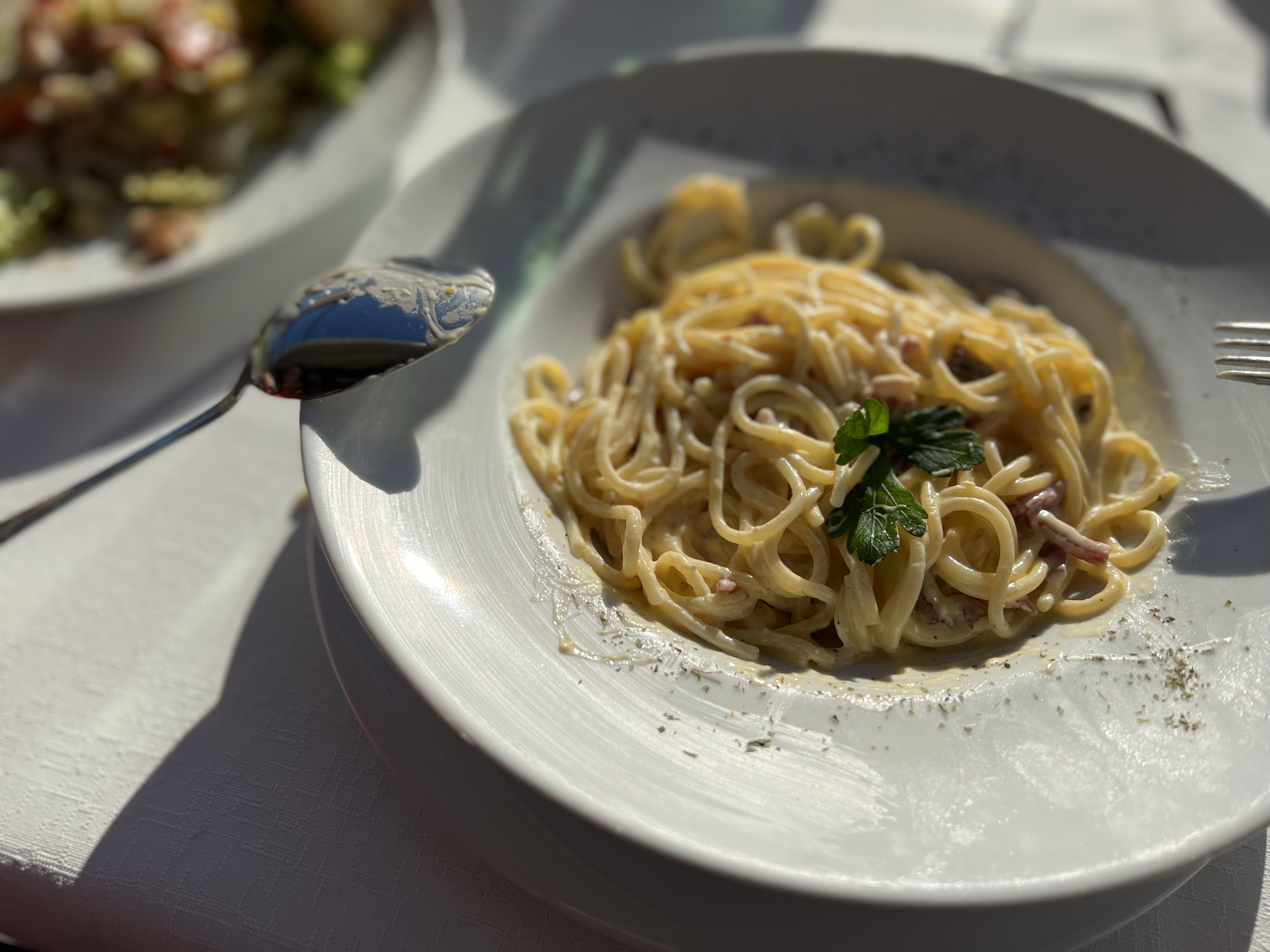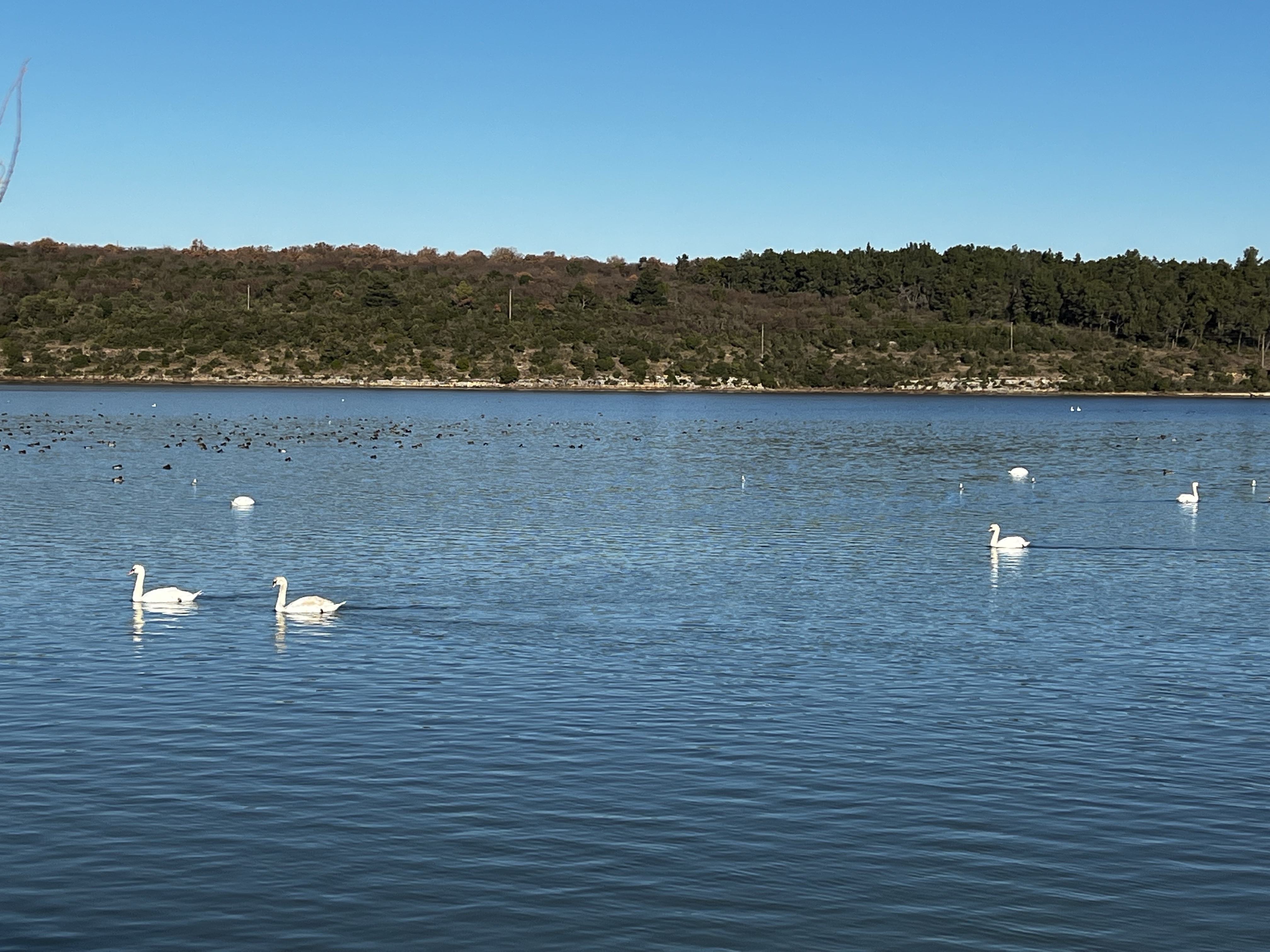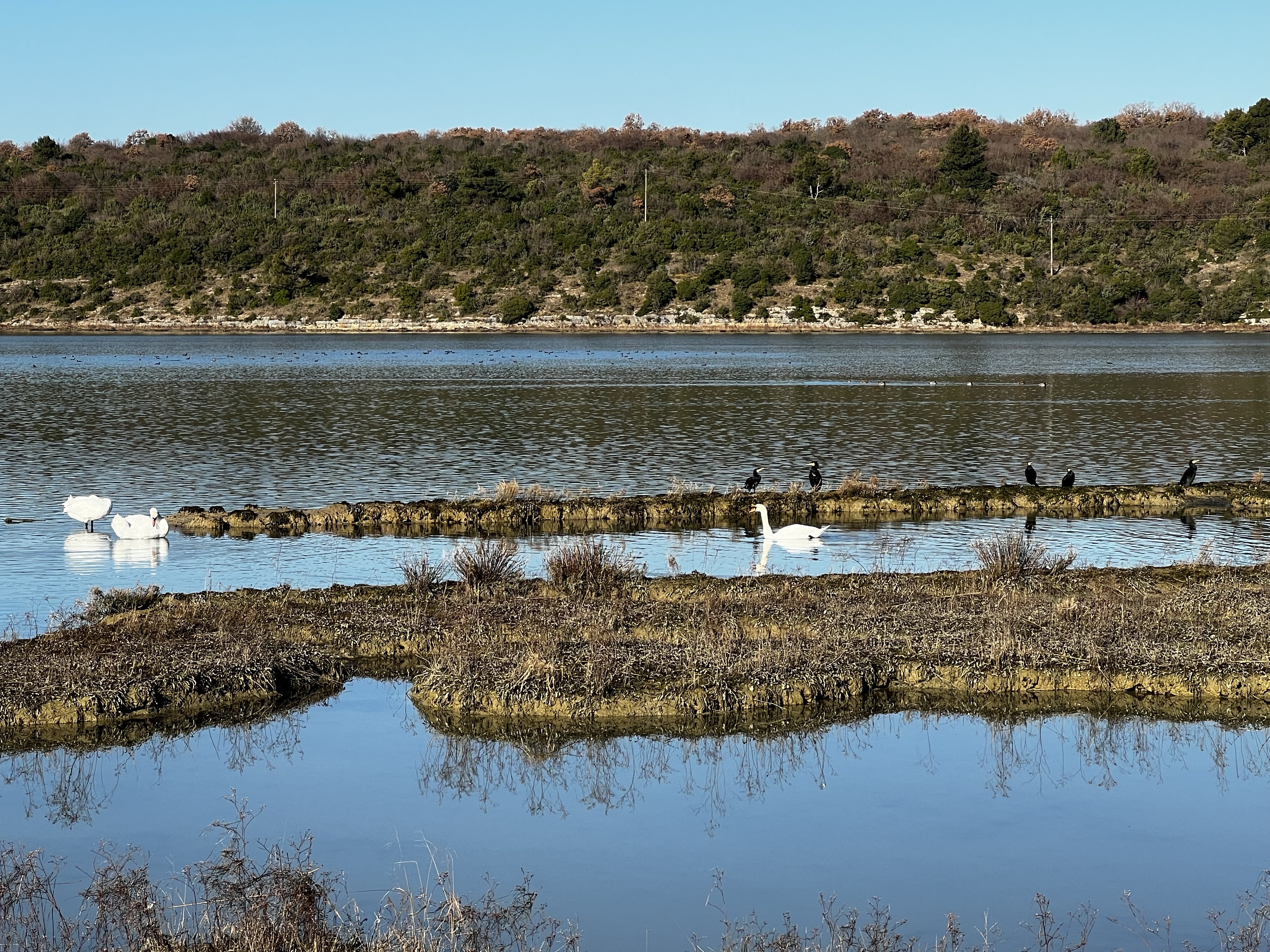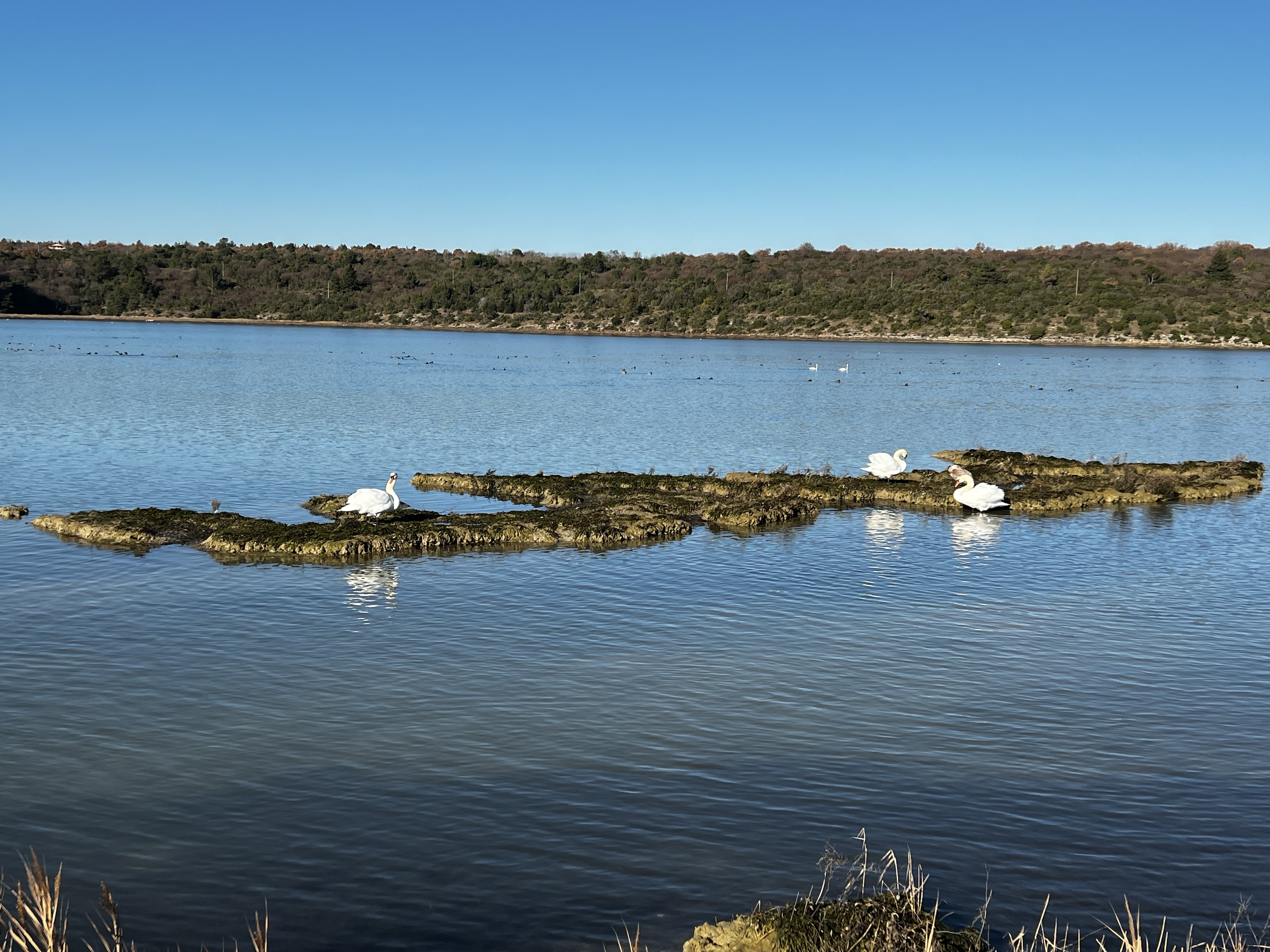 Nakon “razgovora” sa mnoštvom ptica, koje se hrane velikom količinom ribe koja se zadržava na ovom predivnom mjestu, krenuli smo natrag istim putem, kroz rezervat, ali po rubu močvarnog dijela ovog, naoko jezera, iako su nam lokalci rekli da je i to more. Valjda oni znaju. prošli smo pored prekrasno uređene osmatračnice sa stazom uklesanom u kamen i došli ponovno do glavne ceste ispod Stancije Rosello. Ovoga puta nismo se spuštali u kamp i sportski centar, već smo iznad hotela nastavili do glavne gradske šetnice i pronašli jedan otvoreni lokal, gdje smo pojeli pristojnu tjesteninu i završili našu današnju šetnju. Sutra je na redu naše prebivalište, San Marco i sredozemna sela Labinci i Kaštelir, no o tome sutra.