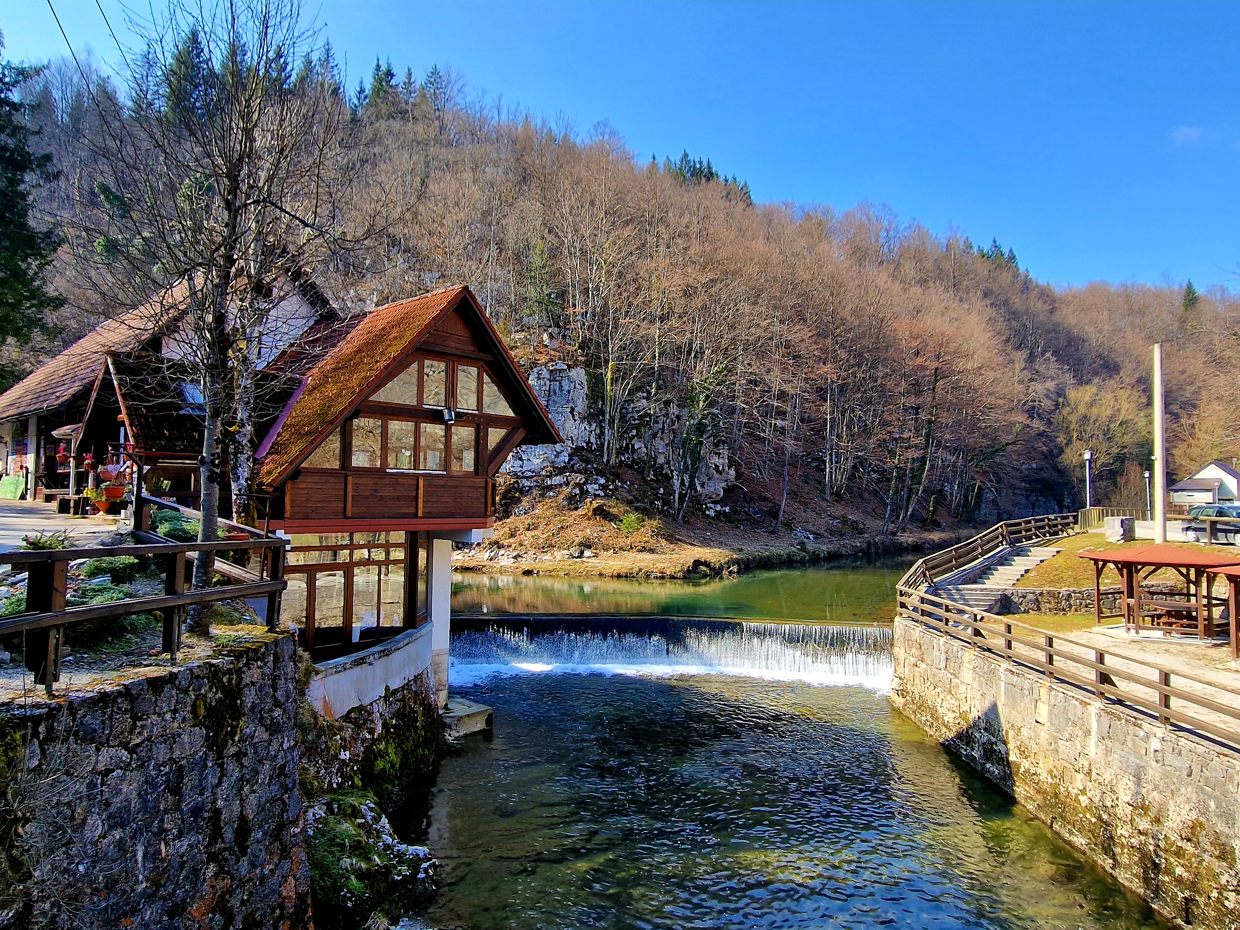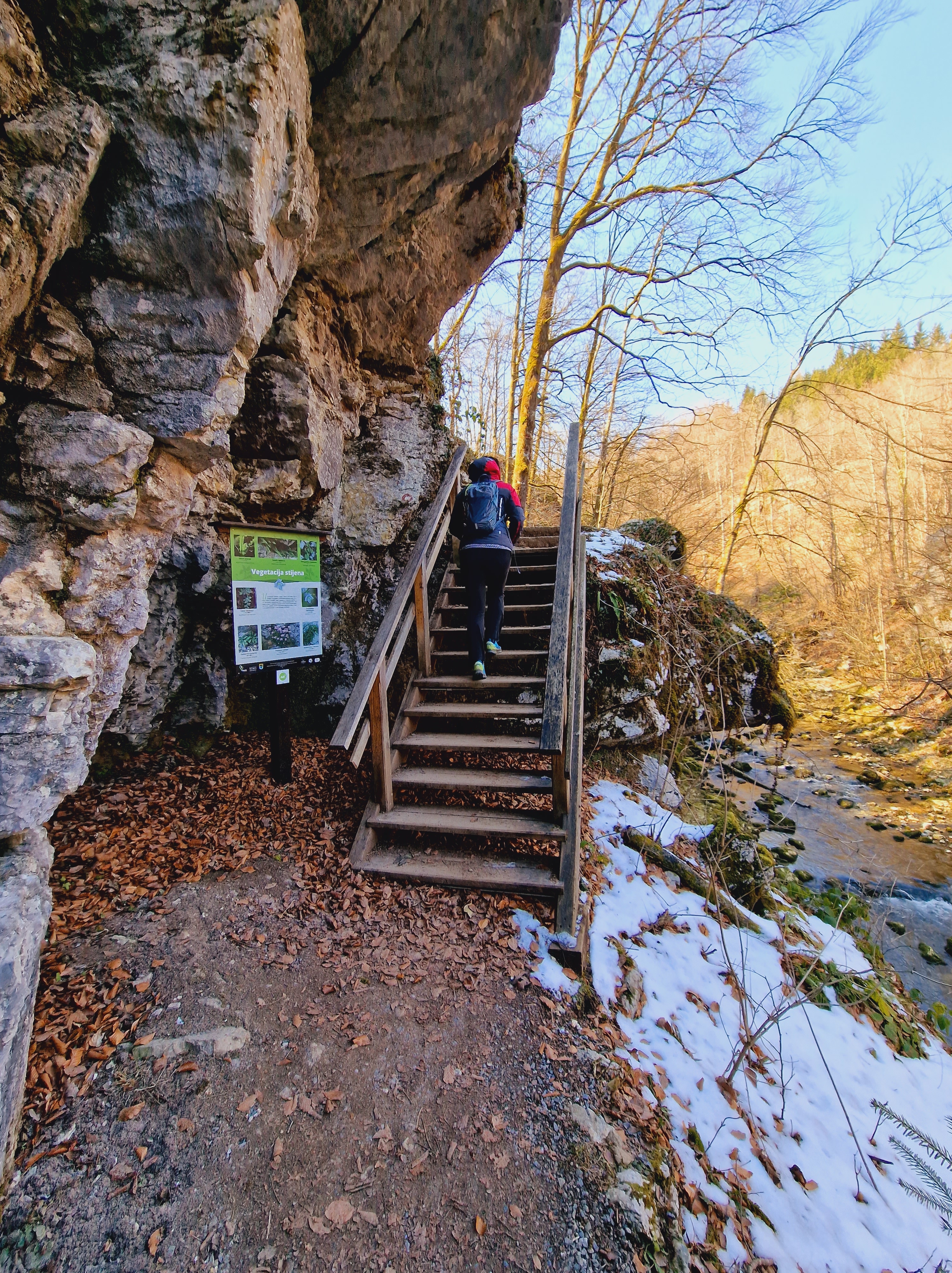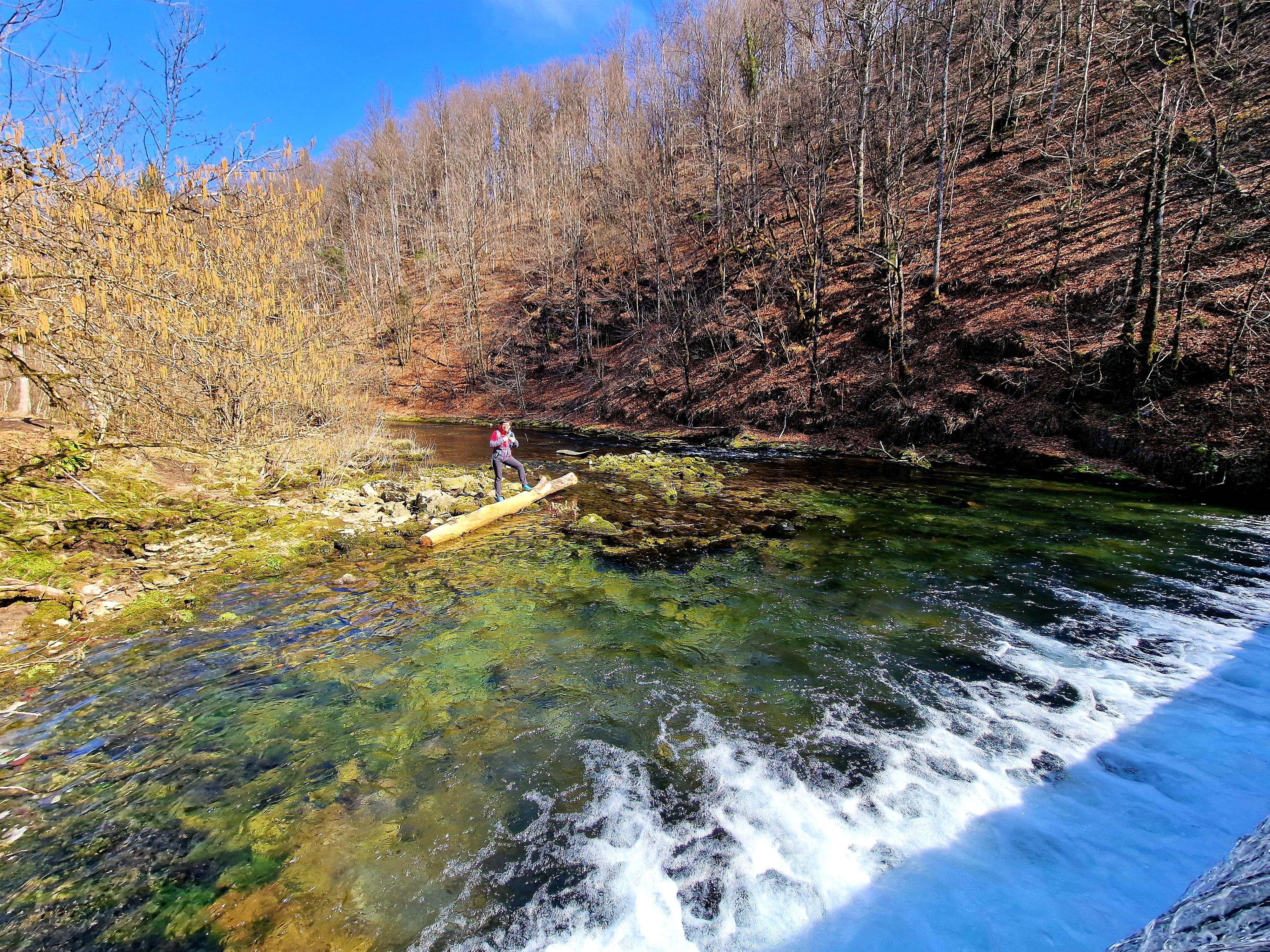 Danas smo napokon poželjeli iskoristiti prekrasno sunčano, ali dosta hladno vrijeme za šetnju do izvorišta Kamačnika, na 405 mnv. Izvor je udaljen nekih 3,7 kilometara od restorana istog imena, možda i manje, no ja sam nekoliko puta silazio do rijeke radi ljepših fotografija, pogotovo nakon posljednjeg mosta, jer se sa proširenog puta na lijevoj obali baš i ne može uživati u neometanom pogledu na posljednji kilometar do izvora. Krenimo redom.