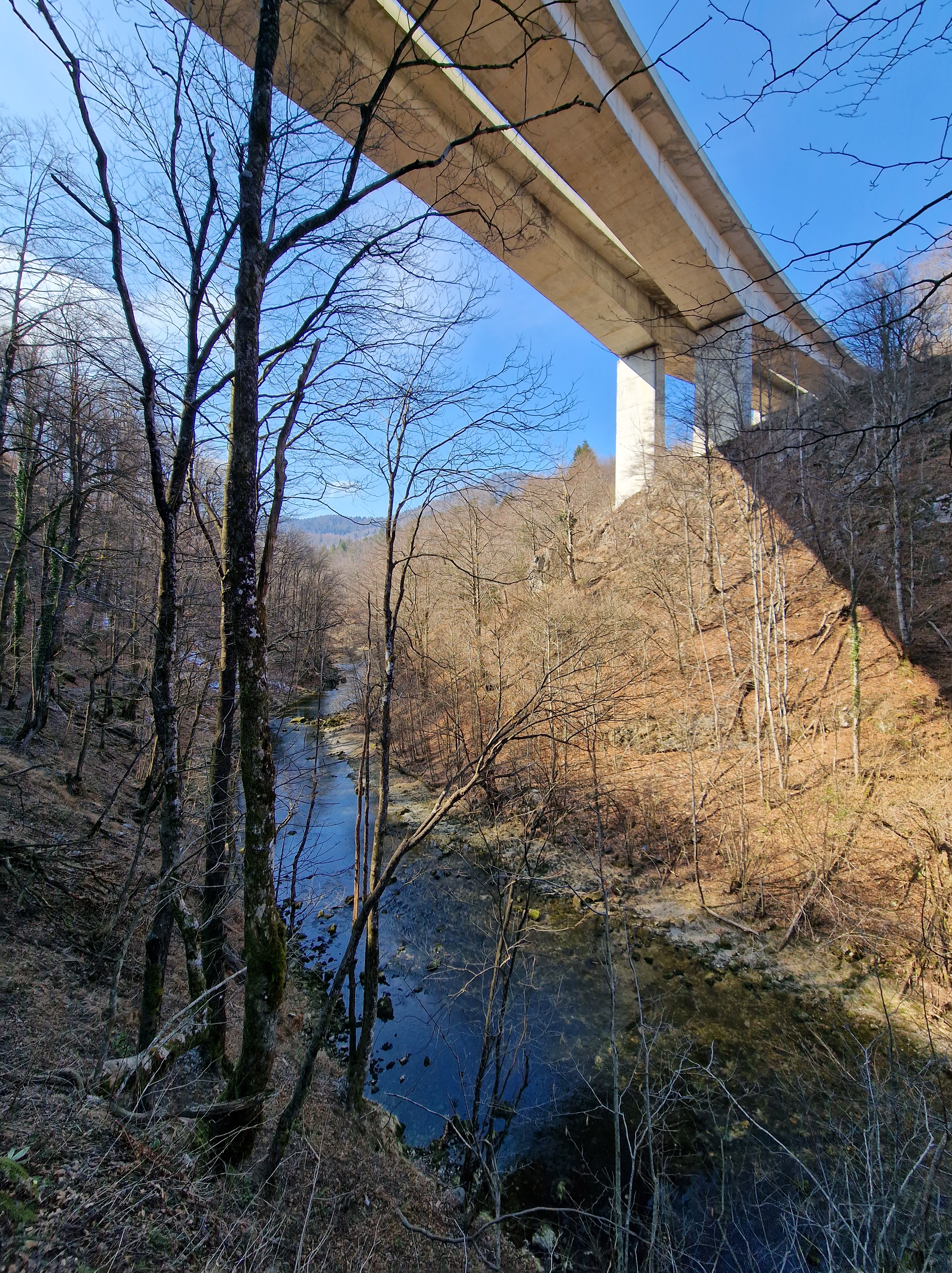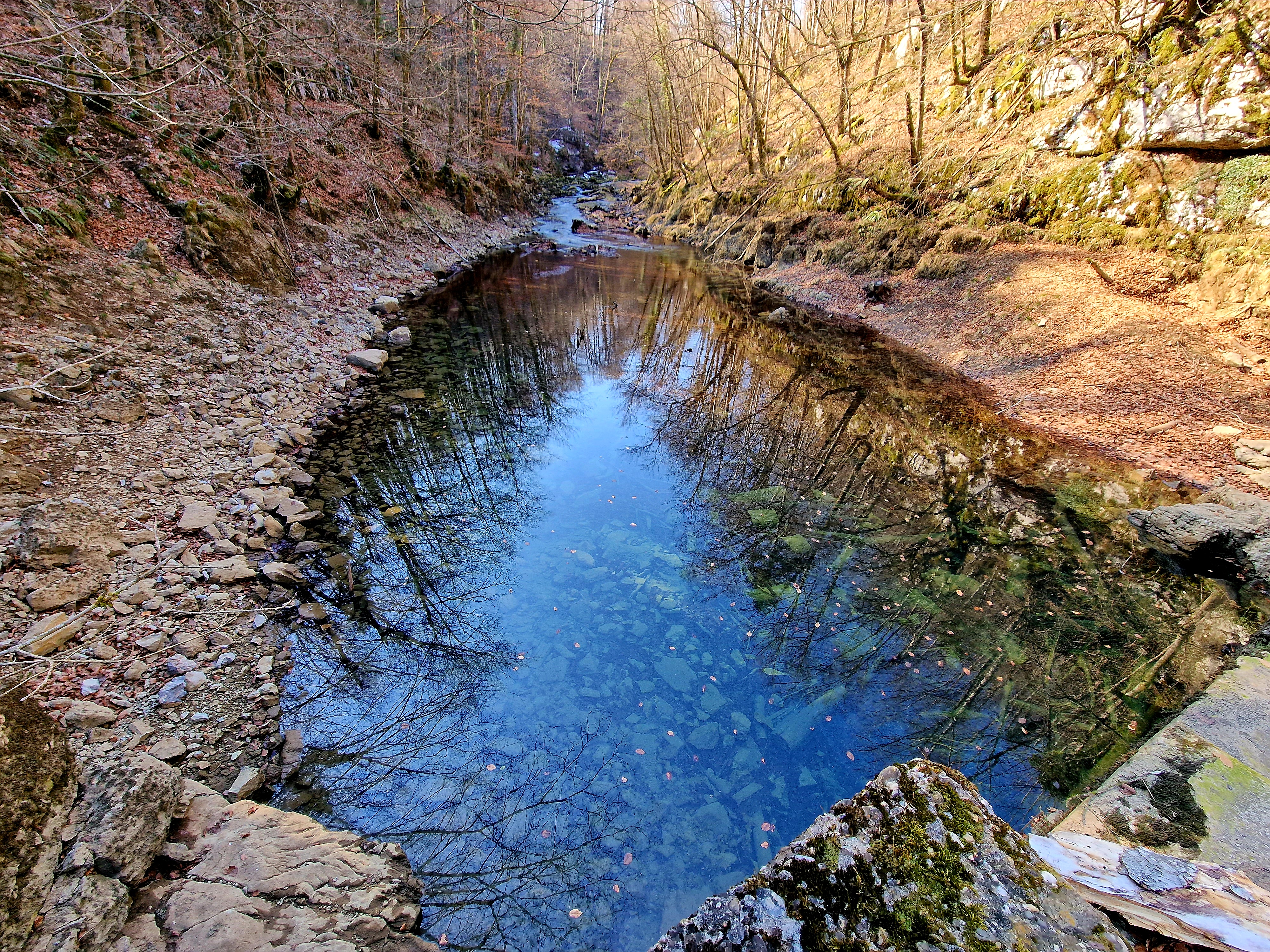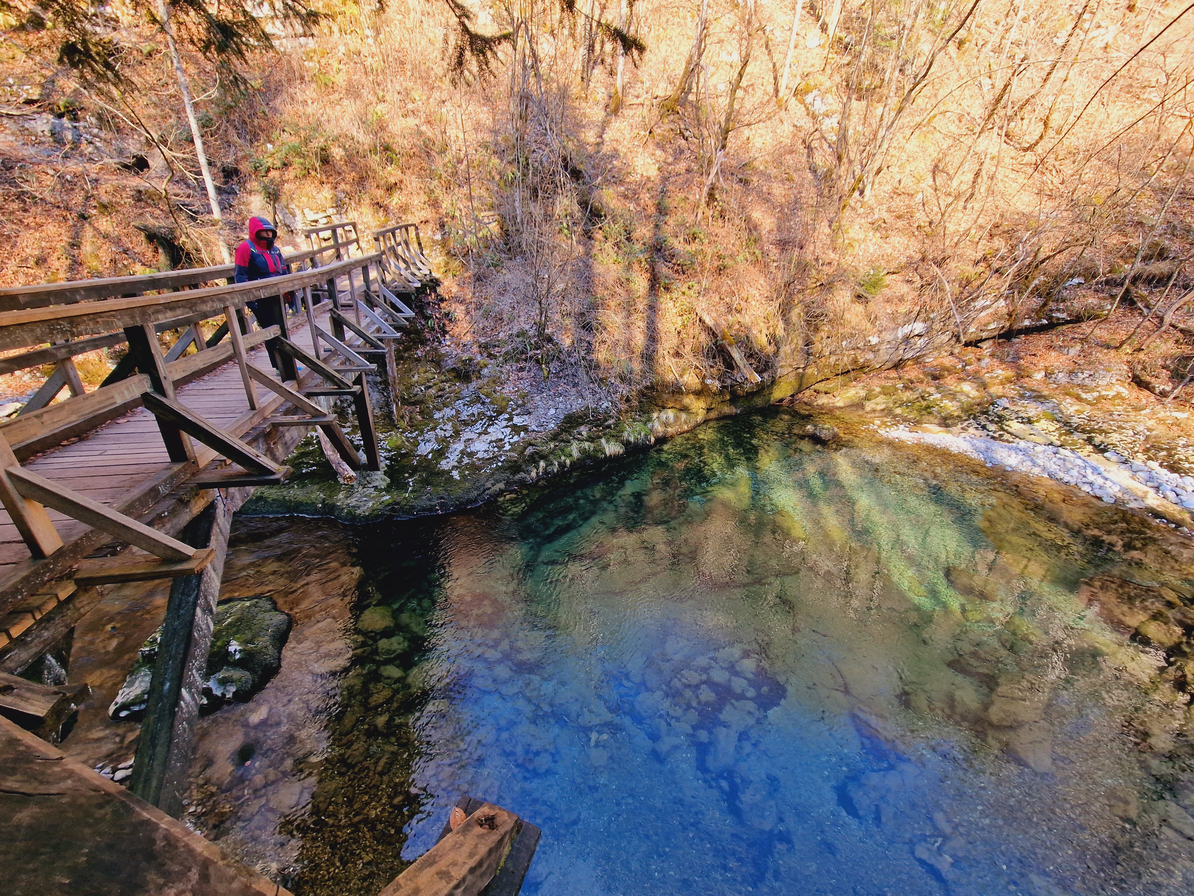 Danas smo napokon poželjeli iskoristiti prekrasno sunčano, ali dosta hladno vrijeme za šetnju do izvorišta Kamačnika, na 405 mnv. Izvor je udaljen nekih 3,7 kilometara od restorana istog imena, možda i manje, no ja sam nekoliko puta silazio do rijeke radi ljepših fotografija, pogotovo nakon posljednjeg mosta, jer se sa proširenog puta na lijevoj obali baš i ne može uživati u neometanom pogledu na posljednji kilometar do izvora. Krenimo redom.