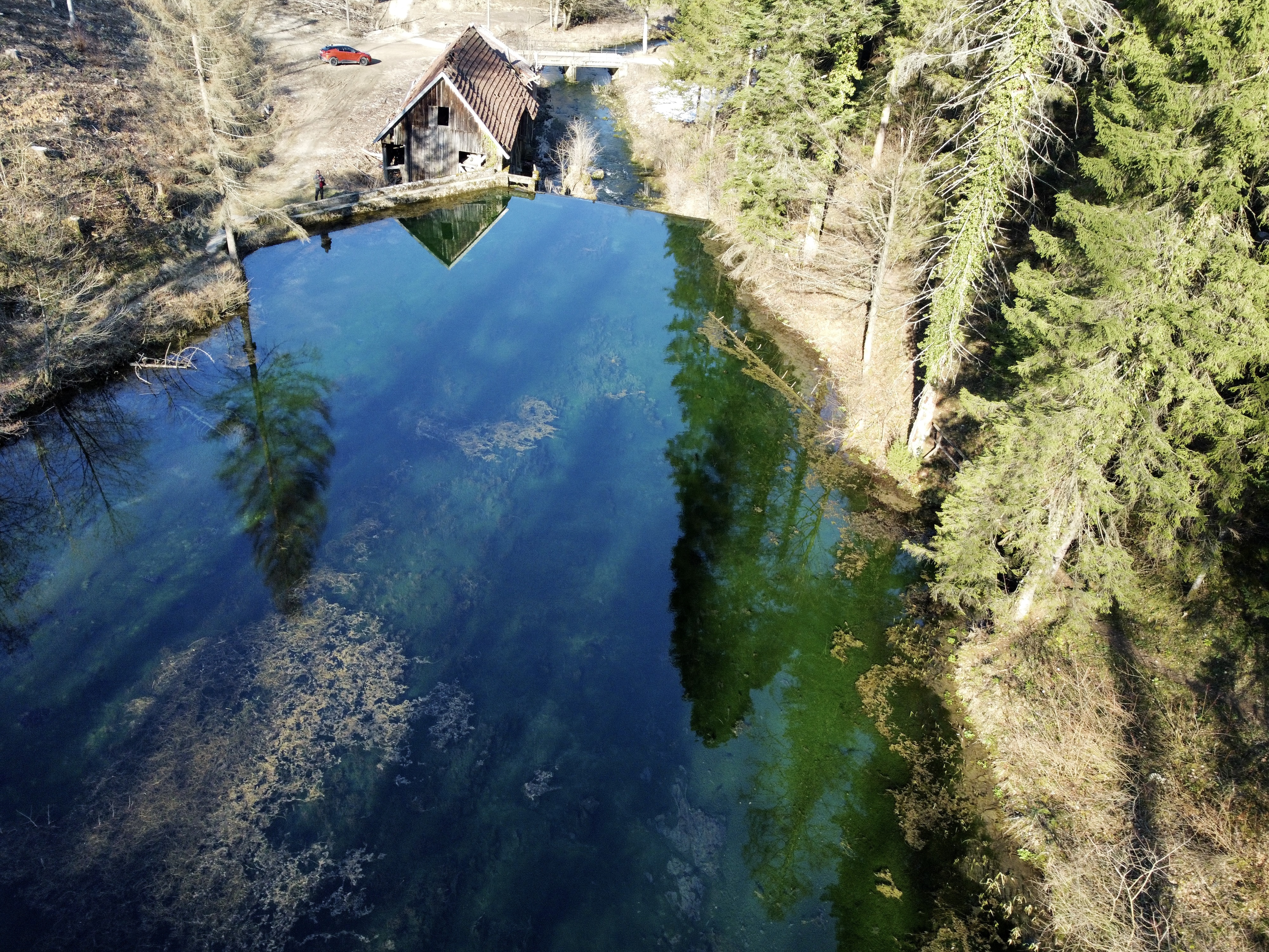 Nakon odlično spravljene pastrve i kavice, planirano i ispunjeno bilo je ponovno posjetiti jedno malo gorsko oko, jezerce iza zaseoka Tići. Tamo možete doći samo ako baš znate što tražite, jer nema nikakvog putokaza. Ovaj puta, s obzirom da sam prošle godine probao sve zemaljske fotografije, okušao sam se sa perspektivom velikih čaplji koje su nas dočekale na Čogrljevom jezeru u Moravicama, selo Tići.