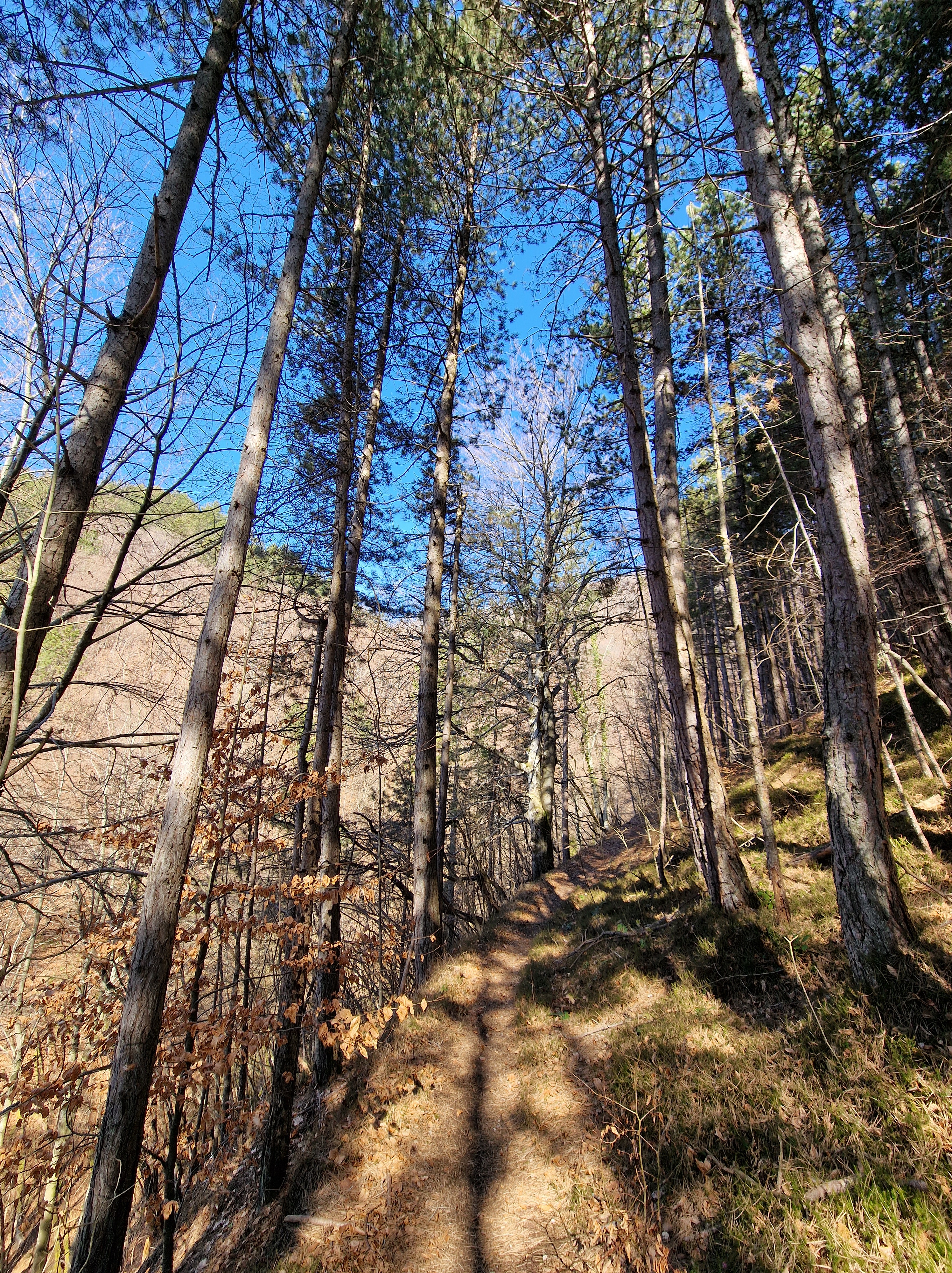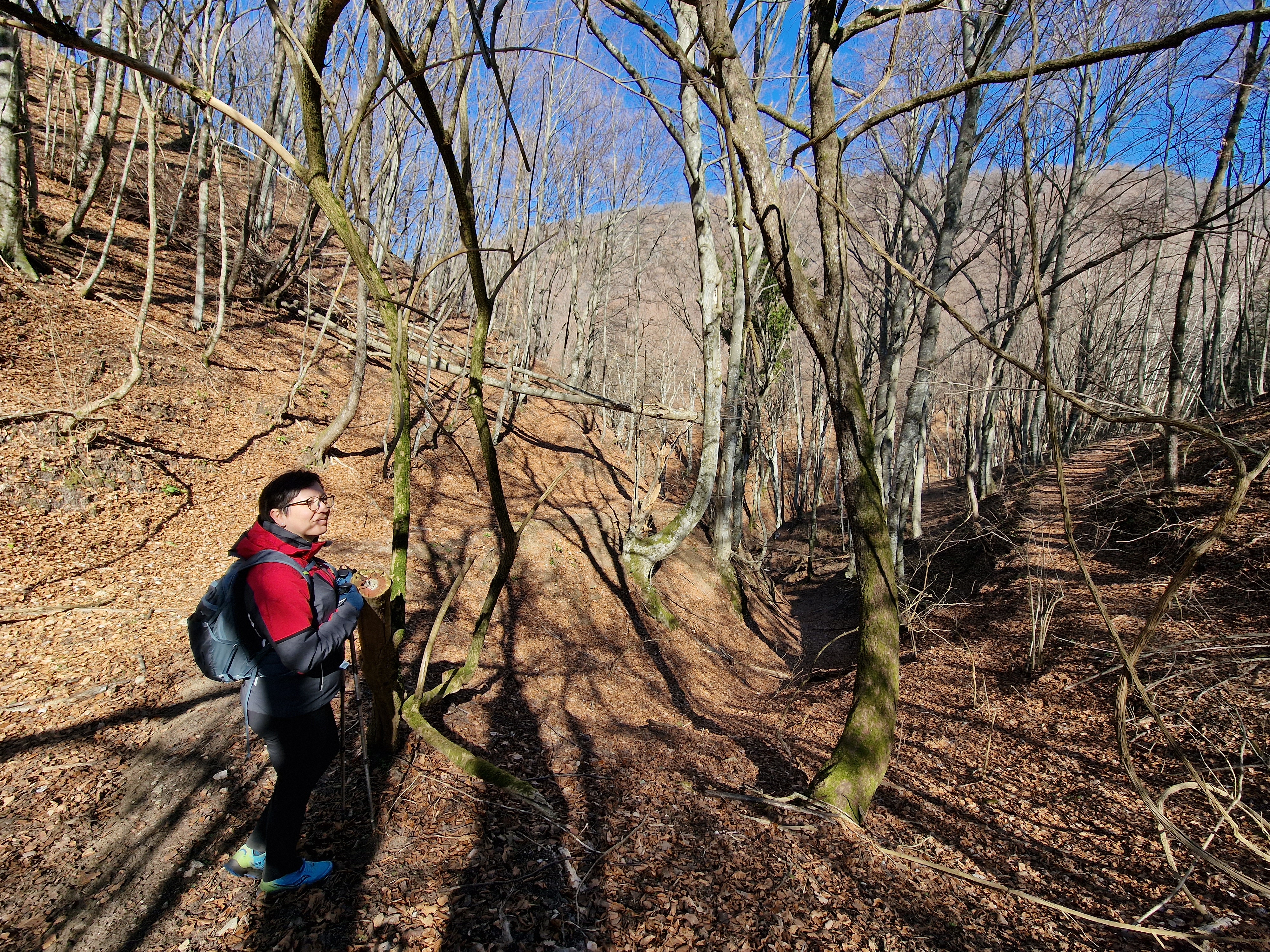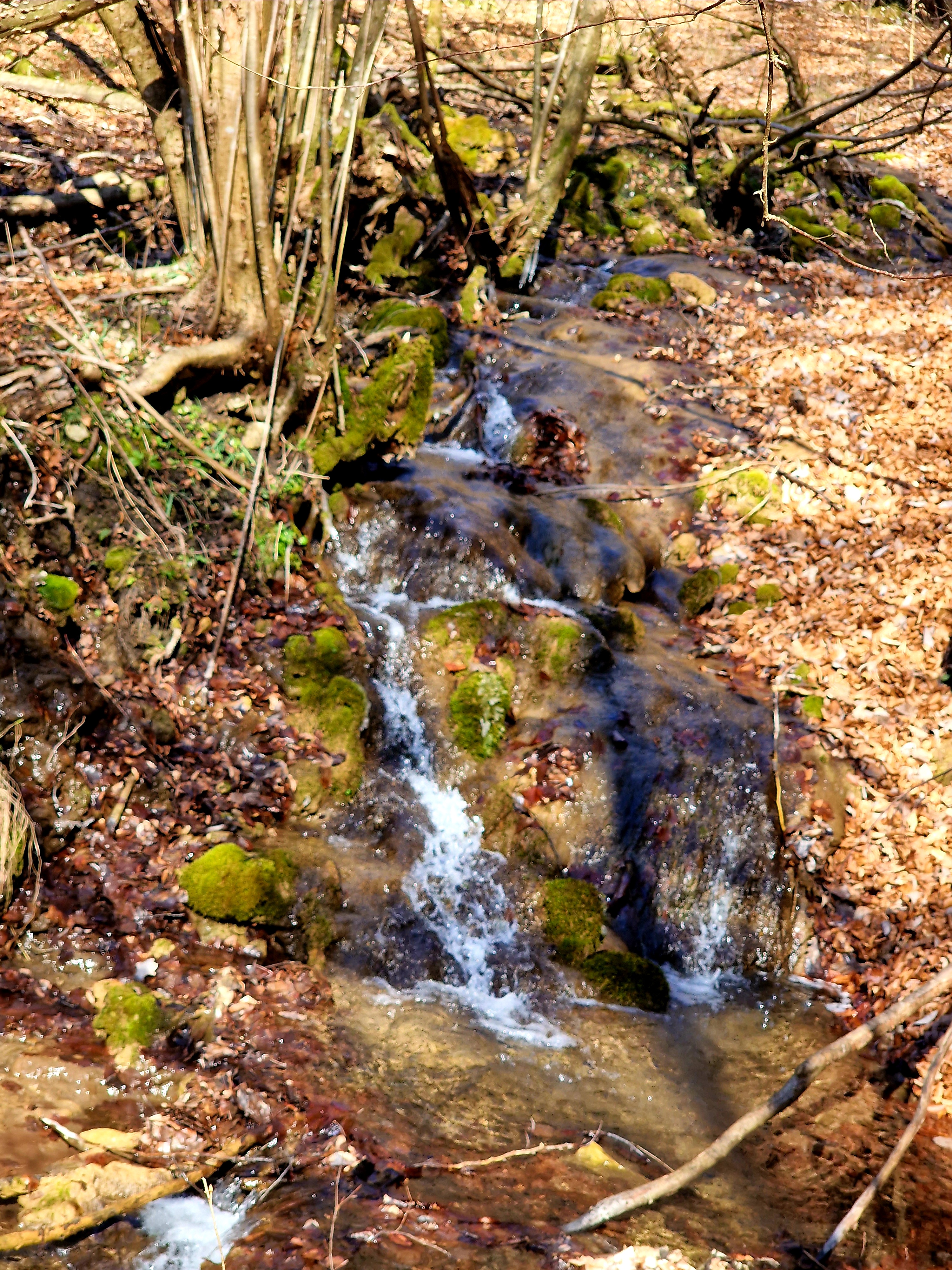 Nakon što smo prošli spomenutu kapelicu, naša vjerna aplikacija nas je uputila oštro lijevo, nizbrdo, lijepom, očišćenom i uređenom planinarskom stazom, koja nas je nakon jednog presušenog izvora dovela do križanja sa planinarskom stazom sa oznakom 20. Inače, čak je 88 planinarskih staza u Parku prirode Žumberak – Samoborsko gorje. U rasponu su od laganih do teških i s ovolikim brojem staza nema posjetitelja koji ne može pronaći svoju stazu i put osobnog otkrivanja zaštićenog područja koje je potvrda kvalitetnog i održivog suživota čovjeka i okoliša. Mi smo uživali u svakom koraku sunčanog nedjeljnog dana, van uobičajenih i popularnih “šetnica” koje vode do nekih, vikendom otvorenih planinarskih domova u Samoborskom gorju. Ovdje toga nema, ali ima nedirnute prirode! Uskoro smo, negdje na drugom kilometru došli do jednog predivnog potoka, koji je u neko drugo doba godine vjerojatno daleko moćniji, sudeći po koritu, no sada se uklopio u izložbu ljepota žumberačkog kraja.