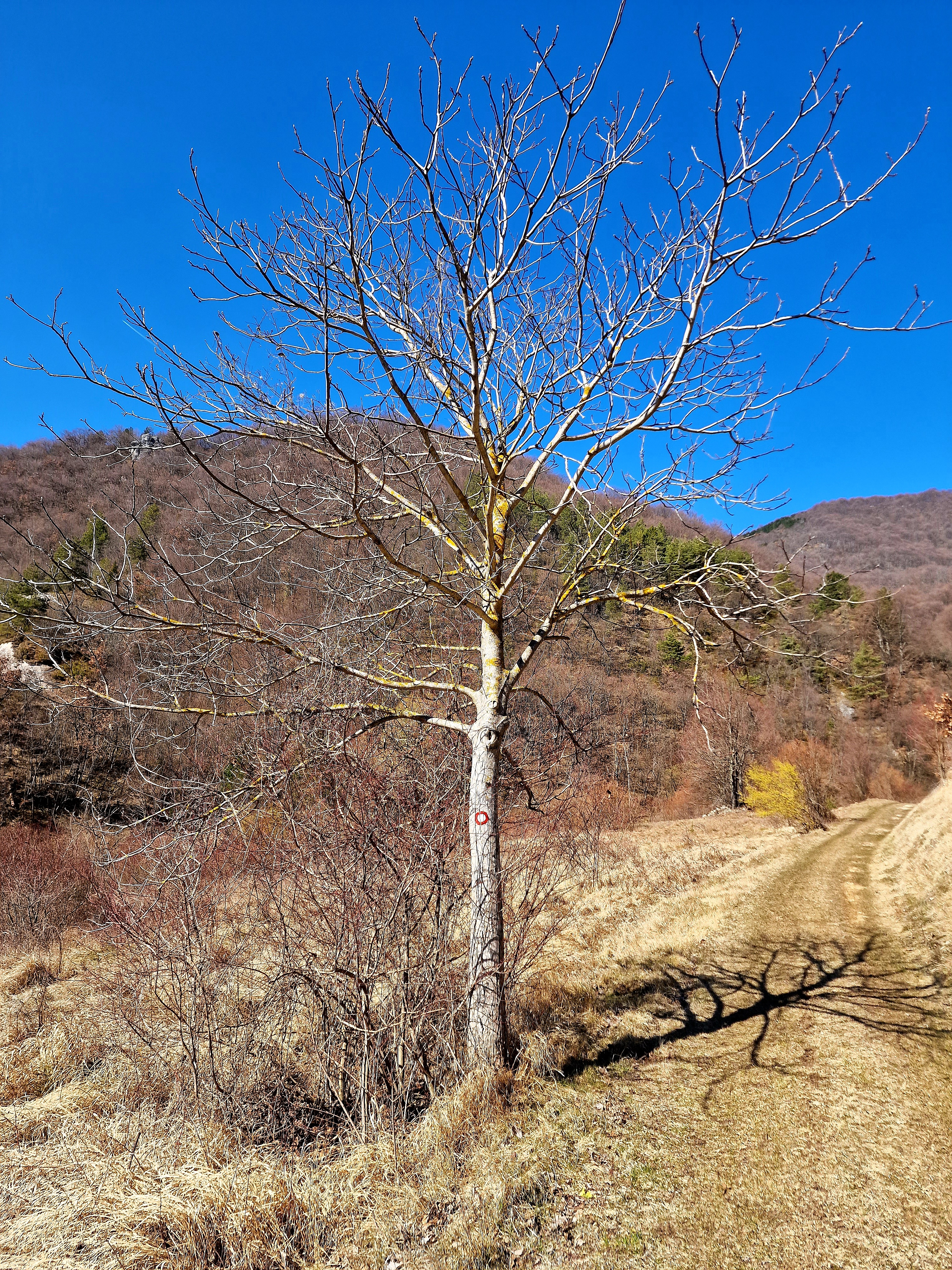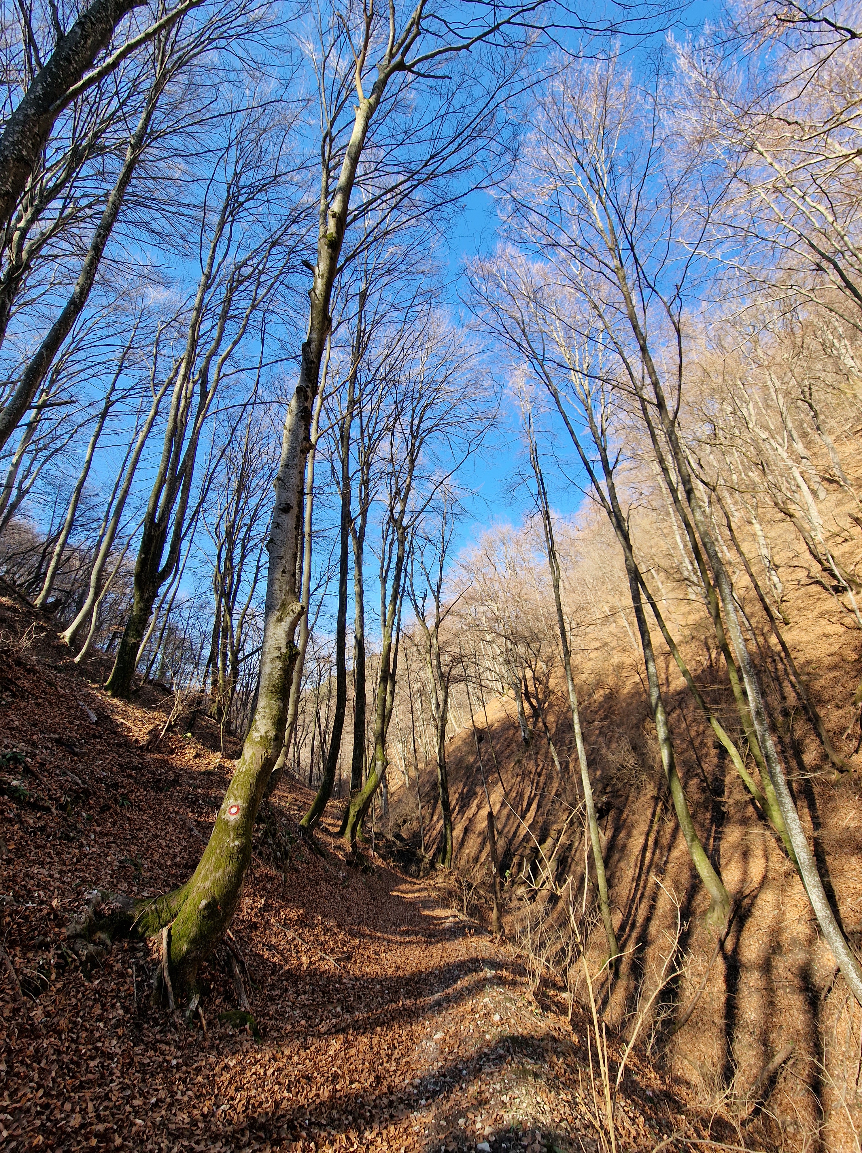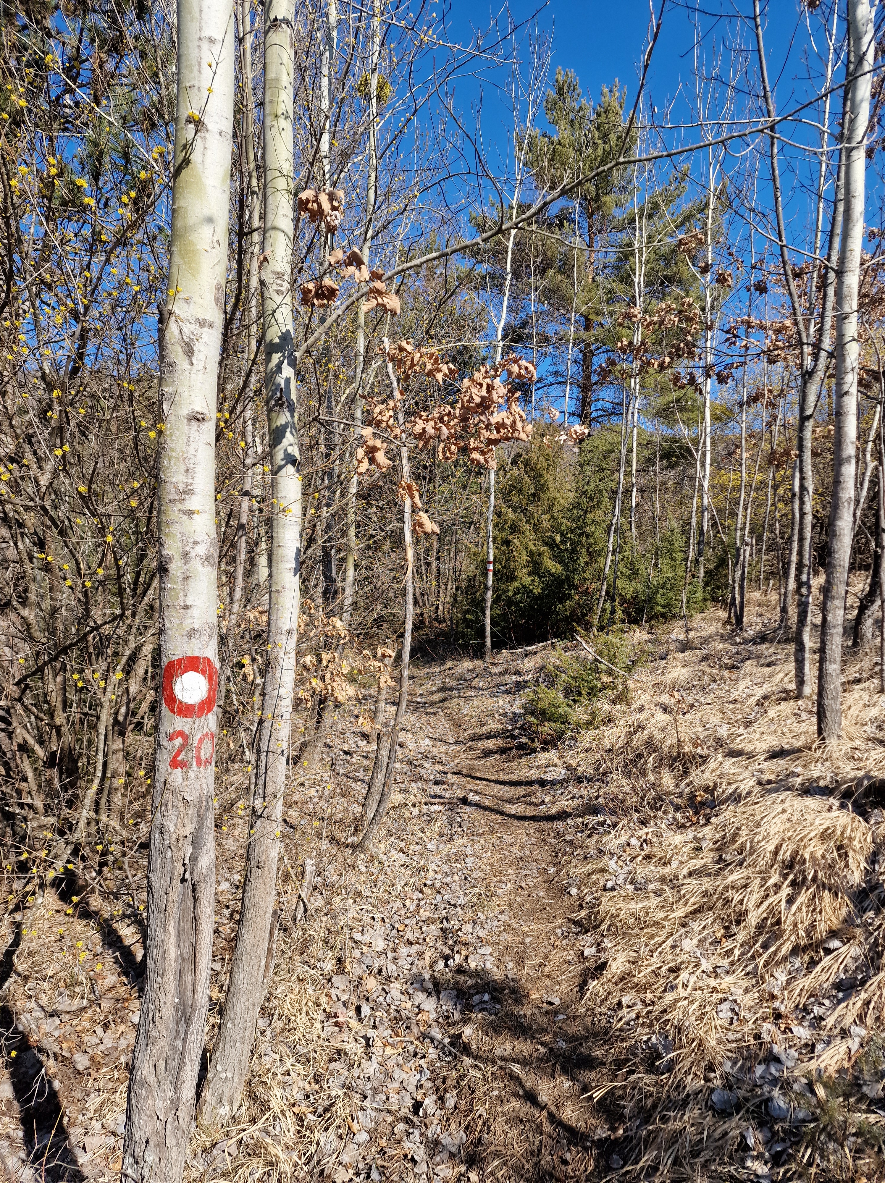 Nakon što smo prošli spomenutu kapelicu, naša vjerna aplikacija nas je uputila oštro lijevo, nizbrdo, lijepom, očišćenom i uređenom planinarskom stazom, koja nas je nakon jednog presušenog izvora dovela do križanja sa planinarskom stazom sa oznakom 20. Inače, čak je 88 planinarskih staza u Parku prirode Žumberak – Samoborsko gorje. U rasponu su od laganih do teških i s ovolikim brojem staza nema posjetitelja koji ne može pronaći svoju stazu i put osobnog otkrivanja zaštićenog područja koje je potvrda kvalitetnog i održivog suživota čovjeka i okoliša. Mi smo uživali u svakom koraku sunčanog nedjeljnog dana, van uobičajenih i popularnih “šetnica” koje vode do nekih, vikendom otvorenih planinarskih domova u Samoborskom gorju. Ovdje toga nema, ali ima nedirnute prirode! Uskoro smo, negdje na drugom kilometru došli do jednog predivnog potoka, koji je u neko drugo doba godine vjerojatno daleko moćniji, sudeći po koritu, no sada se uklopio u izložbu ljepota žumberačkog kraja.