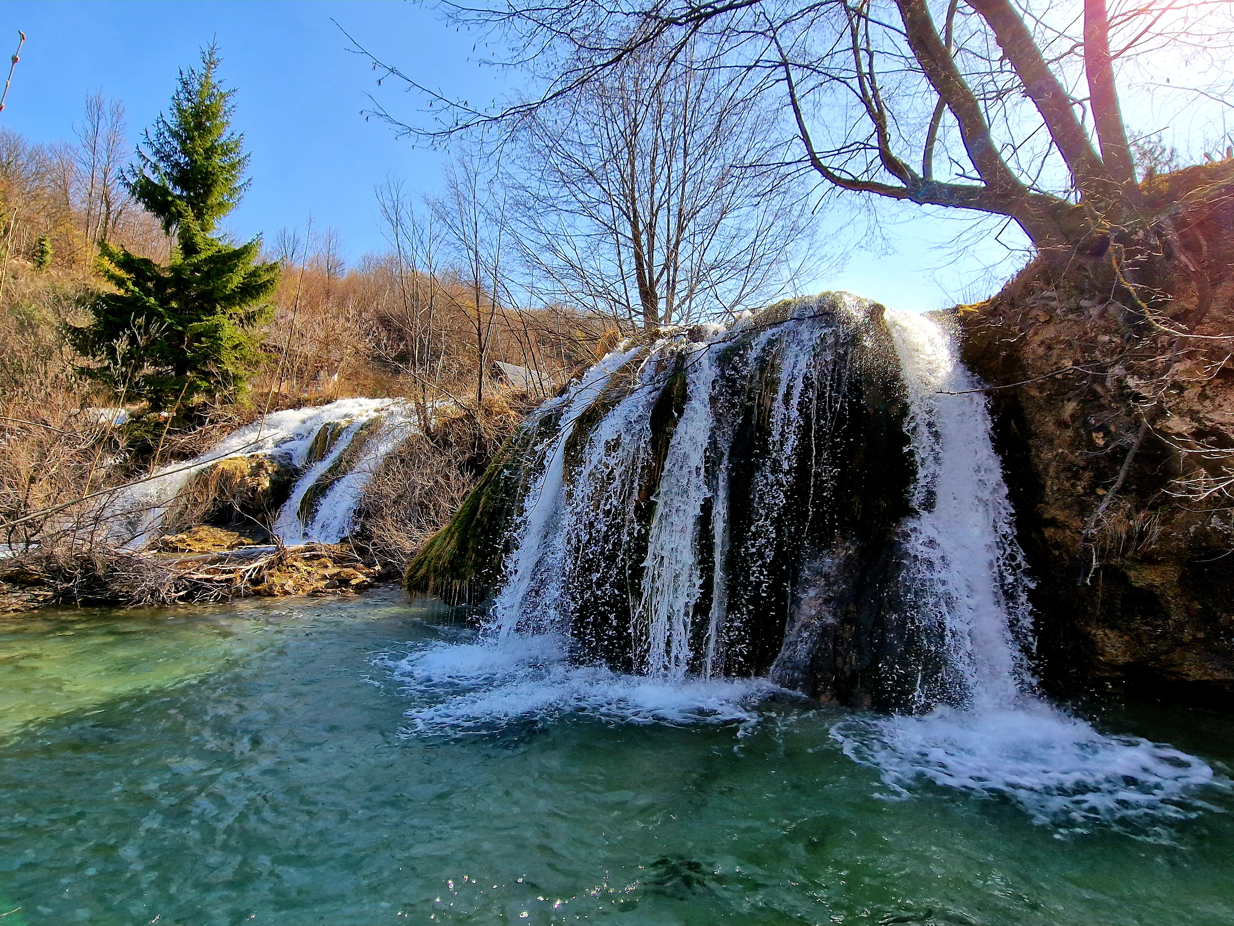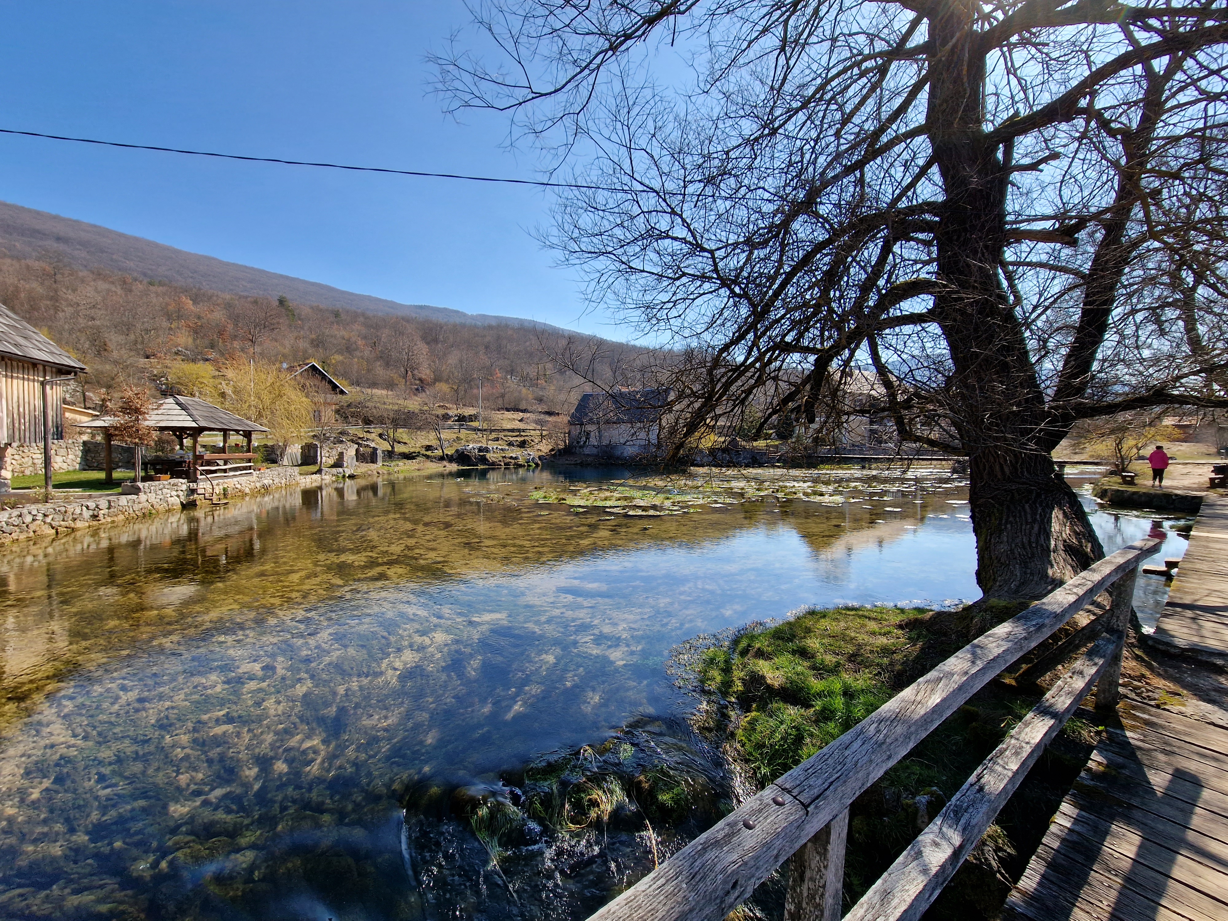 Kako moji godišnji odmori ne mogu biti sačinjeni (samo) od ležanja na kauču i ispijanju kavica na prekrasnom nam gradskom trgu u Samoboru, već uvijek uključuju barem polovinu aktivnih dana i nešto stotina kilometara, tako je započeo i ovaj, marčanski. Prvo sam pomislio da bismo napokon mogli voziti bicikle po Pagu, no kako se približavao termin godišnjeg odmora u posljednja dva tjedna ožujka, a drugi dio je odavno bukiran u Sloveniji (Bled&Bohinj i krug od cca 100 km unaokolo), valjalo je smisliti nešto za početak. Pag je otpao zbog tko zna koje marčanske bure u nizu, a ideja je bila voziti bicikle. I tako, odluka je pala na dvodnevnu kombinaciju nezasitnog gledanja rijeke Gacke i njezinih vrila, prelazak preko prijevoja Homoljac i pogleda na Korenicu i Ličku Plješivicu, spavanje u Jezercu, i onda, danas obilazak Plitvičkih jezera i okolice.