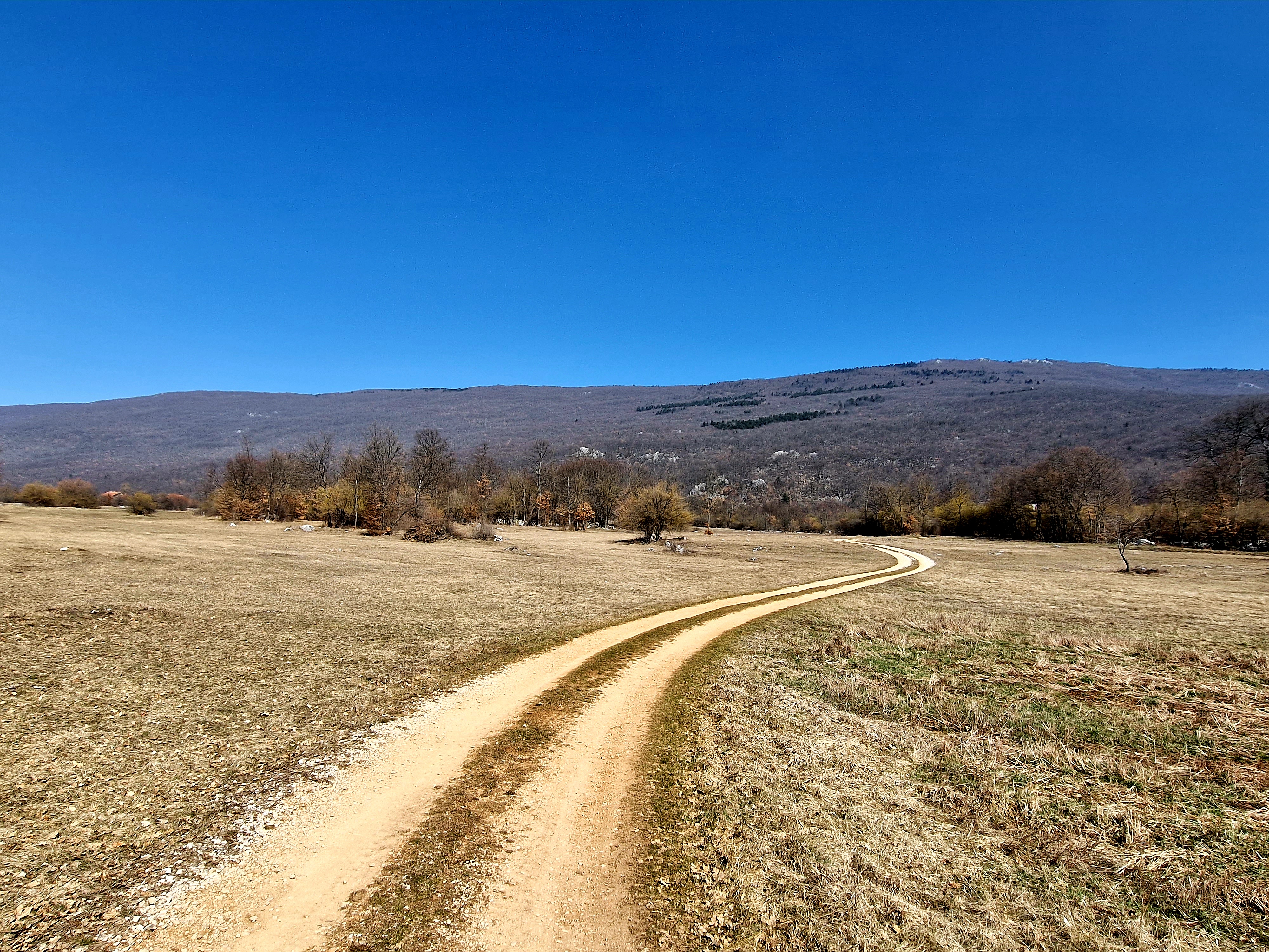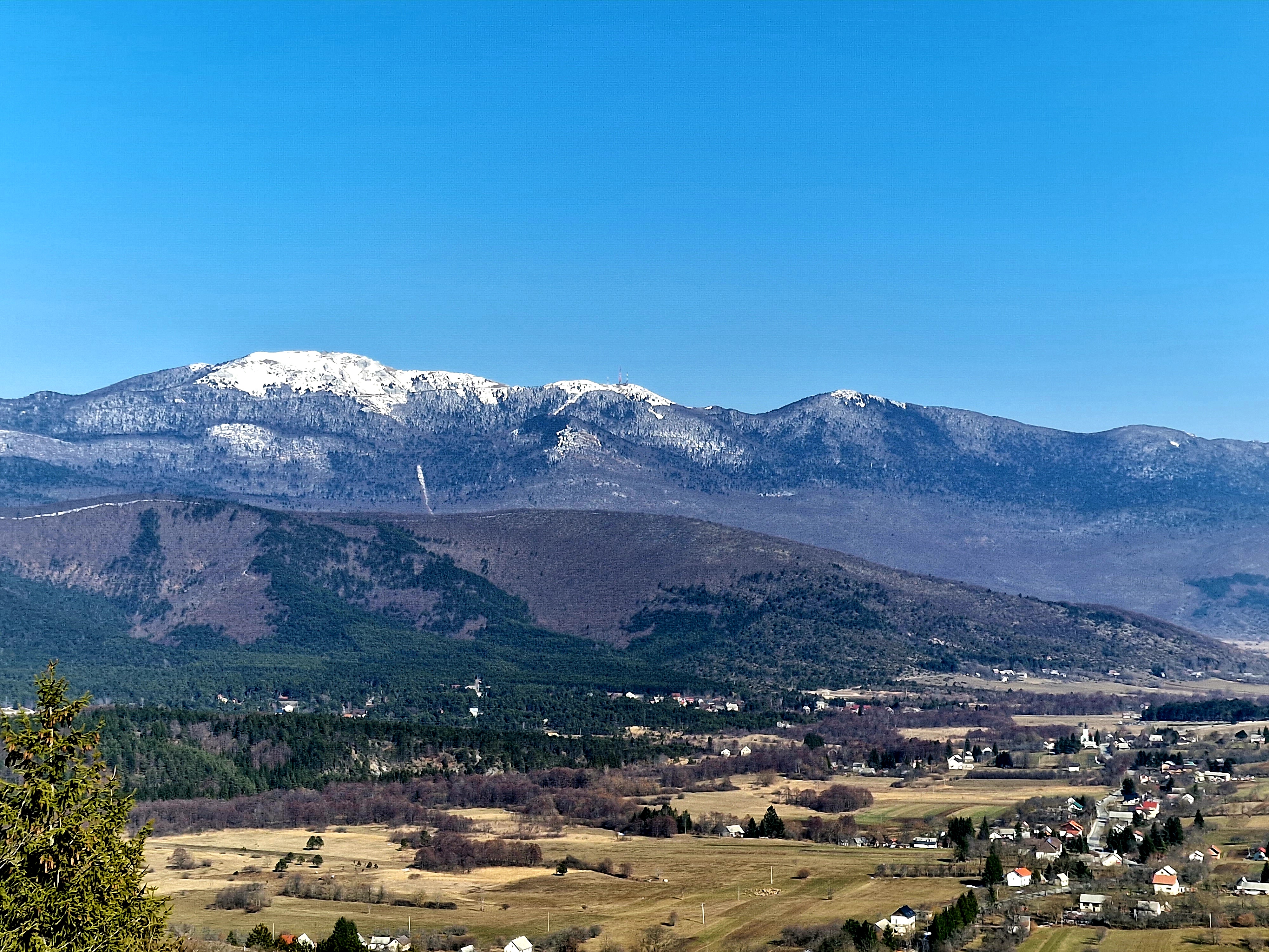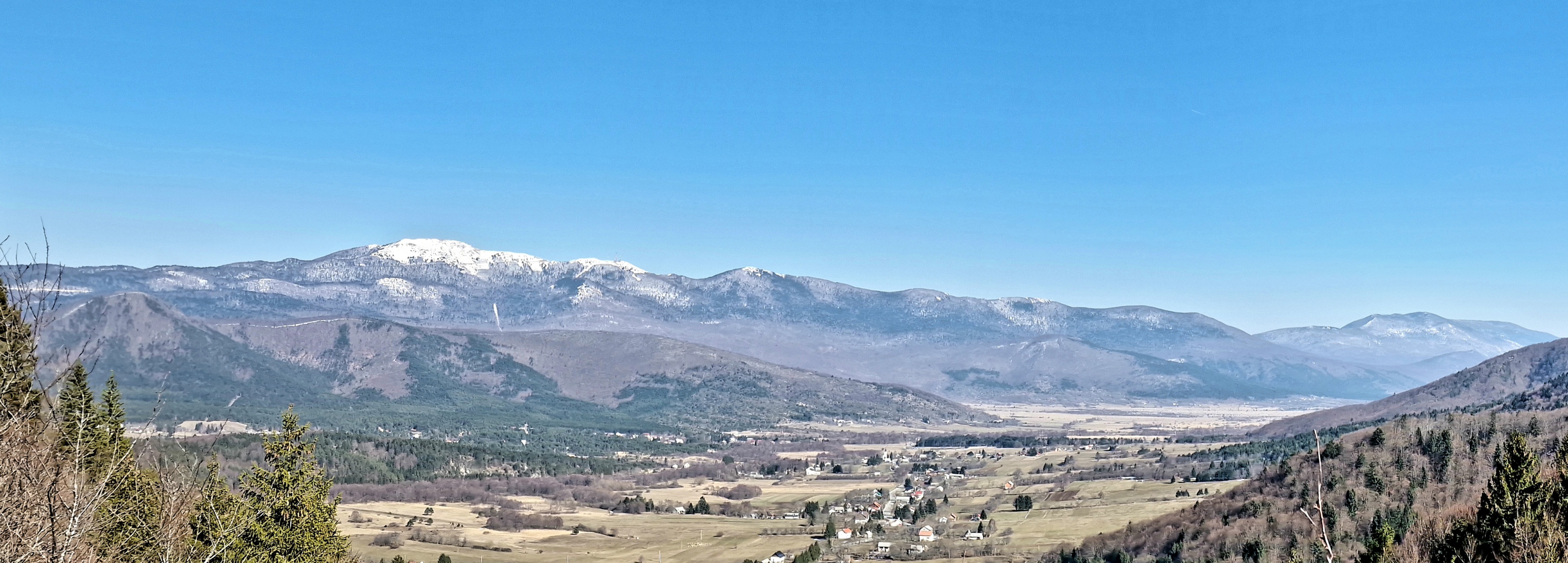 Uputili smo se već opisanom rutom, preko “brega” do koreničke strane i našeg današnjeg highlight-a Plitvičkih jezera, odnosno Jezerca. No, na prijevoju, iznad Gornjeg Babinog Potoka, ima jedno ugibalište, koje znam od prije, stali smo i nastale su gornje fotografije LIčke Plješivice, koja je, kao što se vidi još uvijek pod snijegom. Lička Plješivica je izduženi planinski masiv – greben čiji se manji dio nalazi na granici sa Bosnom i Hercegovinom kod Bihaća. Pruža se u smjeru sjeverozapad-jugoistok u dužini 100 km od Plitvičkih jezera do izvora Zrmanje i dijeli Liku od Pounja. Istočne strmine Plješivice padaju u duboki kanjon gornje Une, a na zapadnoj strani su Koreničko, Lapačko, Kamensko i Krbavsko polje. Na sjeveroistočnoj bosanskoj padini se spuštaju kamene potočne doline Melinovac, Skočaj i Zavalje, te na ličkom jugozapadu kod Udbine, Kozja draga. Najviši vrh na jugozapadnom dijelu je Ozeblin (visina 1657 m, HPO), a na sjeverozapadnom Gola Plješivica (visina 1648 m). Plješivica pripada Dinarskom planinskom sustavu, izgrađena je najvećim dijelom od vapnenca. Kako joj je podloga vodo propusna na njoj vlada oskudica vode, u njezinu podnožju pojavljuje se više vrela ali i ponora, bilo na hrvatskoj ili bosanskoj strani. Najveća prirodna vrijednost Ličke Plješivice su bujne šume. Na nekim mjestima te šume prelaze u prave prašume. Najrazvijenije su šume bukve i jele. Posebno na onim mjestima gdje je pristup veoma otežan. Još jedna važna prirodna osobina Ličke Plješivice je u njezinom biljnom pokrovu. Najznačajniji su vrhovi Ličke Plješivice od sjevera prema jugu: Gola Plješivica (1.648 m) iznad Korenice i Plješivički kamen (1.616 m), pa najviši vrh Ozeblin (1.657 m), Rudilisac (1.611 m) kod Lapca, Kremen (1.591 m) iznad Bruvna, najjužniji Poštak (1.443 m) iznad izvora Zrmanje – Knina i drugi njeni vrhovi niži ispod 1.400 m. Kremen i Poštak neki shvaćaju i kao posebne južnije planine.
