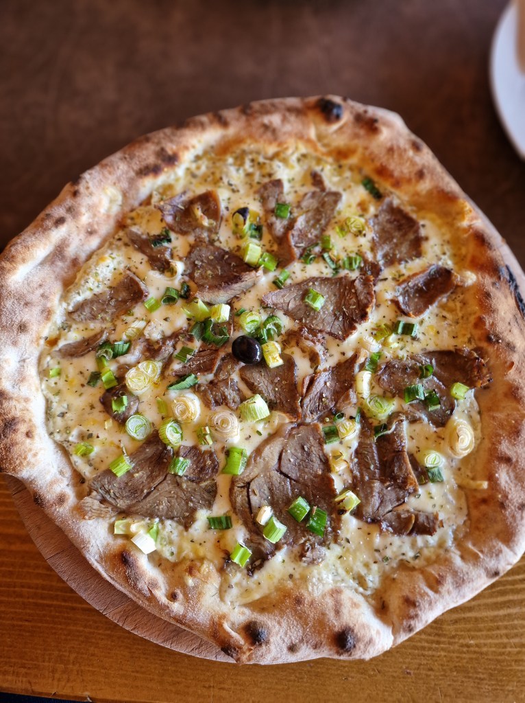 Tatjana je naručila pizzu imena Sinčeranka sa ličkom basom, dimljenom pastrvom i ostalim sastojcima, a ja sam naručio (na fotografiji) Lambizza by Ribafish sa ličkom basom, janjećim butom pečenim u krušnoj peći i ostalim odličnim sastojcima. Kažu gazde: “Mi smo obiteljska pizzeria na Majerovom vrilu u srcu Gacke doline.Radimo pizze i lasagne iz krusne peci po originalnoj Napuljskoj recepturi ali prvi u Hr sa domacim brasnom sa obliznjeg mlina i sastojcima od lokalnih OPG.” Bravo! Kažu vlasnici da vikendom izbace oko 250 pizza zimi, a ljeti i preko 300! Respect i za svaku preporuku! Nismo uspjeli sve pojesti i nekoliko slice-ova je taman dostajalo za večeru u našem apartmanu jučer navečer.