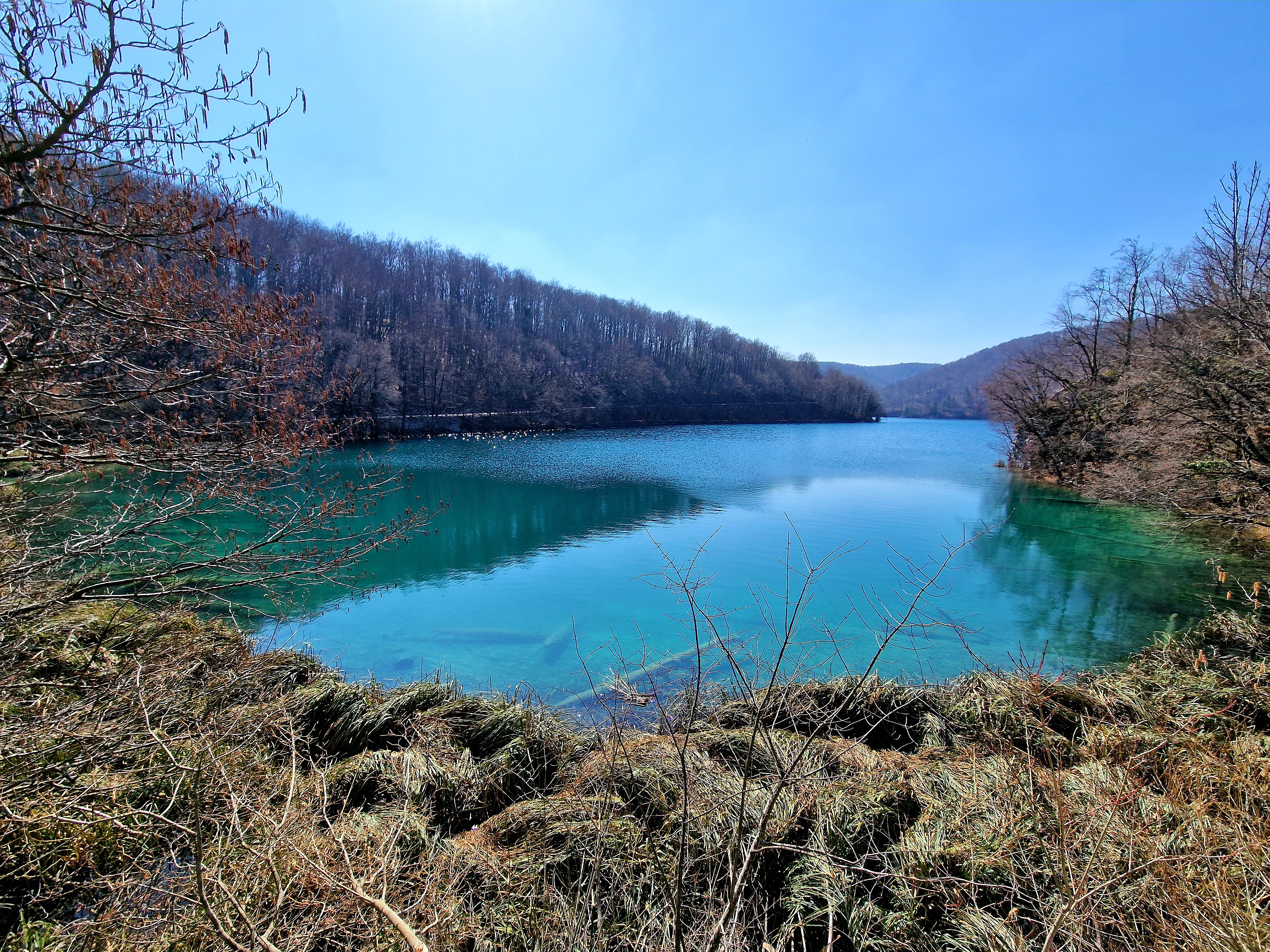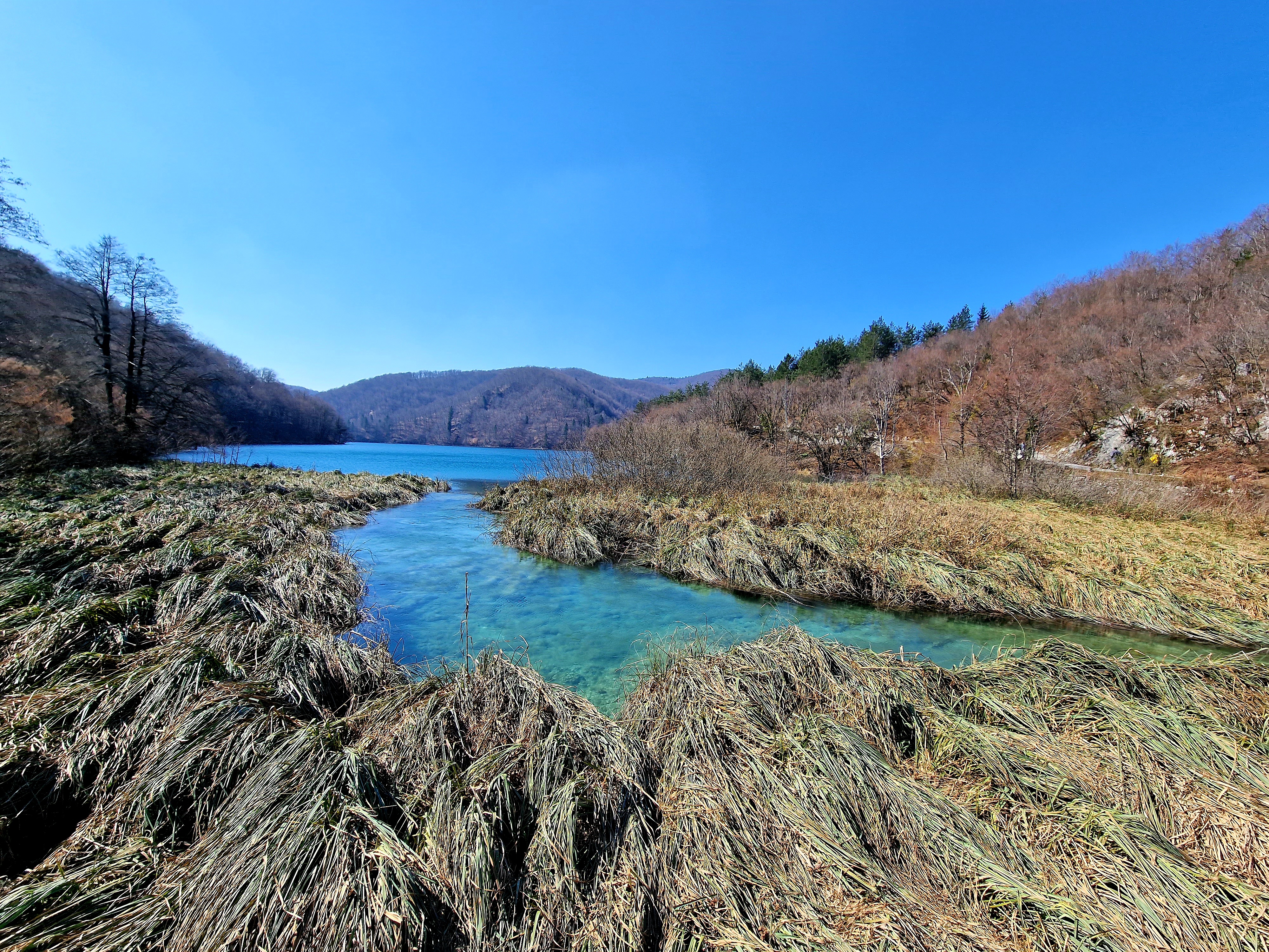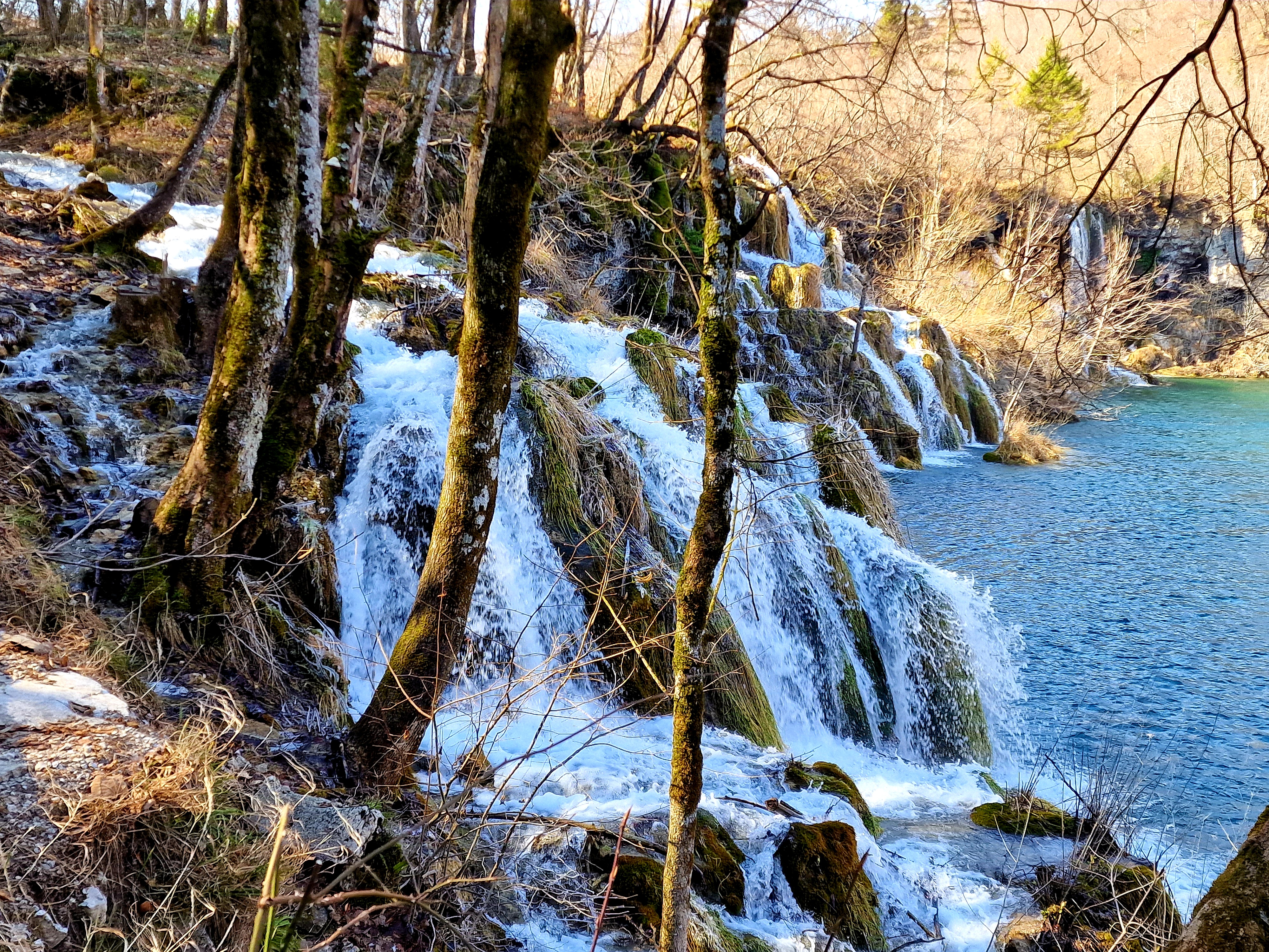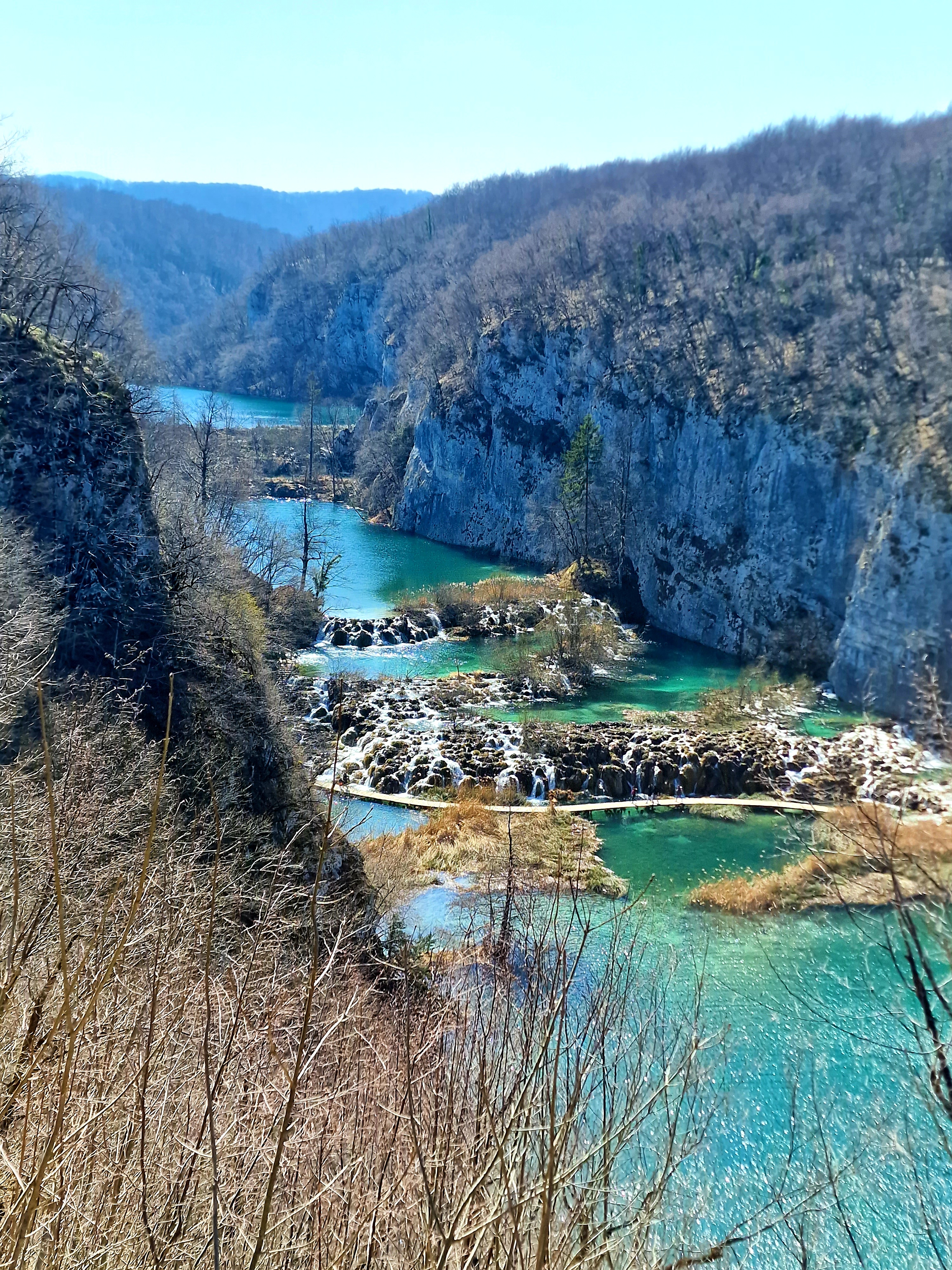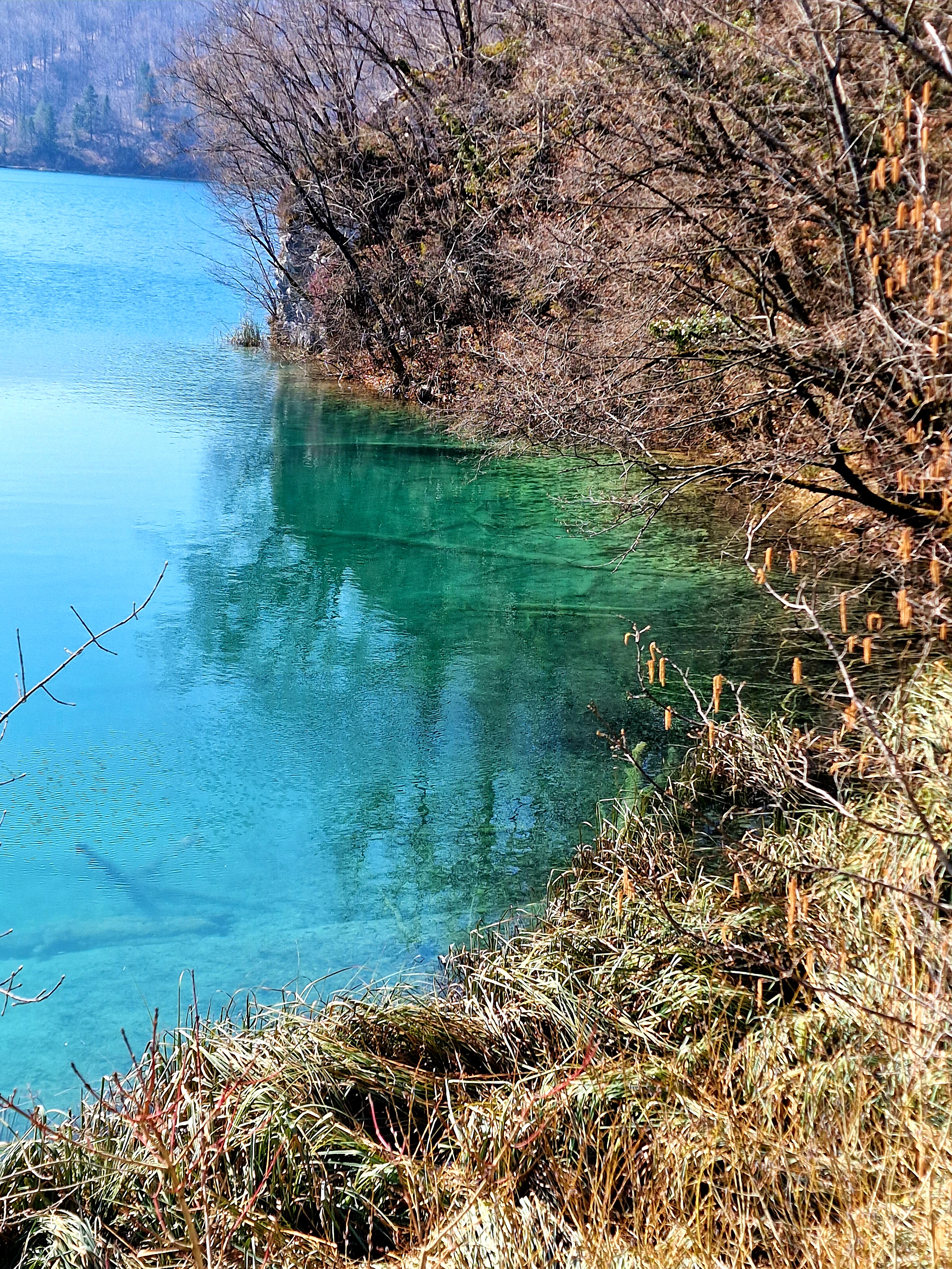 S obzirom da smo imali za obići otvorenih pet jezera, četiri iz donjeg toka, i Kozjak koji je najveći i posljednji od gornjih jezera koja su barem do 1. travnja zatvorena za posjetitelje, na gornjoj fotografiji se vidi malo jezero Novakovića Brod, koje je drugo najmanje, poslije najmanjeg Velikog Burgeta, i dubine svega 3 metra. Do njega se vidi, dostupno, Jezero Kaluđerovac, na 505 mnv, površine 2,1 ha i dubine do 13 metara. između njega i slapova prema Novakovića Brodu, postoji prekrasna šetnica drvenim oblucima i put prema Velikom Slapu.