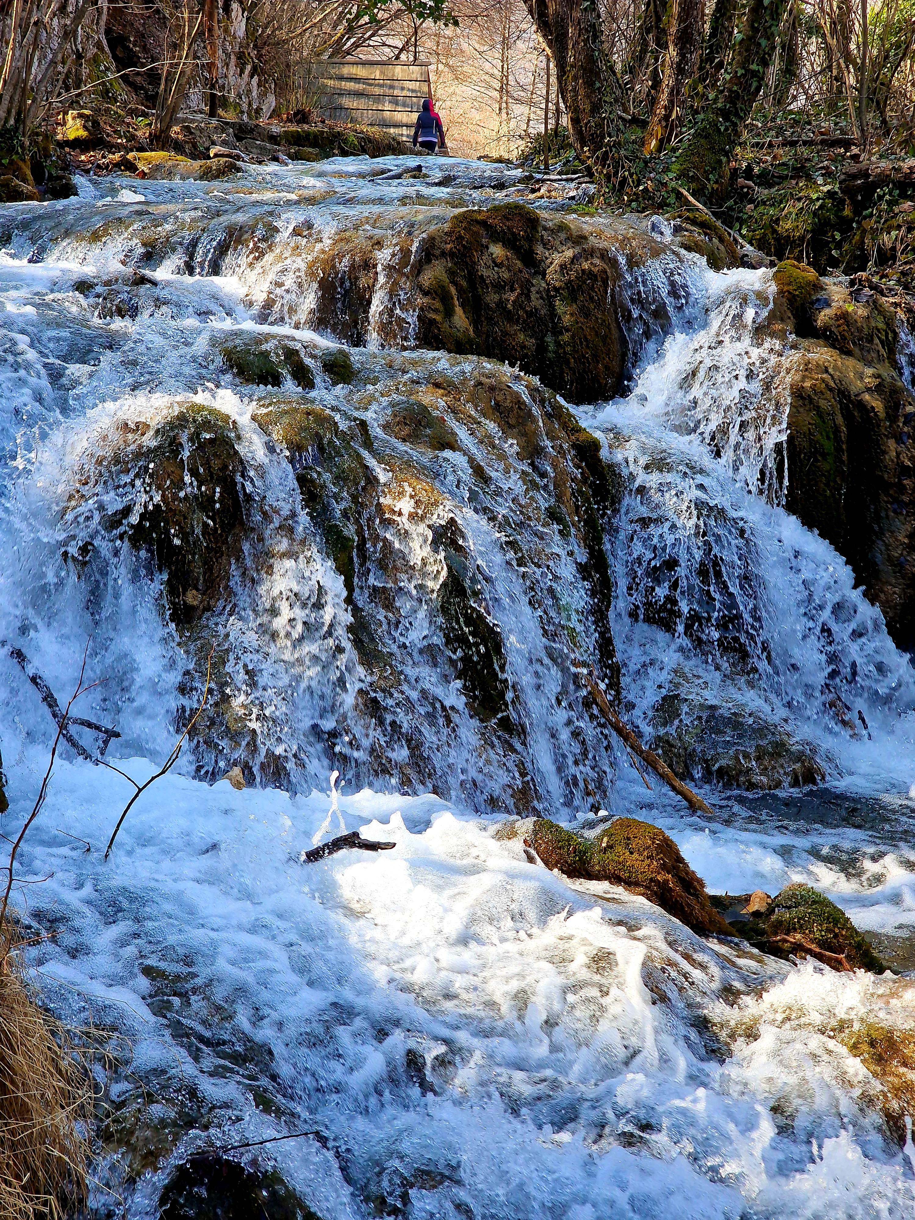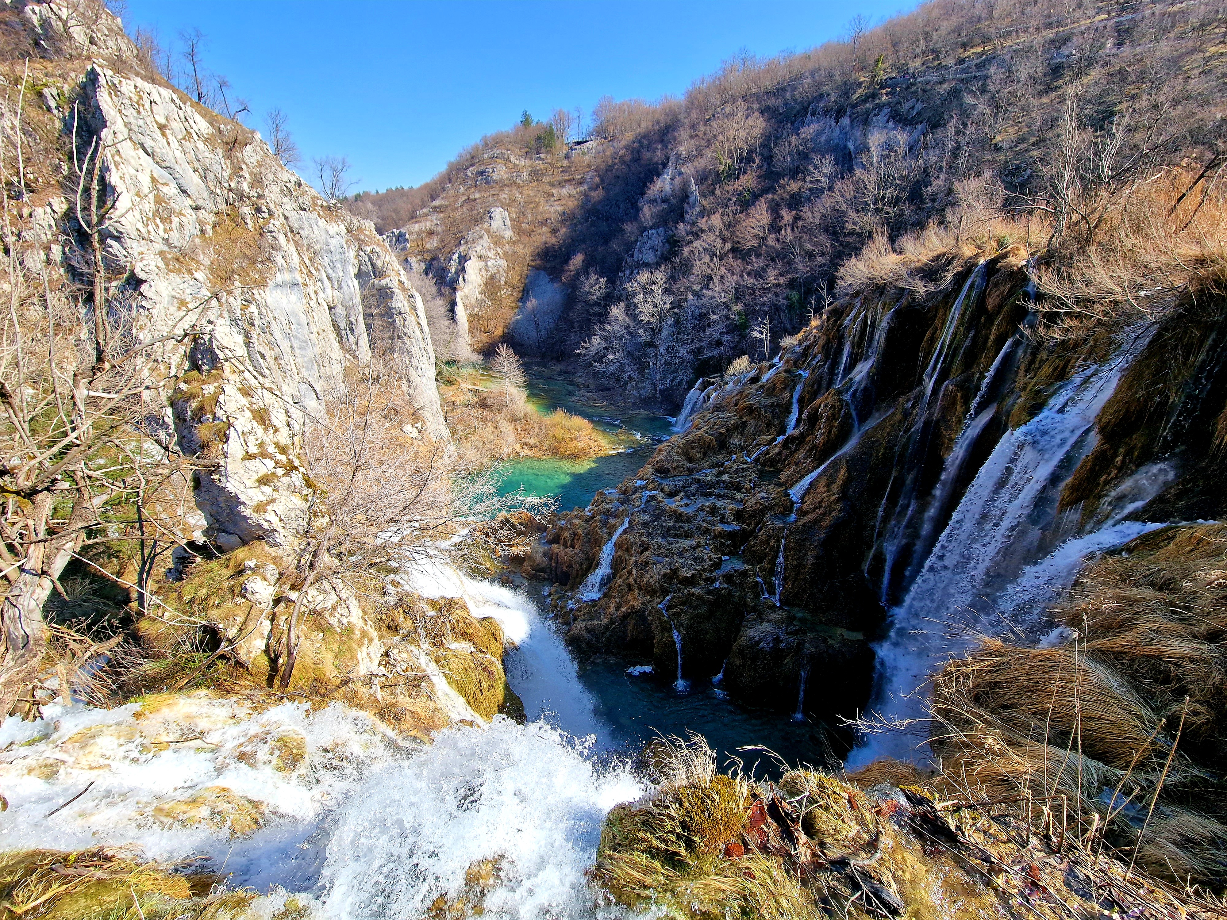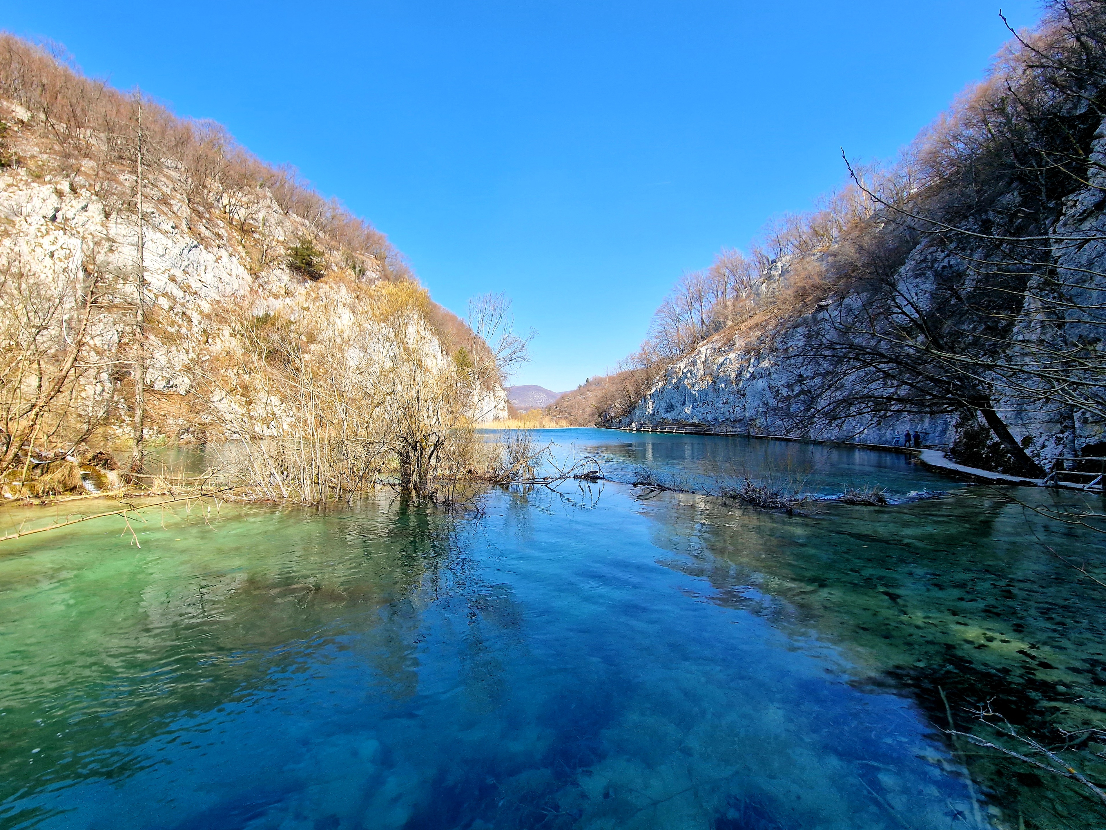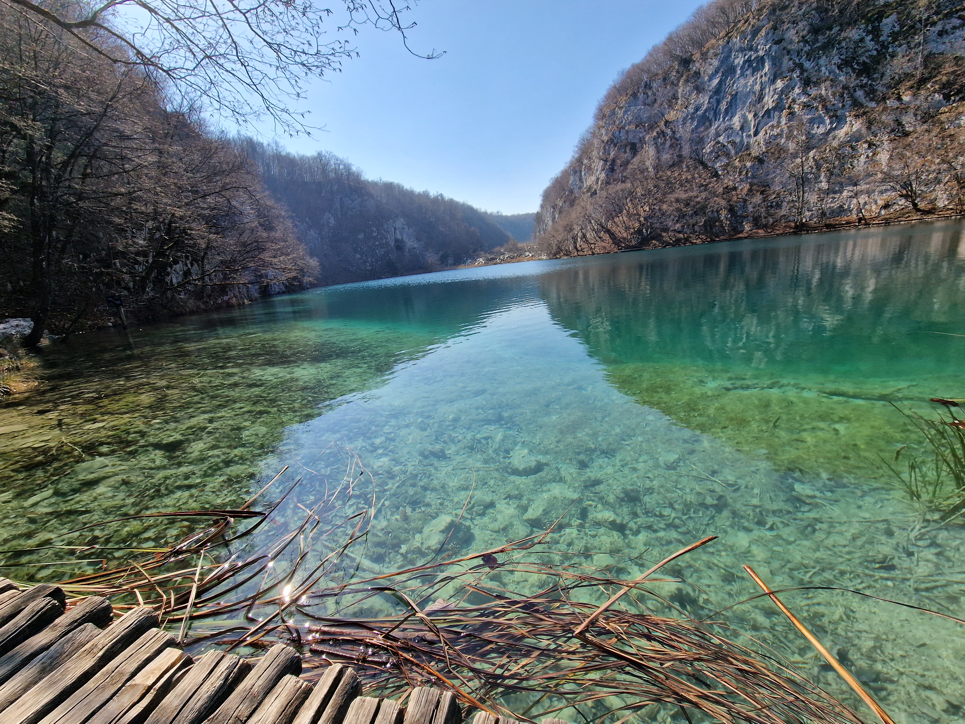 S obzirom da smo imali za obići otvorenih pet jezera, četiri iz donjeg toka, i Kozjak koji je najveći i posljednji od gornjih jezera koja su barem do 1. travnja zatvorena za posjetitelje, na gornjoj fotografiji se vidi malo jezero Novakovića Brod, koje je drugo najmanje, poslije najmanjeg Velikog Burgeta, i dubine svega 3 metra. Do njega se vidi, dostupno, Jezero Kaluđerovac, na 505 mnv, površine 2,1 ha i dubine do 13 metara. između njega i slapova prema Novakovića Brodu, postoji prekrasna šetnica drvenim oblucima i put prema Velikom Slapu.