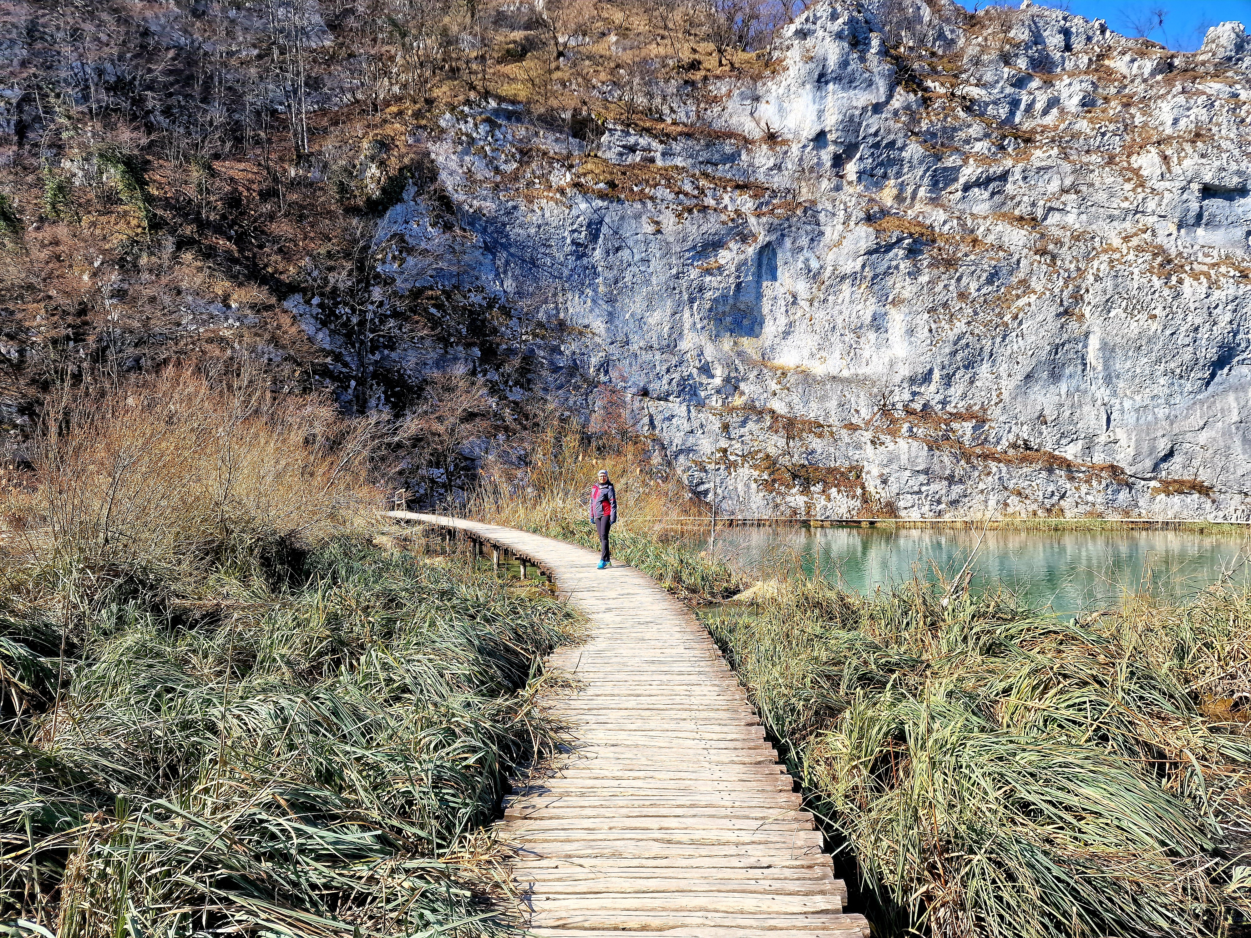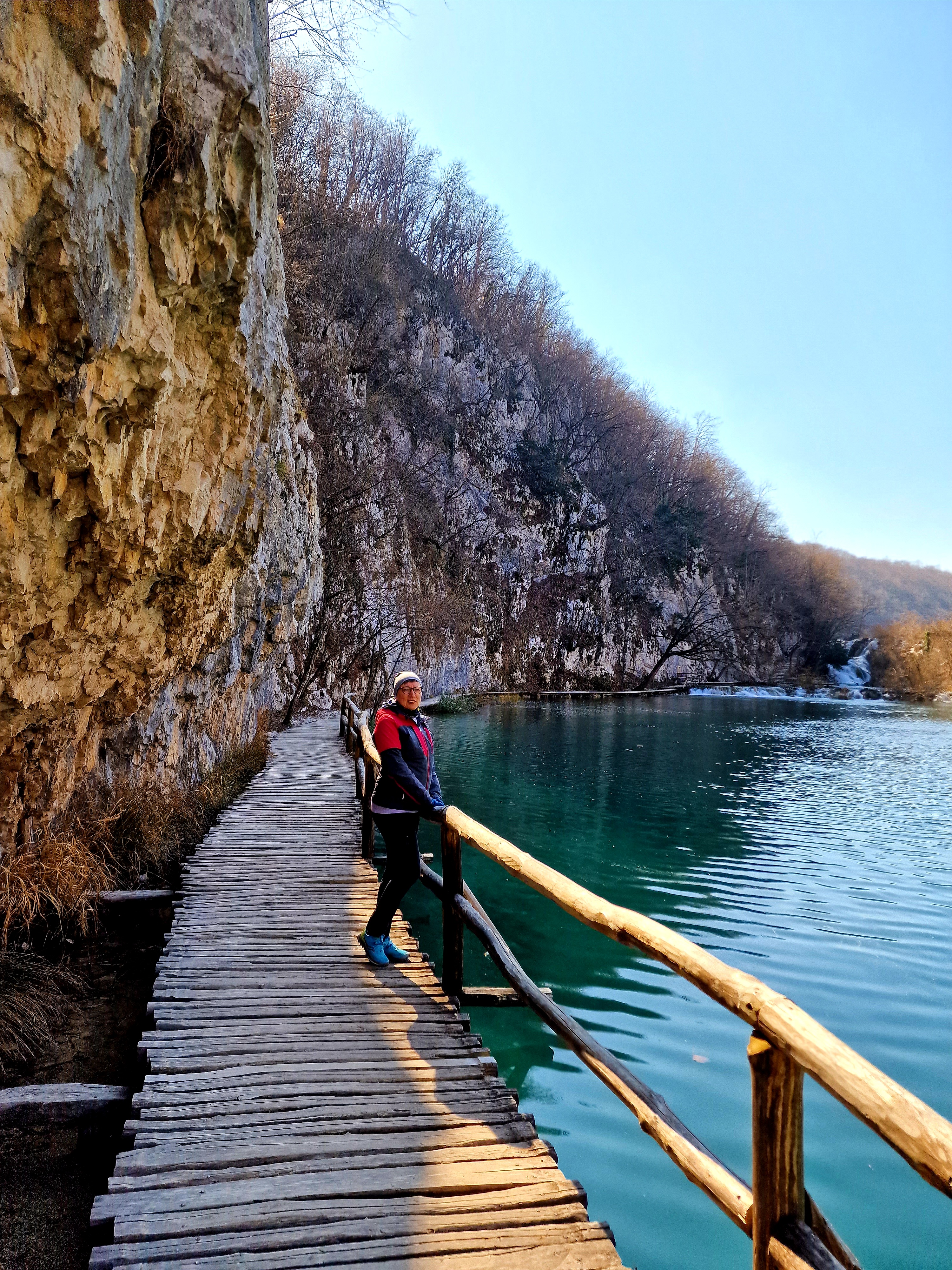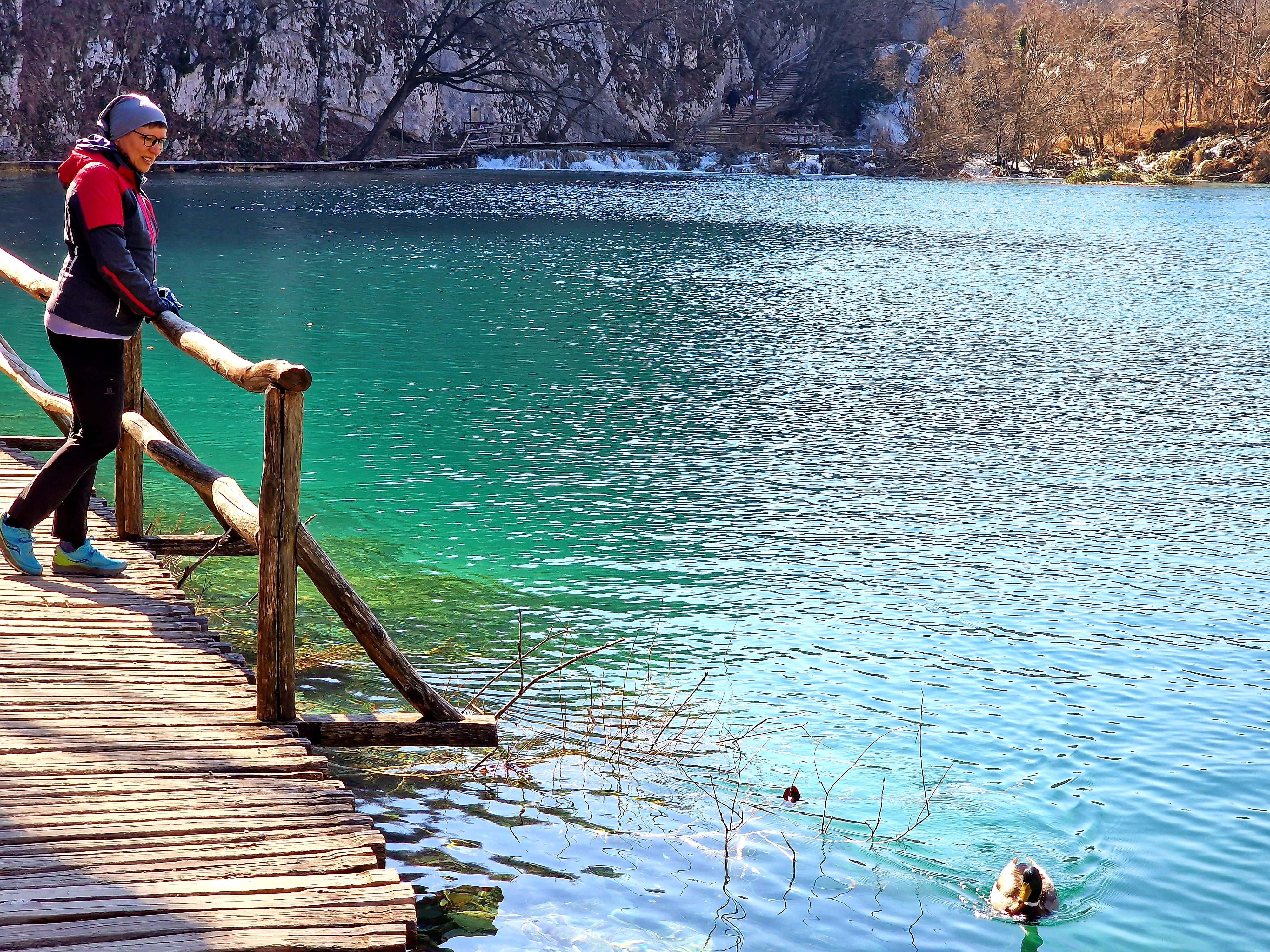 Kako smo stigli u apartman već oko 15:10, bilo je dovoljno vremena da odemo do obližnjeg mjesta Mukinje, gdje se nalazi skijalište. Još od 80-ih godina prošloga stoljeća, u zimsku turističku ponudu Nacionalnog parka Plitvička jezera uključeno je i skijanje. Skijalište je smješteno uz državnu cestu D429, u naselju Mukinje. Udaljeno je oko 2,5 km od Ulaza 2 i hotelskog kompleksa Nacionalnog parka Plitvička jezera, odnosno oko 5 km od Ulaza 1 i poznatog restorana Lička kuća, u smjeru jadranske obale. Skijalište raspolaže s jednom vučnicom kapaciteta 400 skijaša na sat, koja ih vuče na proplanak, na oko 700 m n. v. odakle se skijaši niz nekoliko staza spuštaju u podnožje, na oko 640 m n. v. Dužine staza iznose približno 400 m. Osim skijanja i bordanja moguće je i sanjkati se niz padinu na koju se sanjkaši penju sami. Naravno, snijega nije bilo, no mi smo prošetali od hotelskog i apartmanskog kompleksa, prema Jezeru Kozjak i stanici P1, električnih brodova koji voze po ovom jezeru koje spaja donja i gornja jezera i najveće je po površini. Nije bilo puno ljudi, s obzirom da smo sišli dolje oko 16 sati, kada je već preporučeni kraj šetnji i aktivnosti po parku, koji smo zapravo posjetili danas.