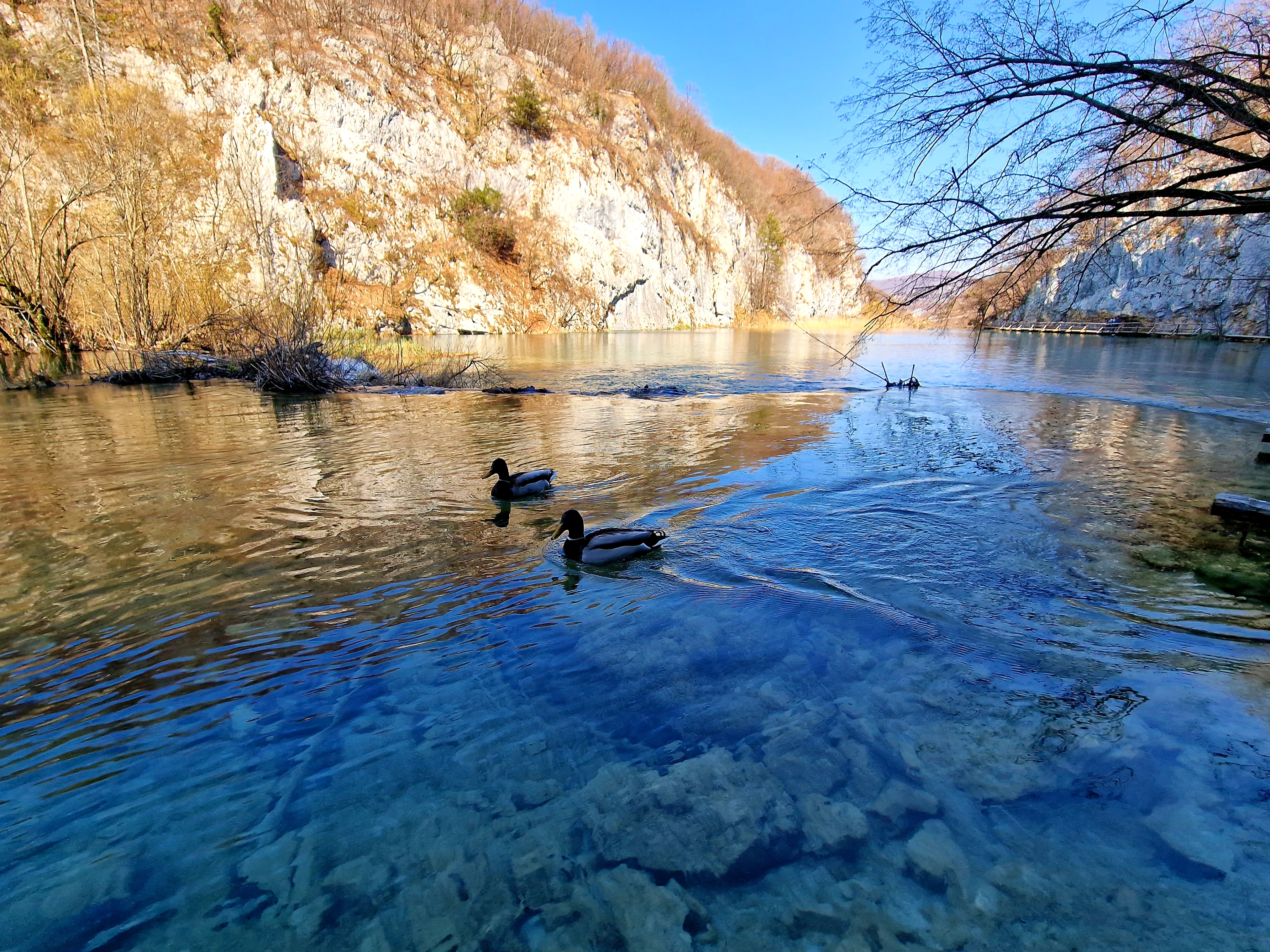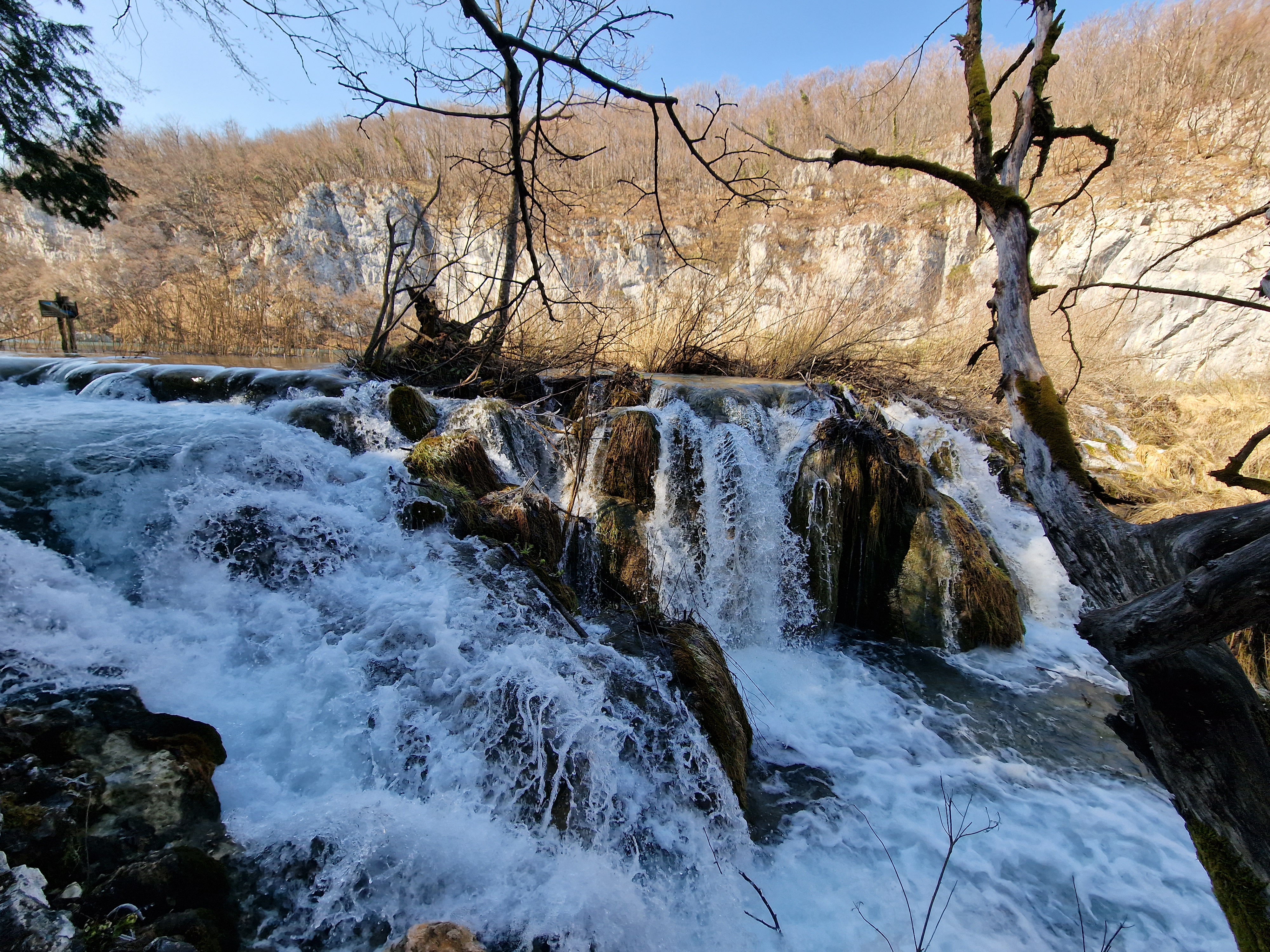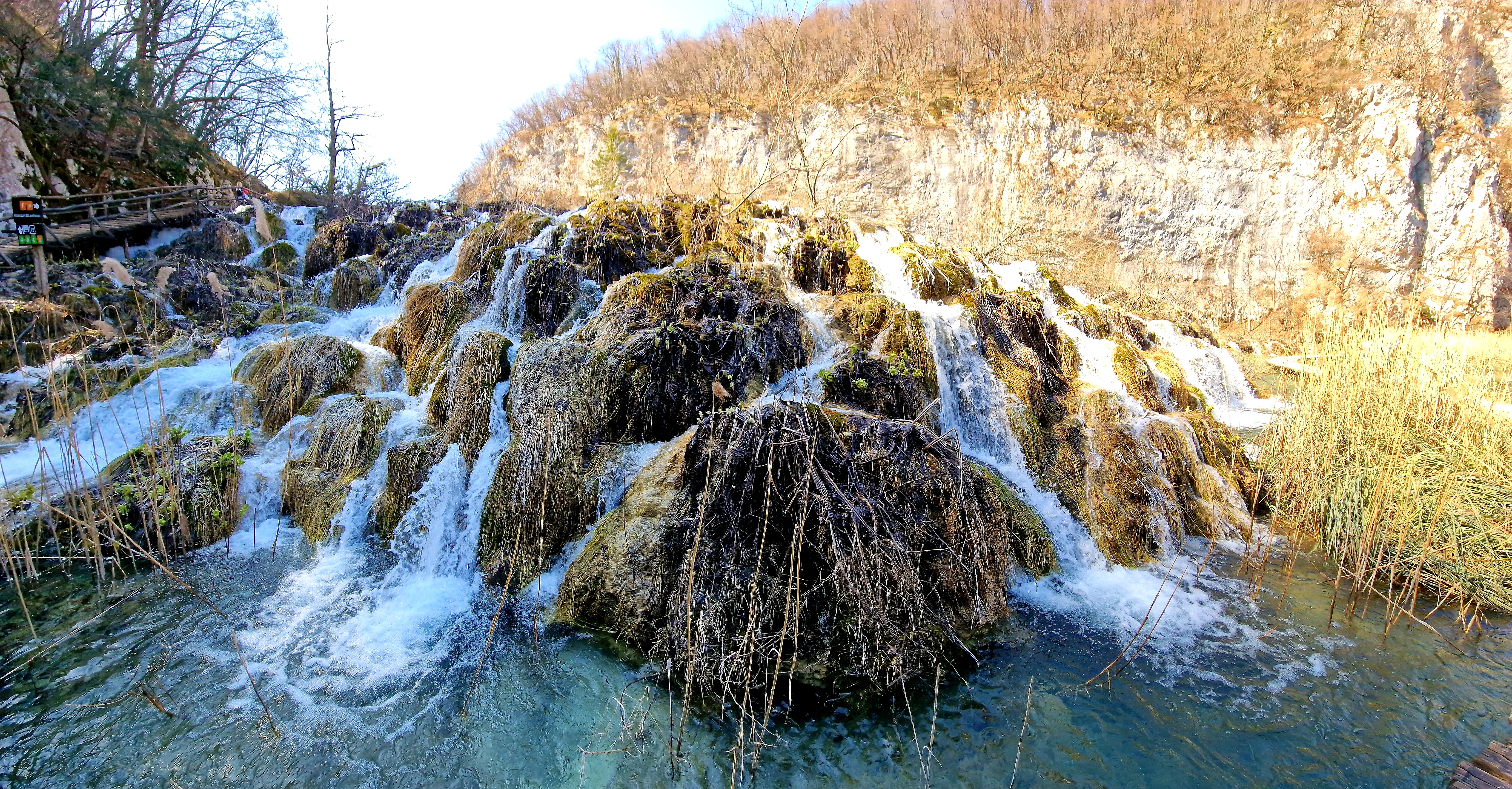 Kako smo stigli u apartman već oko 15:10, bilo je dovoljno vremena da odemo do obližnjeg mjesta Mukinje, gdje se nalazi skijalište. Još od 80-ih godina prošloga stoljeća, u zimsku turističku ponudu Nacionalnog parka Plitvička jezera uključeno je i skijanje. Skijalište je smješteno uz državnu cestu D429, u naselju Mukinje. Udaljeno je oko 2,5 km od Ulaza 2 i hotelskog kompleksa Nacionalnog parka Plitvička jezera, odnosno oko 5 km od Ulaza 1 i poznatog restorana Lička kuća, u smjeru jadranske obale. Skijalište raspolaže s jednom vučnicom kapaciteta 400 skijaša na sat, koja ih vuče na proplanak, na oko 700 m n. v. odakle se skijaši niz nekoliko staza spuštaju u podnožje, na oko 640 m n. v. Dužine staza iznose približno 400 m. Osim skijanja i bordanja moguće je i sanjkati se niz padinu na koju se sanjkaši penju sami. Naravno, snijega nije bilo, no mi smo prošetali od hotelskog i apartmanskog kompleksa, prema Jezeru Kozjak i stanici P1, električnih brodova koji voze po ovom jezeru koje spaja donja i gornja jezera i najveće je po površini. Nije bilo puno ljudi, s obzirom da smo sišli dolje oko 16 sati, kada je već preporučeni kraj šetnji i aktivnosti po parku, koji smo zapravo posjetili danas.