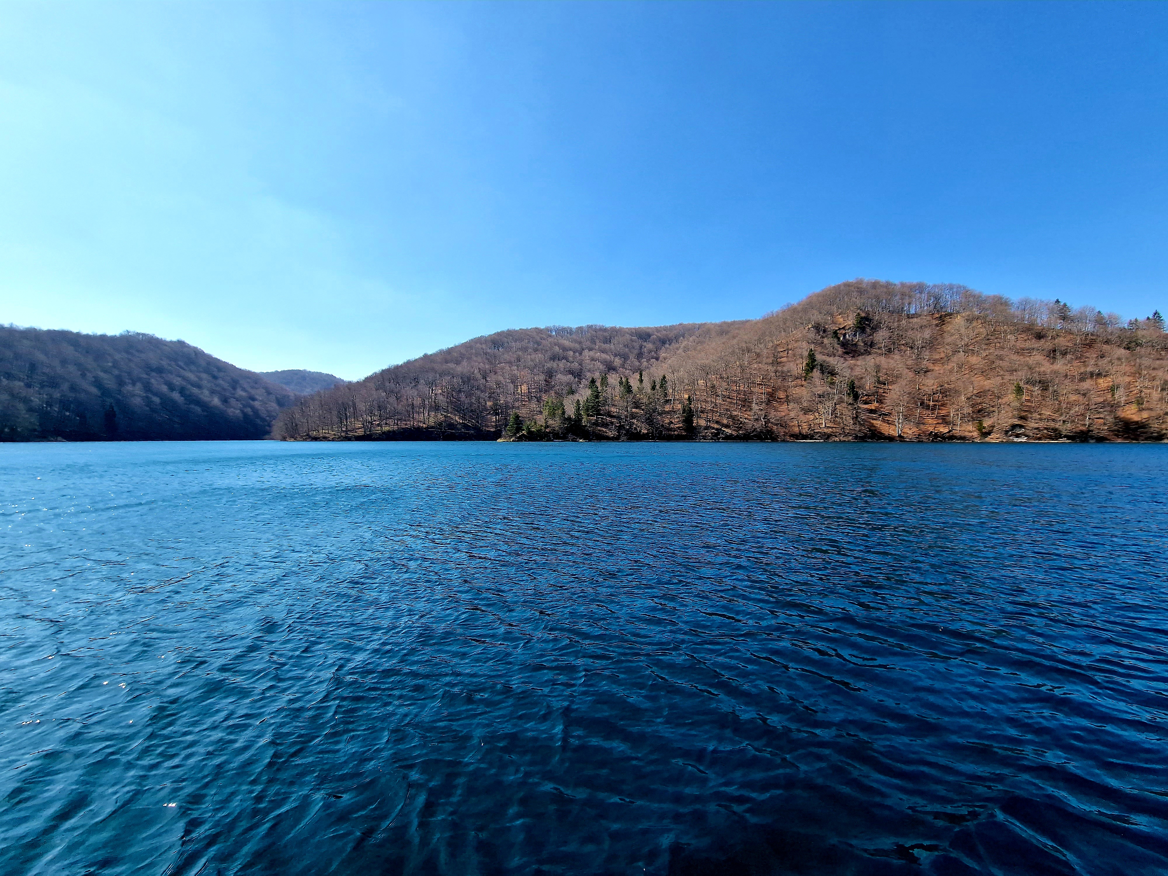 I tako smo, malo po malo, za nešto više od sat vremena lagane šetnje i fotografiranja, prešli oko 3,5 kilometra i ugledali pristanište P3, sa kojeg polaze električni brodovi kapaciteta 100 putnika, kada se popune. Voze cijelo vrijeme po najvećem od jezera, Jezeru Kozjak, površine 81,5 ha i ujedno i najdubljem, sa 46 metara dubine. Nisu se zaustavljali na stanici P2, već su nas dovezli na P1, gdje smo bili već jučer u šetnji.