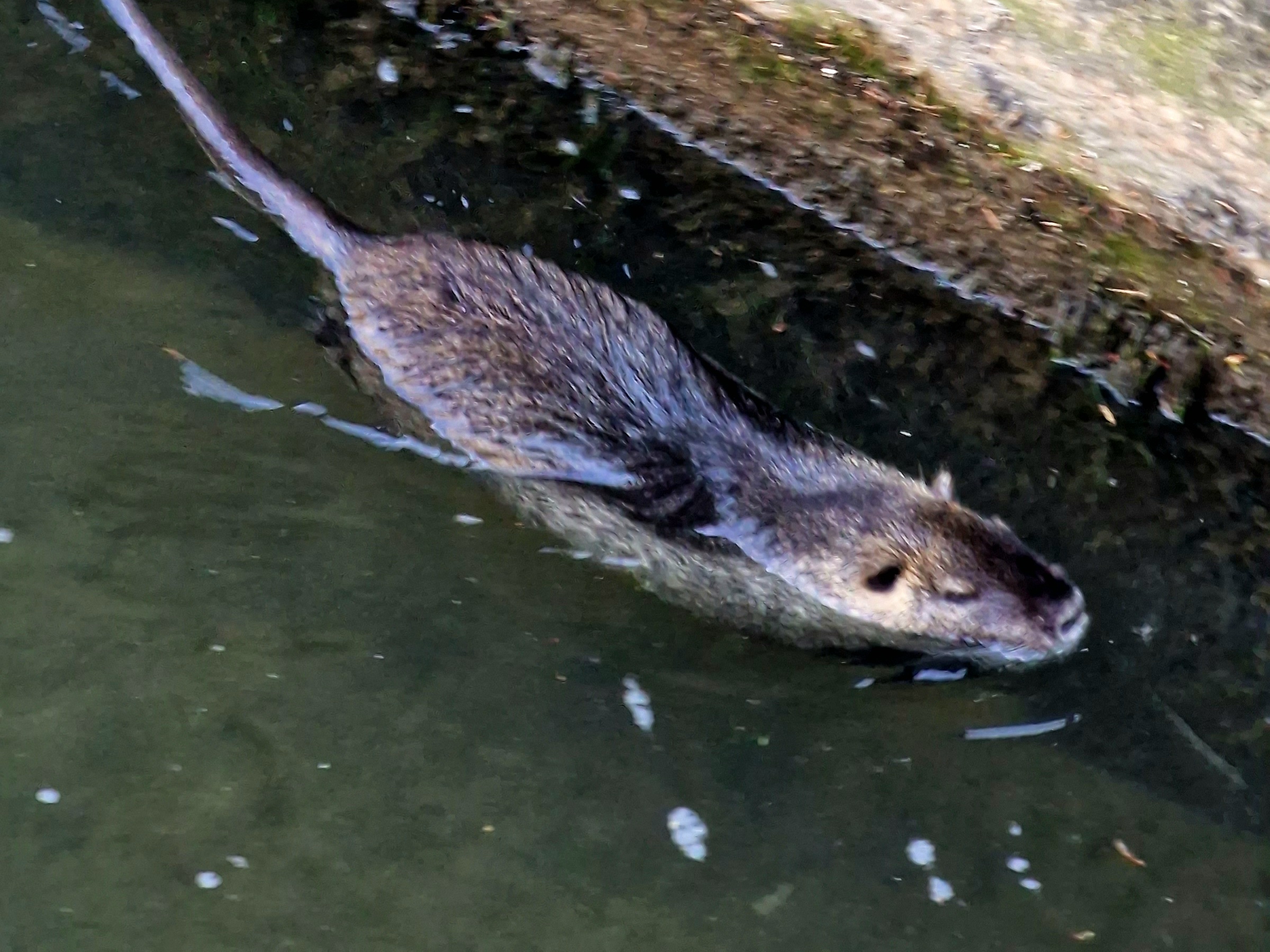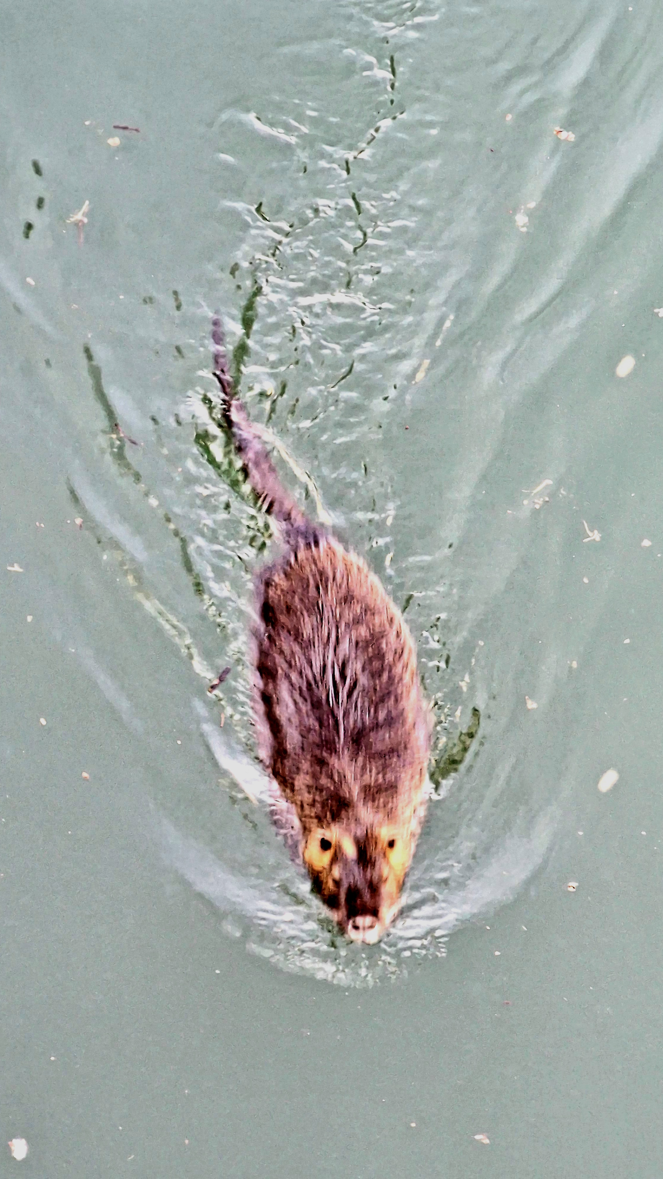 Sada ću malo prestati o zgradama, arhitektima i Ljubljani, jer prelazeći prvi puta Zmajski most, u Ljubljanici smo ugledali nešto ogromno kako pliva. Prvo smo pomislili da je divovski štakor, no nismo htjeli u to povjerovati, a i baš nitko nije reagirao vidjevši to poveće plivajuće stvorenje. S obzirom da nema raslinja niti drveća u vodi, nije mogao biti niti dabar! I onda je moja Tatjana otišla pitati ribiča kojem je to proplivalo pored plovka, a on se nije niti trznuo, na ušću kanala Ljubljanice, u Ljubljanicu. To je bila nutrija!