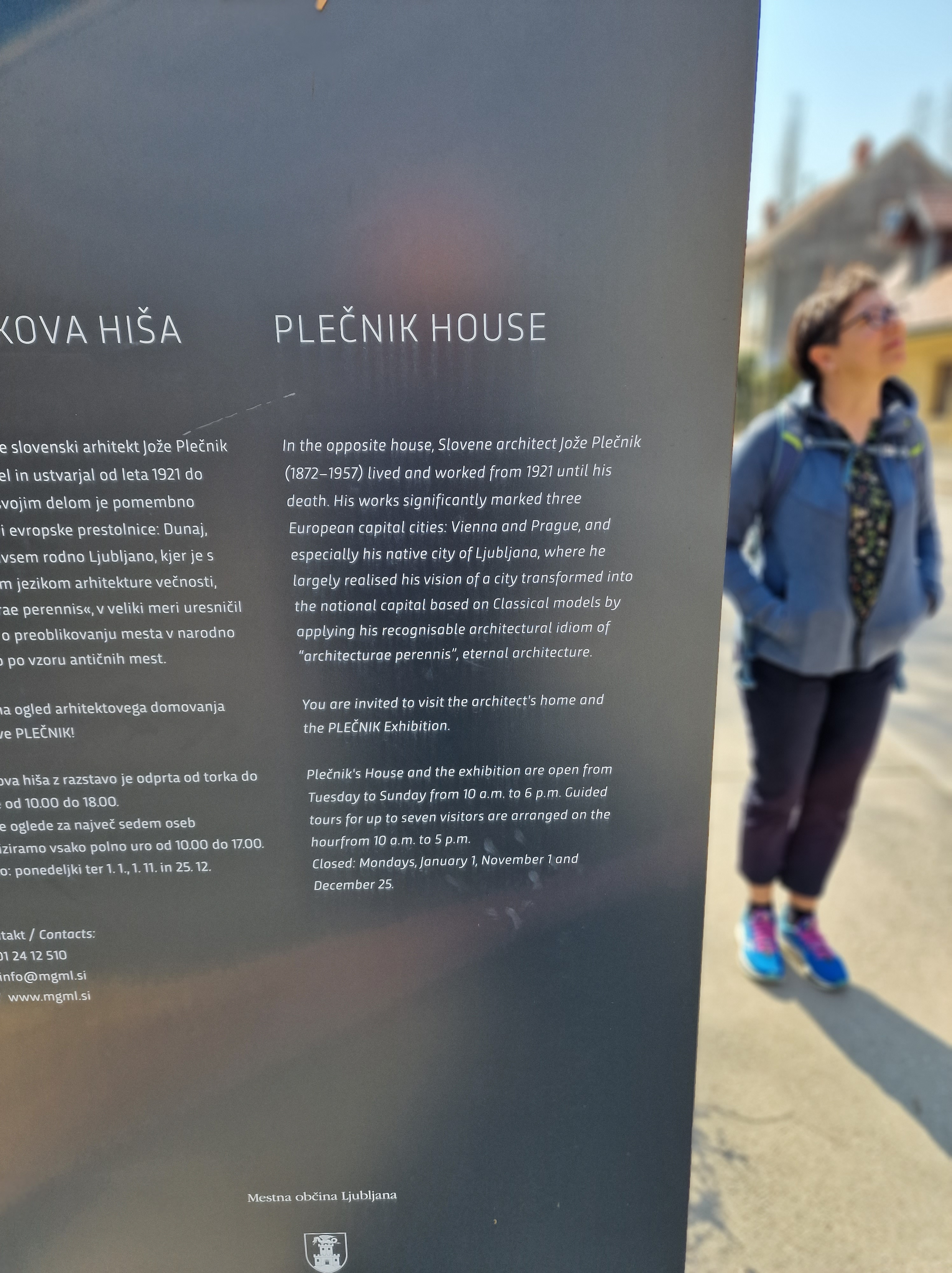Već sam nekoliko puta spomenuo Jožeta Plečnika, jer u planu je bio i obilazak njegove kuće, s obzirom na njegovu važnost za modernu Ljubljanu, no baš ponedjeljkom je kuća zatvorena za posjete. Jože Plečnik (23. siječnja 1872. – 7. siječnja 1957.) bio je slovenski arhitekt koji je imao veliki utjecaj na modernu arhitekturu Beča, Praga i Ljubljane, glavnog grada Slovenije, ponajviše projektirajući kultni Tromost i zgradu Slovenske nacionalne i sveučilišne knjižnice, kao i nasipe uz rijeku Ljubljanicu, zgrade ljubljanske centralne tržnice, ljubljansko groblje, parkove, trgove itd. Njegov arhitektonski otisak na Ljubljani uspoređen je s utjecajem Antoni Gaudí je imao na Barceloni. Njegov stil povezuje se sa stilom arhitekture bečke secesije. Osim u Ljubljani, radio je u Beču, Beogradu i na Praškom dvorcu. Utjecao je na avangardni češki kubizam. Također je jedan od osnivača Ljubljanske arhitektonske škole, a pridružio joj se na poziv Ivana Vurnika, još jednog poznatog ljubljanskog arhitekta.