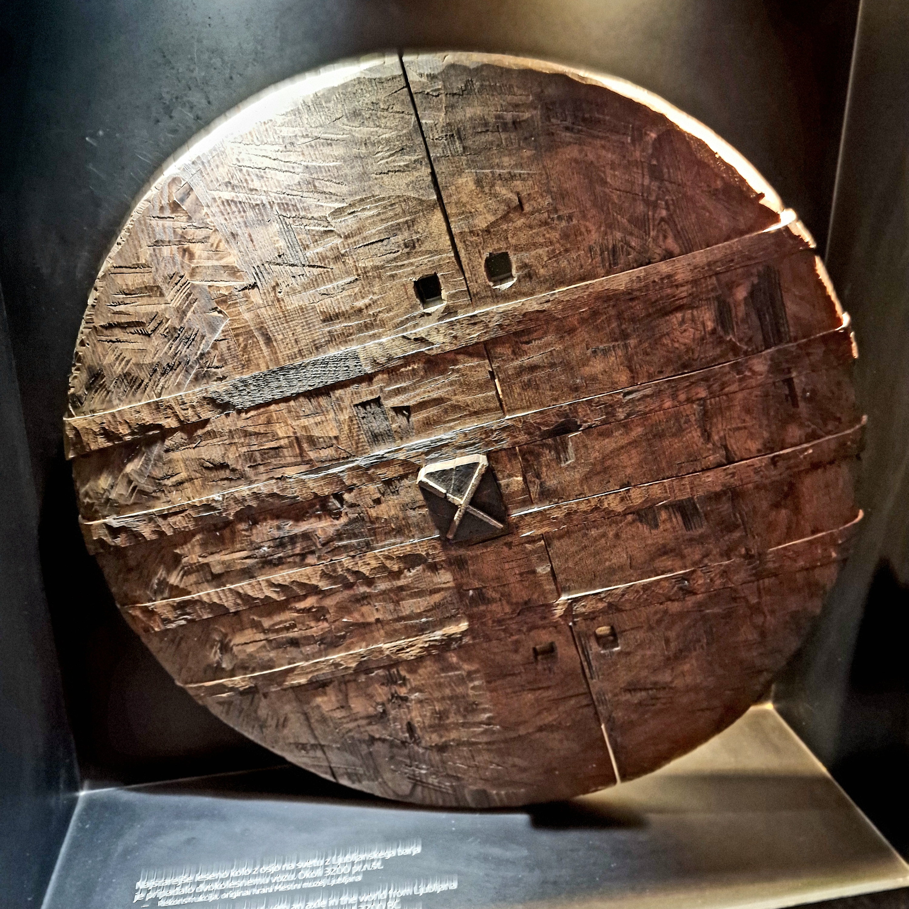 Ljubljanski drveni kotač je najstariji drveni kotač s osovinom na svijetu. Otkriven je 2002. prilikom provedbe projekta uzorkovanja drveta na lokaciji Stare gmajne pri Vrhniki, koji je vodio dr. Anton Veluščak (Slovenska akademija znanosti i umjetnosti). U jednom od drenažnih jarkova nalazila su se, uz brojne nalaze, dva drvena čamca i ostaci drvenog kotača, koji je bio zbog prethodnog produbljivanja jarka vrlo oštećen. Na mjestu nalaza jarak je proširen te je otkrivena i osovina, zbog koje se smatra da je kotač pripadao kolicima na dva kotača. Kotač je sastavljen od dvije jasenove ploče spojene hrastovim klinovima, a na sredini se nalazi pravokutno otvorenje (što pokazuje da se kotač okretao zajedno s osovinom). Promjer kotača iznosi 72 cm, a debljina 5 cm, dok je osovina bila duljine 124 cm. Kotač je datiran pomoću stratigrafskih podataka, dendrokronoloških istraživanja i ugljikom-14 (laboratorij VERA u Beču). Dobivena starost iznosi 5150 godina. Krajem 2008. kotač je odnesen u konzervatorsku radionicu Römisch-Germanisches Zentralmuseuma u Mainzu, gdje je provedena konzervacija melaminskom metodom. Po završetku konzervacije, 18. prosinca 2012., kotač je vraćen u Mestni muzej u Ljubljani.