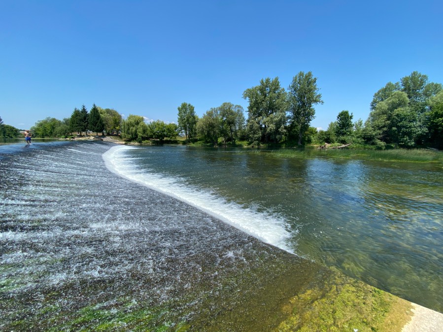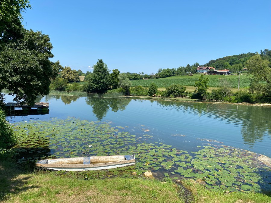 Lagano ravnicom dalje do jedinog makadama danas, 2 km dugim pristupnim putem van glavne ceste, da bismo vidjeli ušće Korane u Kupu, prekrasna oaza i ugodno topla rijeka.