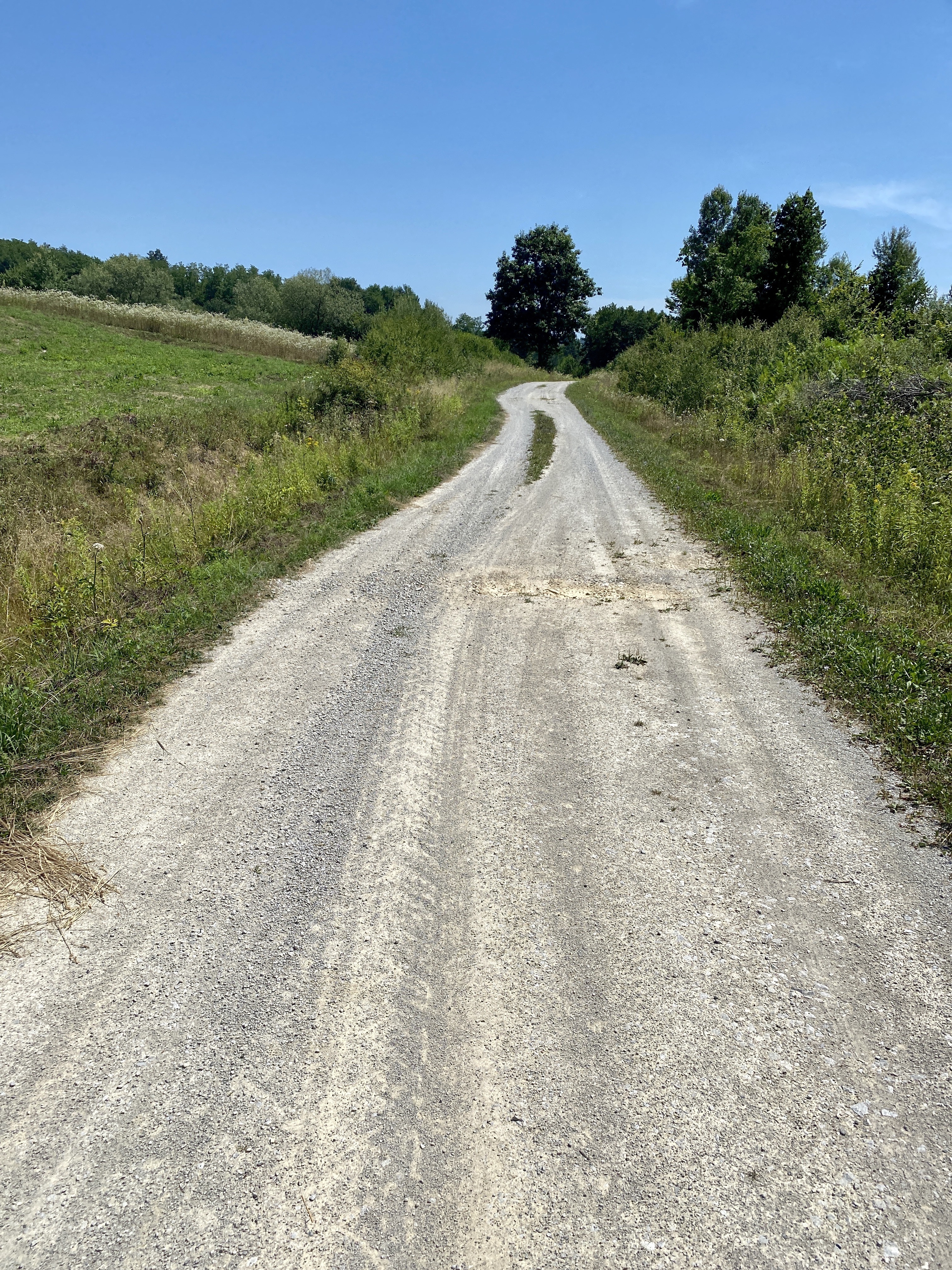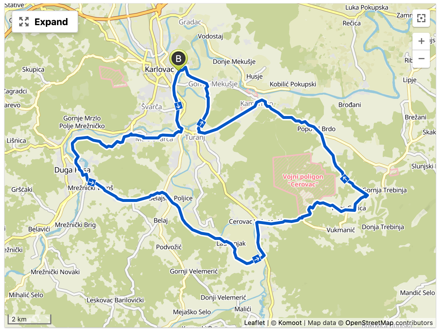 Nastavljamo državnom cestom nekih 1,5 kilometar, nije baš ugodno, ali tako je tek nekih 500 metara, kada sa desne strane počinje nogostup na početku Cerovca Vukmanićkog. U samom mjestu skrećemo desno i uzbrdo, a nakon prvog uspona skrećemo sa ceste na makadam oko ogromnog vojnog kompleksa Cerovac, kojeg zaobilazimo i ulazimo u Knez Goricu, gdje se danas moglo vidjeti mnogo automobila stranih registracija, koji su pokušavali naći izlaz iz prometnog kolapsa od Lučkog do Bosiljeva, zbog najjačeg turističnog vikenda ove koronske godine. U samom mjestu opet ulazimo na makadam i divnu, hladom obgrljenu šumicu, i livade prema Popović Brdu.