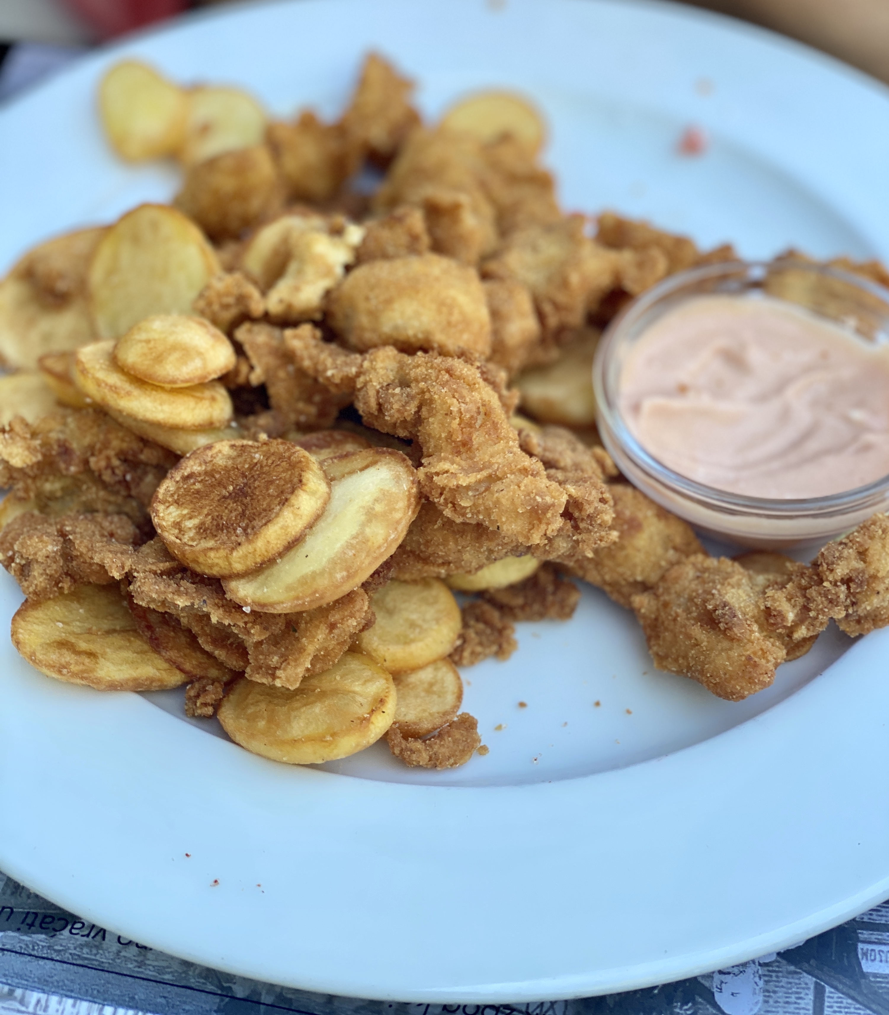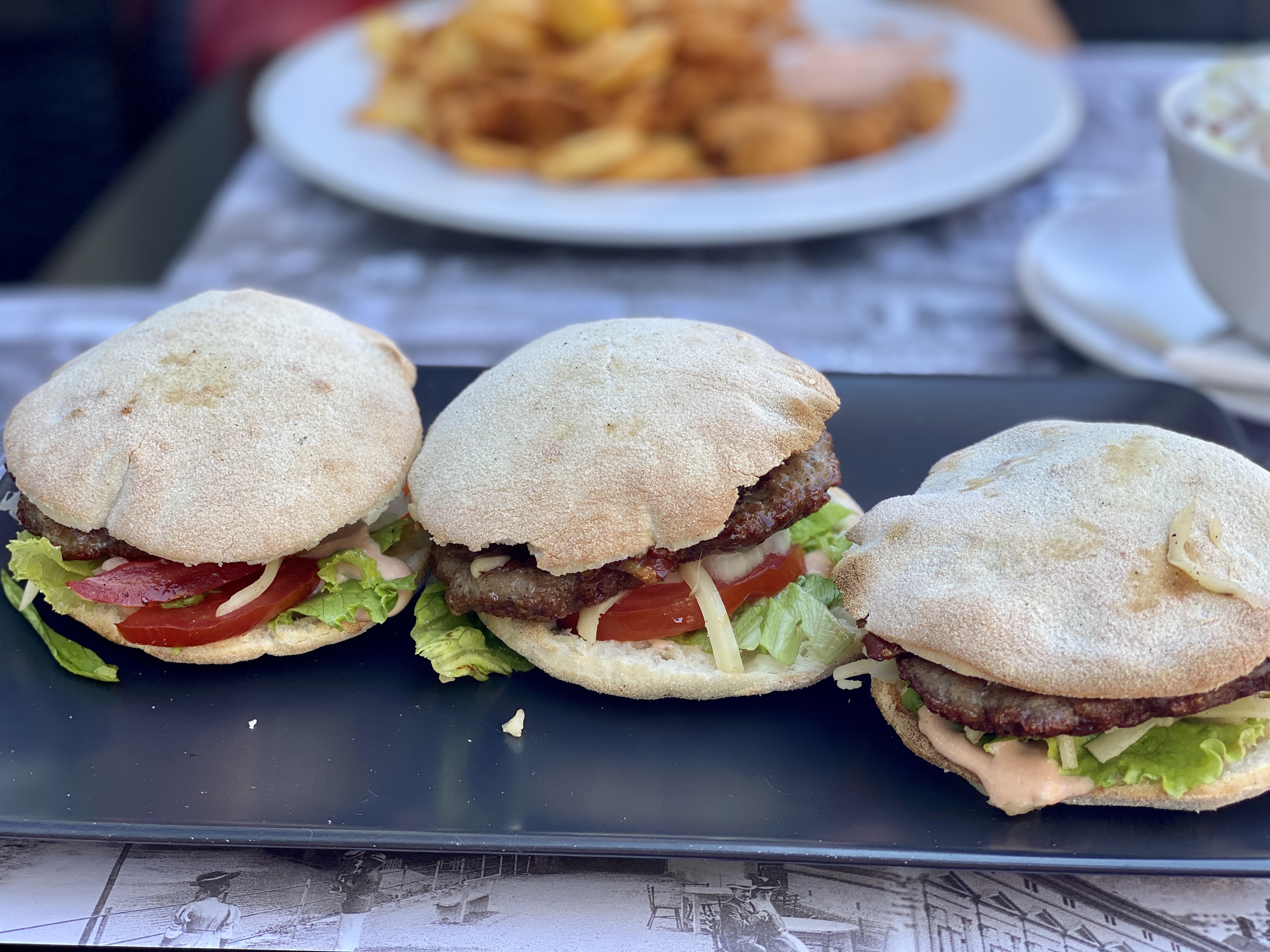 Nakon prelaska avanturističkog drvenog mosta preko Korane, nizvodno od pontonskog mosta za pješake, a ispod opisanog kupališta, prelaskom službeno petog mosta preko treće rijeke, završila je točno 44 kilometra duga ruta, sa malo više od 300 metara uspona, i bilo je vrijeme za pravu okrjepu, u našoj bazi, u restoranu hotela Lana Korana. Sve pohvale kuharicama i svom osoblju, koje su uglavnom žene i znaju što rade. Tatjana je danas odabrala fish&chips, na koranski način, miks pohanih filea riječnih riba i domaći mladi krumpir, a ja sam odabrao malu platu, ručno rađenih (uključujući pecivo) hamburgera. Sve savršeno i za svaku preporuku.