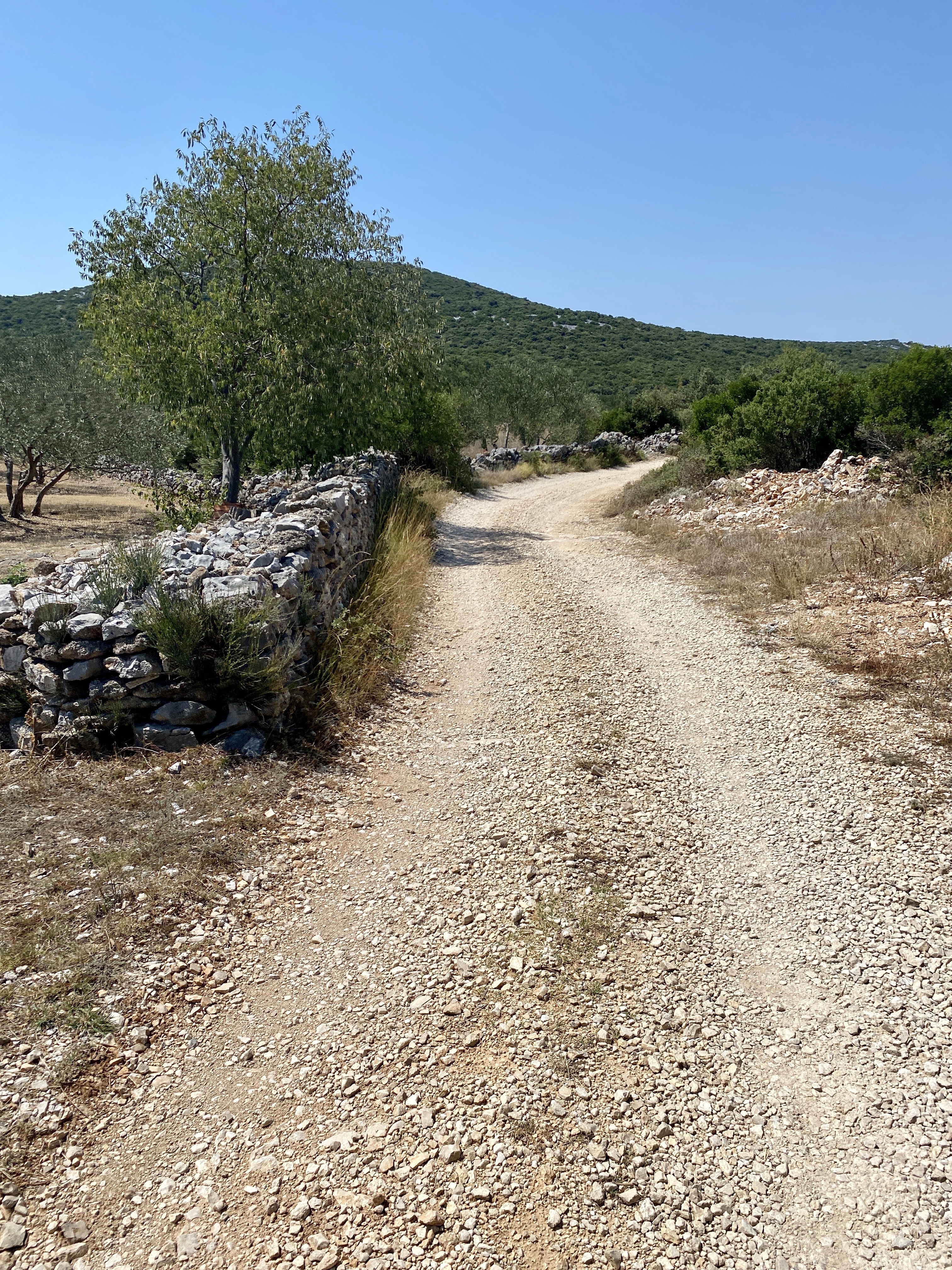 Prelaskom Osječke ulice, uvijek spremna na pružanje avanture, aplikacija Komoot je naravno predvidjela prvi u nizu današnjih off roada, tako da smo završili na jednom dugom pravcu, u smjeru jezera, koje se već naziralo u daljini. Pravac je bio makadam, uzduž kojeg je, nažalost, bilo odbačenog smeća u velikim količinama, da bi nakon nekoliko stotina metara, sa druge strane, bili maslinici. Kontrast brige i nebrige i sraslosti sa prirodom, te nepoštivanje iste. Čudni smo mi ljudi! Nakon 6,5 kilometara od pokreta, stigli smo na asfalt, na cestu koja pored Kampa Vransko jezero – Crkvine i samog jezera vodi prema Vrani. Brz i ugodan pravac, koji je popravio prosjek sporog i opasnog (smeće i slomljeno staklo) makadama. Znao sam da nas većina od 430 metara uspona naše 57 kilometara duge rute, čeka nakon prolaska Vrane, tako da smo odlučili da na 11. kilometru napravimo prvu pauzu, jer ionako nam se nigdje nije žurilo, a Maškovića Han, u obnovljenom izdanju se moralo pogledati i zbog njegove povijesti.