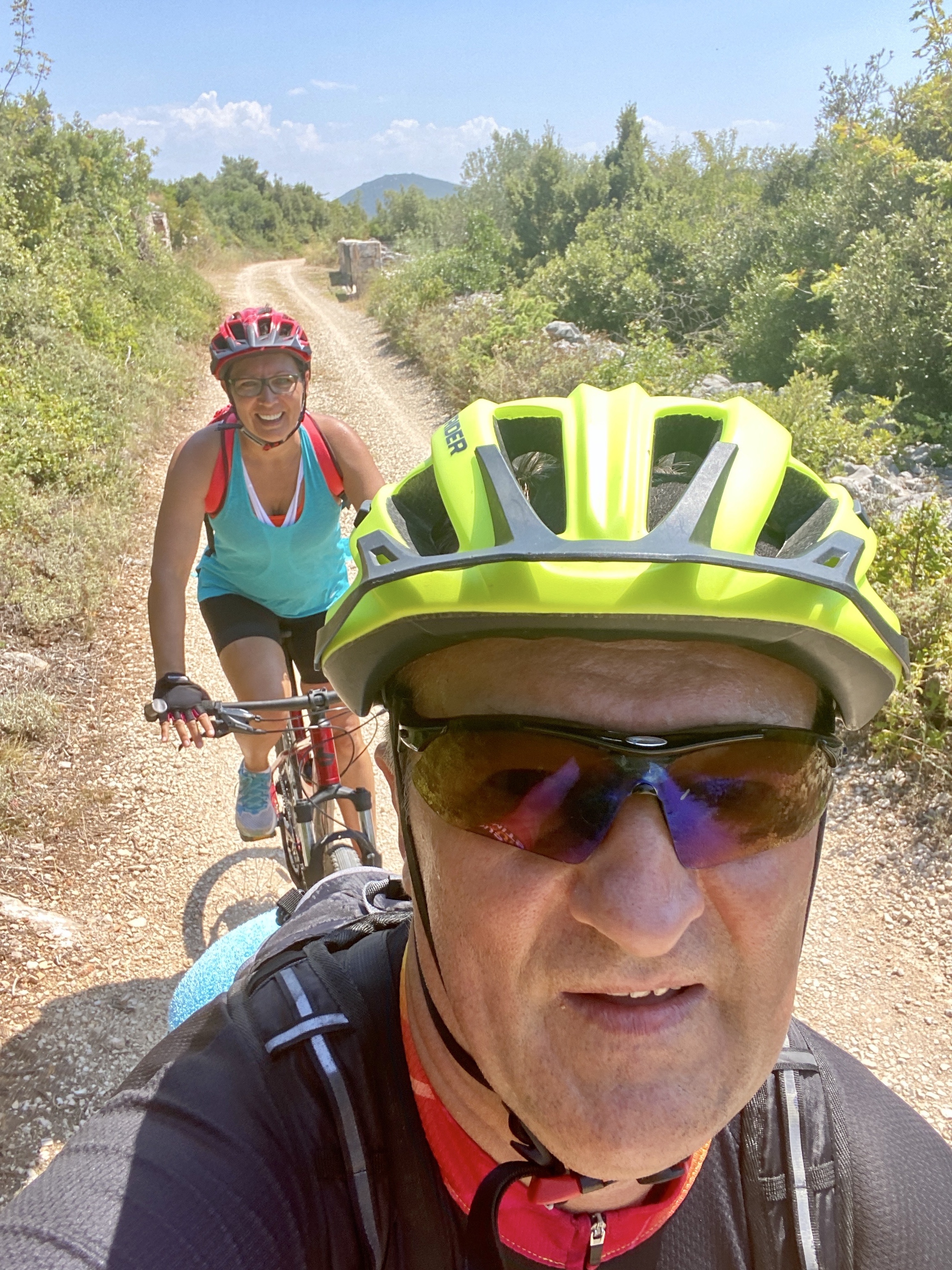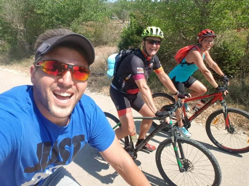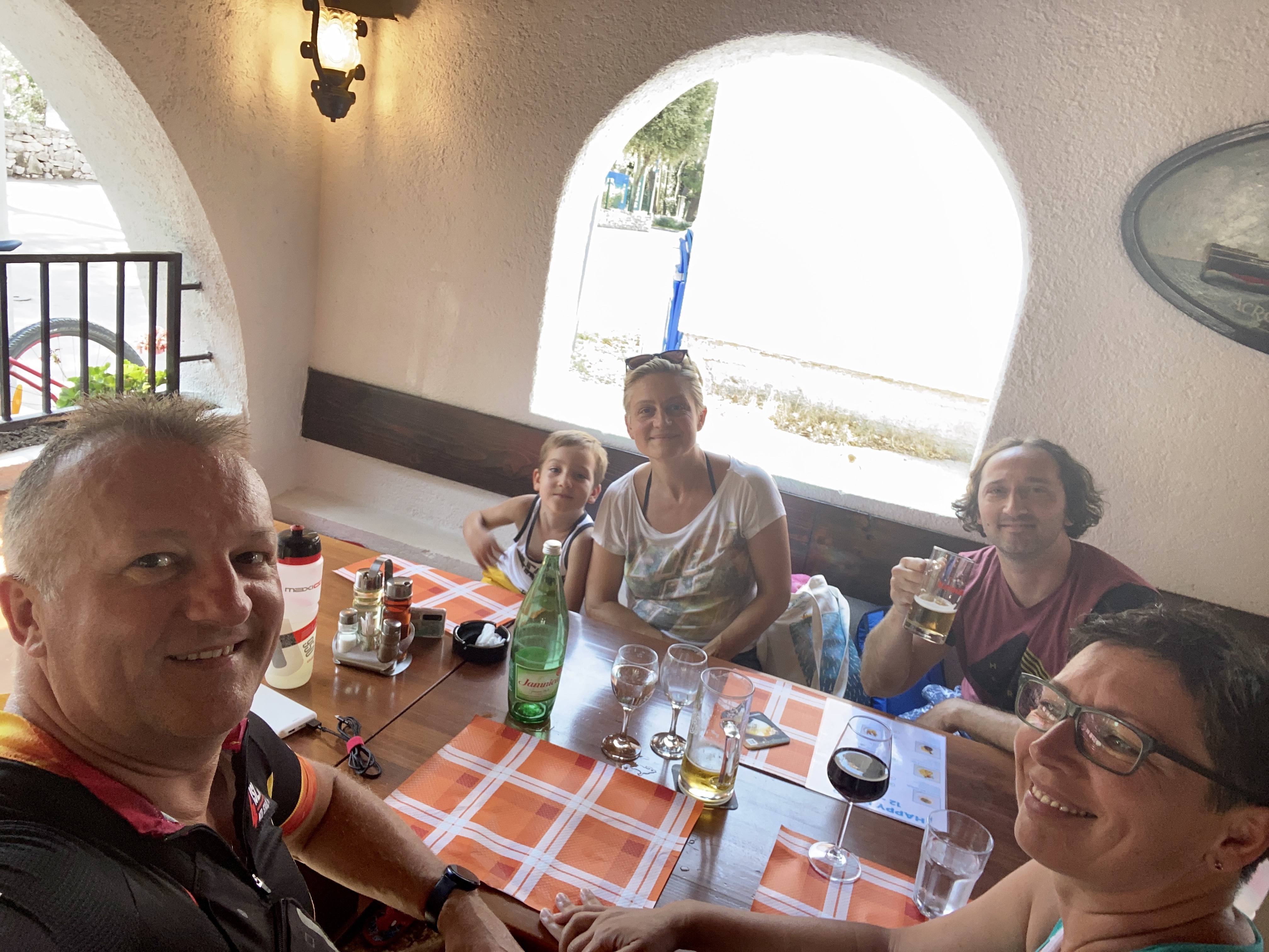 Bilo je stvarno lijepo vidjeti cijelu veselu obitelj troskot na okupu,i okrjepiti se sa hladnim sokom od Coca Cole, na 23. kilometru rute. Također, bilo je korisno savjetovati se sa domaćim čovikom, jer smo odlučili promijeniti dio rute, ići makadamom do Kašića, spustiti se asfaltom na najbroj nizbrdici rute, i onda se približiti jezeru na nekoliko metara, službenom makadamskom stazom, koja vijuga kilometrima prema maloj lučici Prosika, kod koje su more i jezero razdvojeni manje od kilometra. Također, Matija nam je otkrio jednu prekrasnu single track stazicu uz more, kojom smo kilometrima išli iznad plaža od Draga do Pakoštana.