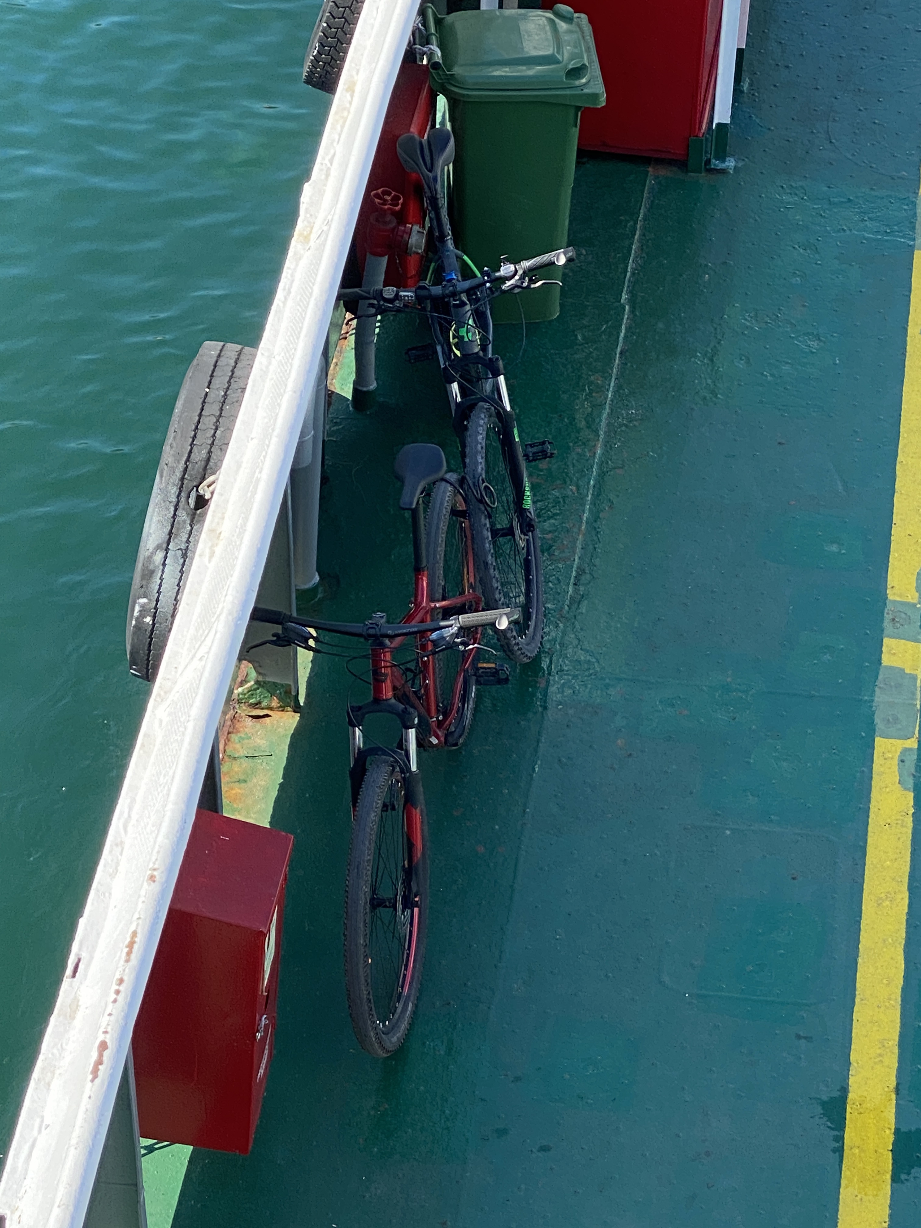S obzirom na naš smještaj u Sutomišćici, na otoku Ugljanu, nije bila opcija da ponavljamo prelazak biciklima sa otoka na otok preko Ždrelca, i činimo nepotrebnih za ovu priliku, dodatnih tridesetak kilometara, kako bismo se dokopali trajekta koji prometuje na ruti Tkon – Biograd n/m. Karte sam kupio dostupnom online aplikacijom Jadrolinije, koja uključuje plaćanje karte za putnika i vozilo pod imenom “bicikla”, naime tako piše u hrvatskoj verziji iste. Uglavnom, odabrao sam to prijevozno sredstvo i nakon planiranog bureka u obližnjoj pekarnici i kavice, bili smo na meni neobično malom trajektu sa polaskom u 9:30. Vožnja ovih tri kilometra vodenog puta traje svega nešto više od desetak minuta, tako da smo već prije 10:00 bili spremni krenuti u našu 8 sati dugu avanturu (sa svim planiranim i ne, stajanjima).