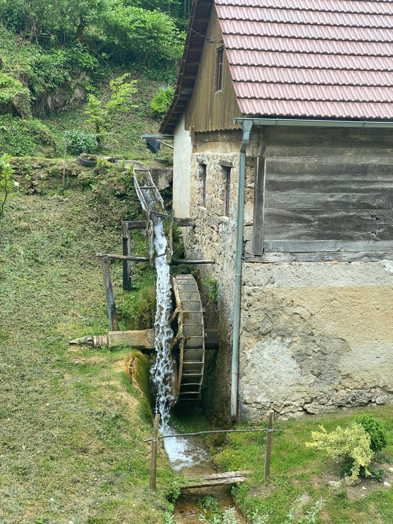 Od prva dva mlina ostale su samo ruševine. Draganov mlin jedini je još u funkciji. Ima drveni nadlijevni vodenički kotač koji pokreće dva mlinska kamena – za pšenicu i kukuruz. Gospođa Nada Mauzer, vlasnica mlina i jedina stanovnica Slapnice, puna je zanimljivih priča o povijesti mlina. I danas je bila tamo na usluzi.