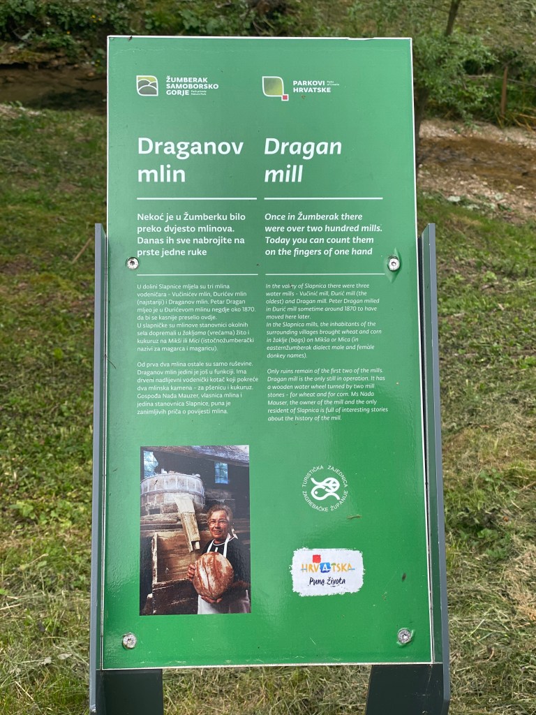 Nekoć je u Žumberku bilo preko dvjesto mlinova. Danas ih sve nabrojite na prste jedne ruke. U dolini Slapnice mljela su tri mlina vodeničara – Vučinićev mlin, Đurićev mlin (najstariji) i Draganov mlin. Petar Dragan mljeo je u Đurićevom mlinu negdje oko 1870. da bi se kasnije preselio ovdje. U slapničke su mlinove stanovnici okolnih sela dopremali u žakljama (vrećama) žito i kukuruz na Mikši ili Mici (istočnožumberački nazivi za magarca i magaricu).