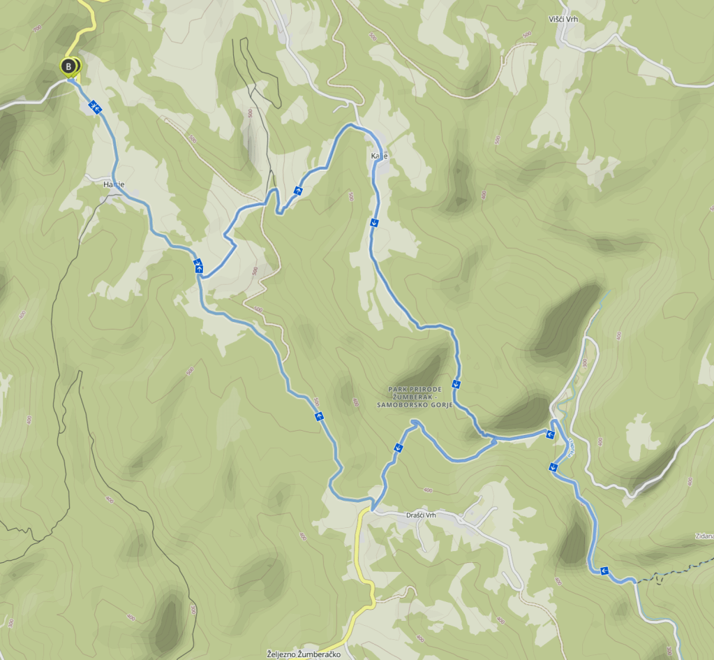No krenimo redom. Ruta koju sam danas zamislio kretala je iz Hartja, onda relativno teže prolaznom stazom do ceste koja sa zapada penje u selo Kalje, iz kojeg vodi atraktivna, djelom šumska, djelom makadamska cesta pored Draganovog mlina do samog Slapa Brisalo. Na putu nazad, ručali smo iznad mlina, a onda drugom rutom, pored Drašći vrha, cestom natrag do Hartja. Sve u svemu 15 kilometara sa 500 metara visinske razlike. Lijep izlet za sunčanu i ne prevruću nedjelju. A sada malo o glavnim glumcima danas.
