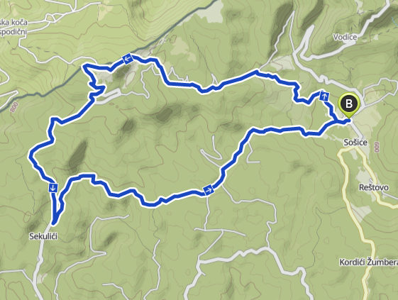 Sošice, pl. staza prema Sv. Geri sa istočne strane, Sv. Gera, dolje kombinirano cestom do Sekulića, a zatim prilično vegetacijom obraslom pl. stazom pored Rajakovića i sa zapada do Sošica. Nešto manje od 20 km sa 750 m uspona/silaska.