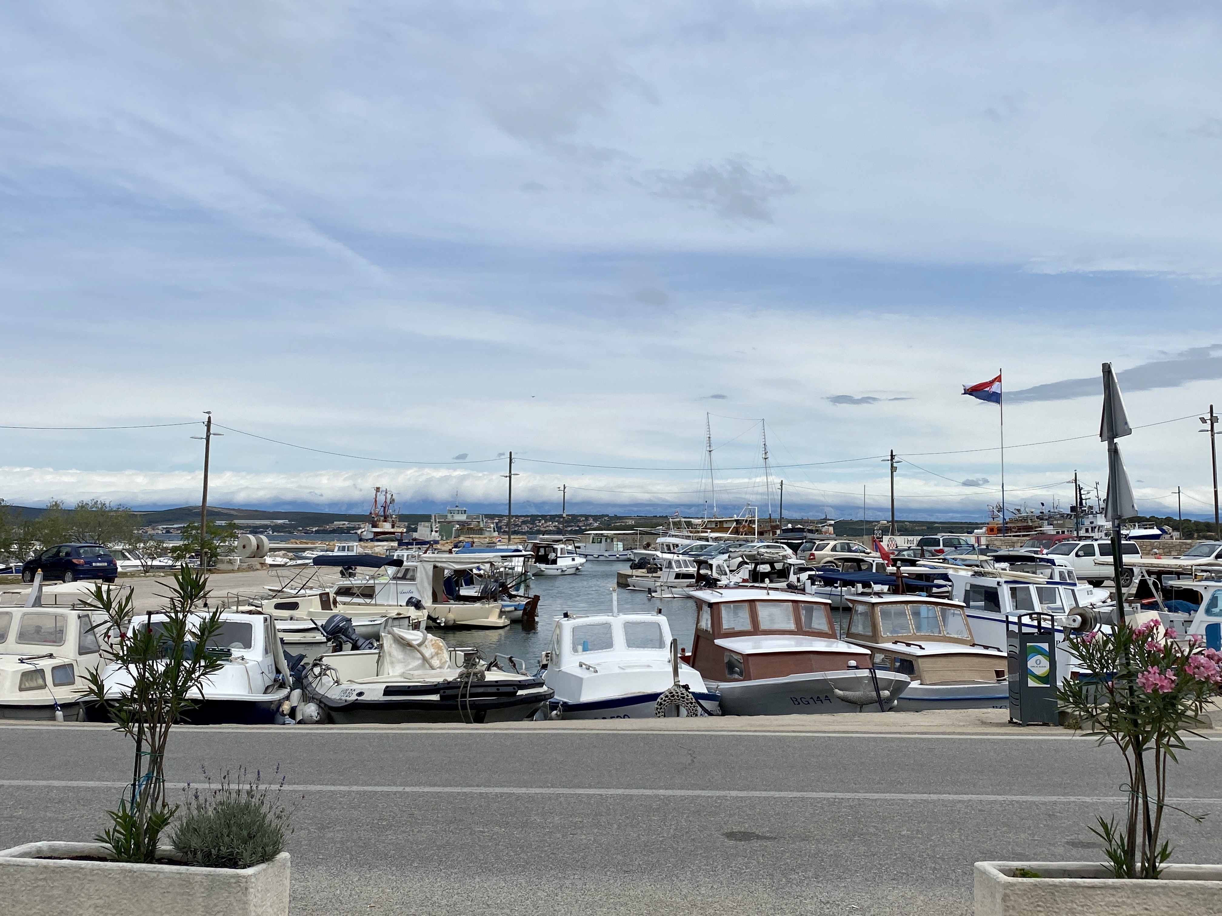 S obzirom na današnje relativno hladnije vrijeme i dosta vjetra, odlučili smo da nećemo uopće do plaže, jer je bilo prehladno. Planirali smo ručati u jednom malom lokalnom baru, no jedno je reklama i fotografije na Internetu, a drugo je stvarnost, tako da smo odustali od te ideje. S obzirom da je bilo prerano ra ručak, a nova ciljana konoba još nije radila, sjeli smo na dobro poznatu rivu na kavu. Naime, prije nekoliko godina, na samim počecima našeg bavljenja trčanjem, ovdje smo nastupili na kultnom Škrapingu, utrci Treking lige Hrvatske, kojom se gotovo tradicionalno otvara sezona početkom ožujka. Nažalost, iz predobro poznatih razloga, ista nije održana ovog proljeća.