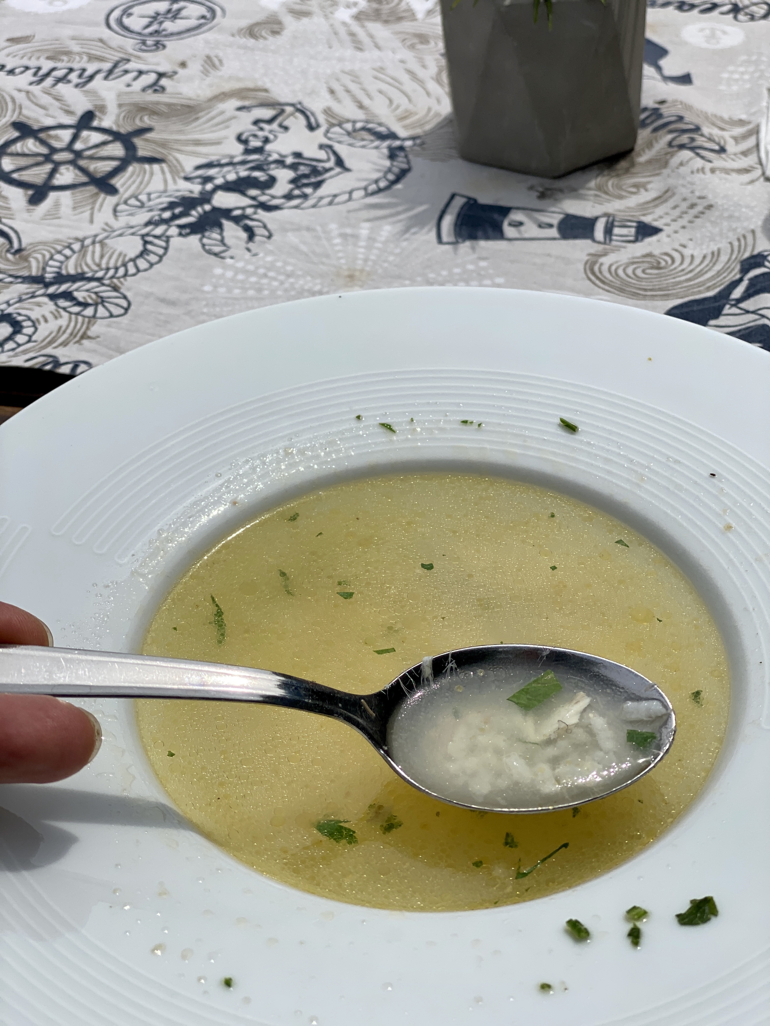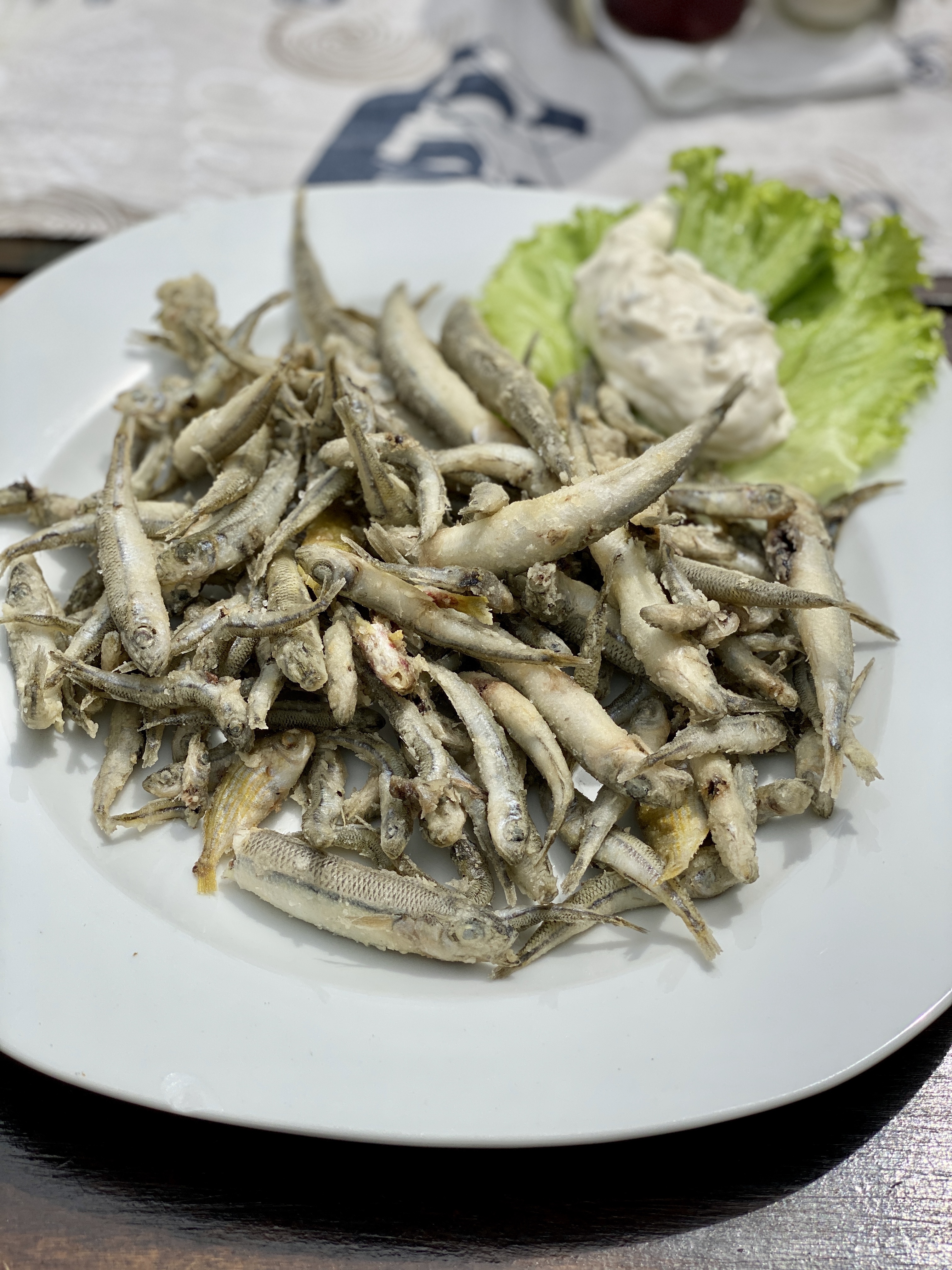 Nakon još jedne kave, koje na ovako zahtjevnim rutama, kao niti soka od Coca Cole, nikada nije dosta, odgurali smo ovoga puta naše bicikle stotinjak metara uzbrdo od centra, uskom uličicom, do Konobe Leut, gdje smo bili prvi gosti dana, no svejedno je sve što smo naručili bilo vrlo korektno. Ostajemo i dalje isključivo na ribljim menijima, tako da smo uzeli odličnu riblju juhu i jednostavne girice, sa lokalnim Babićem. Sasvim dostatno i pametno, s obzirom da nas je čekalo još nekih 32-33 kilometra, nakon već prevaljenih 35, sa svim silascima sa glavne ceste i kruženja.