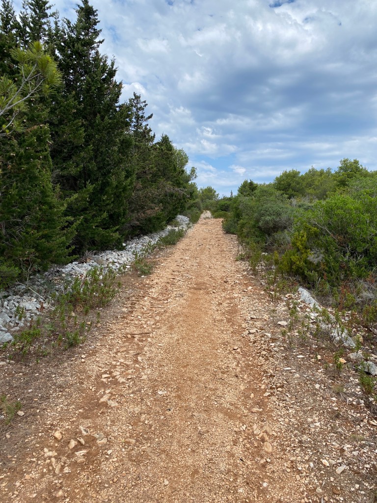 Nakon prolaska pored ovog iznimnog lokaliteta, ušli smo među…pogađate, uske kale, sa stablima maslina i smokava sa obje strane. Slijedio je lagani uspon prema maloj crvici Svih svetih, ispred koje se morate pomoliti kada ugledate makadam koji tu počinje i vodi uzbrdo do vidikovca Stražica, do kojeg smo se naravno popeli.