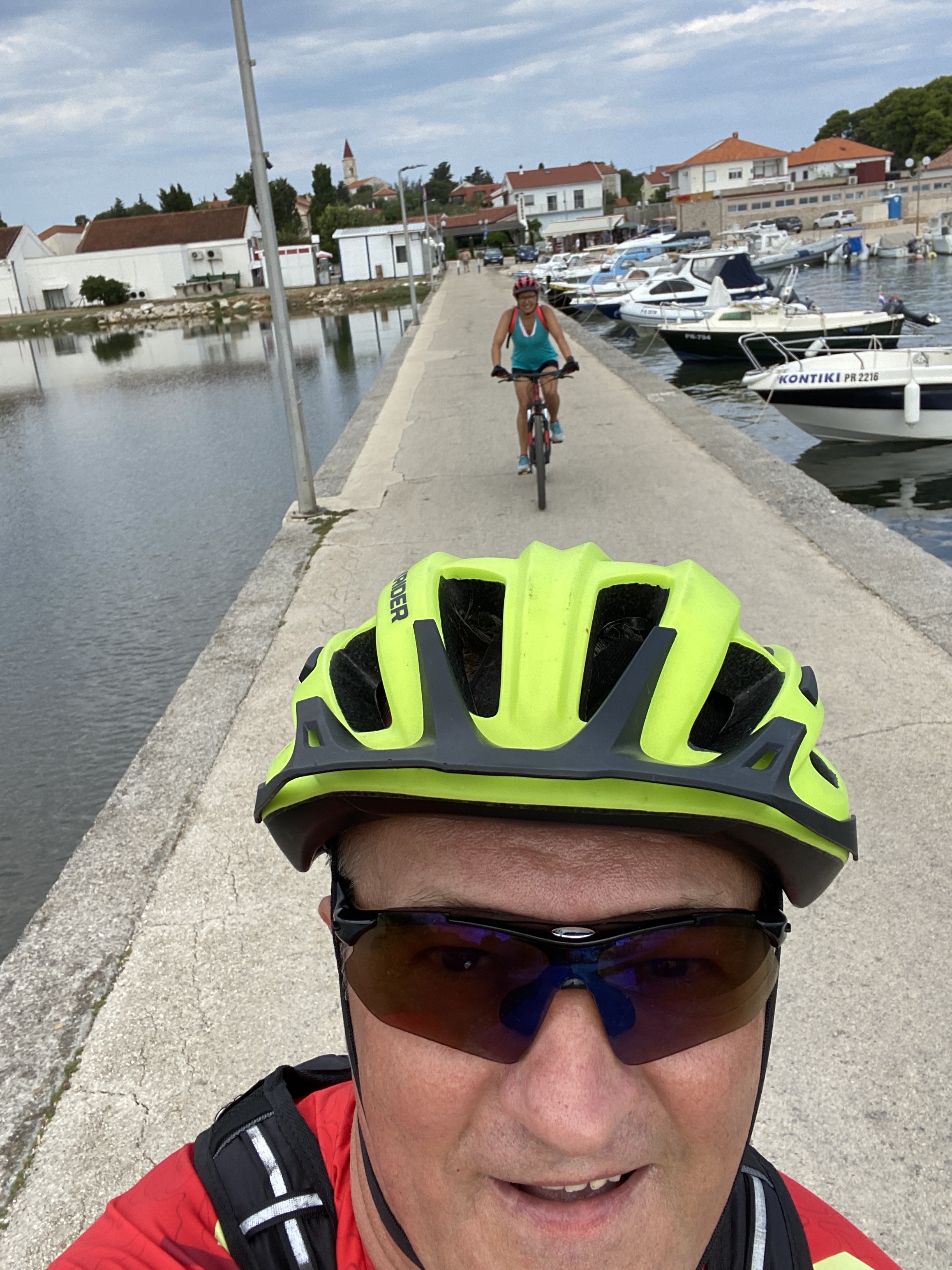 Prolaskom uskim uličicama, negdje na razini “trećeg reda od mora”, ponovno sa izazovnim smokvama sa obje strane, djelomično i makadamom, koji ne predstavlja problem za naše touring bicikle, koji nam stvarno upotpunjuju ovaj odmor, stigli smo uskom, u osnovi pješačkom, šljunčanom stazom, do cestovnog ulaza u novu, izgledom vrlo ekskluzivnu i bogato opremljenu Olive Island Marinu u Sutomišćici. No, to nije naš sport… Pored još nezavršenog šetališta, uputili smo se već uhodanim uličicama pored groblja i Crkve Sv. Eufemije i stigli u našu bazu.